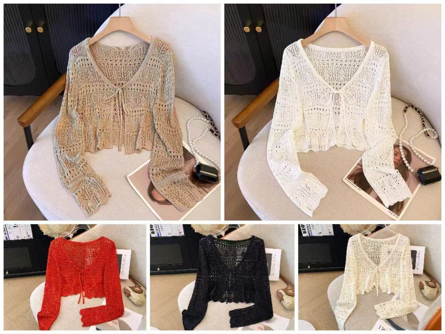 KANING 여성용 중공 레이스 업 자외선 차단 니트 카디건 2025 여름 새로운 얇은 기질 v 넥 에어컨 블라우스스토어 가기