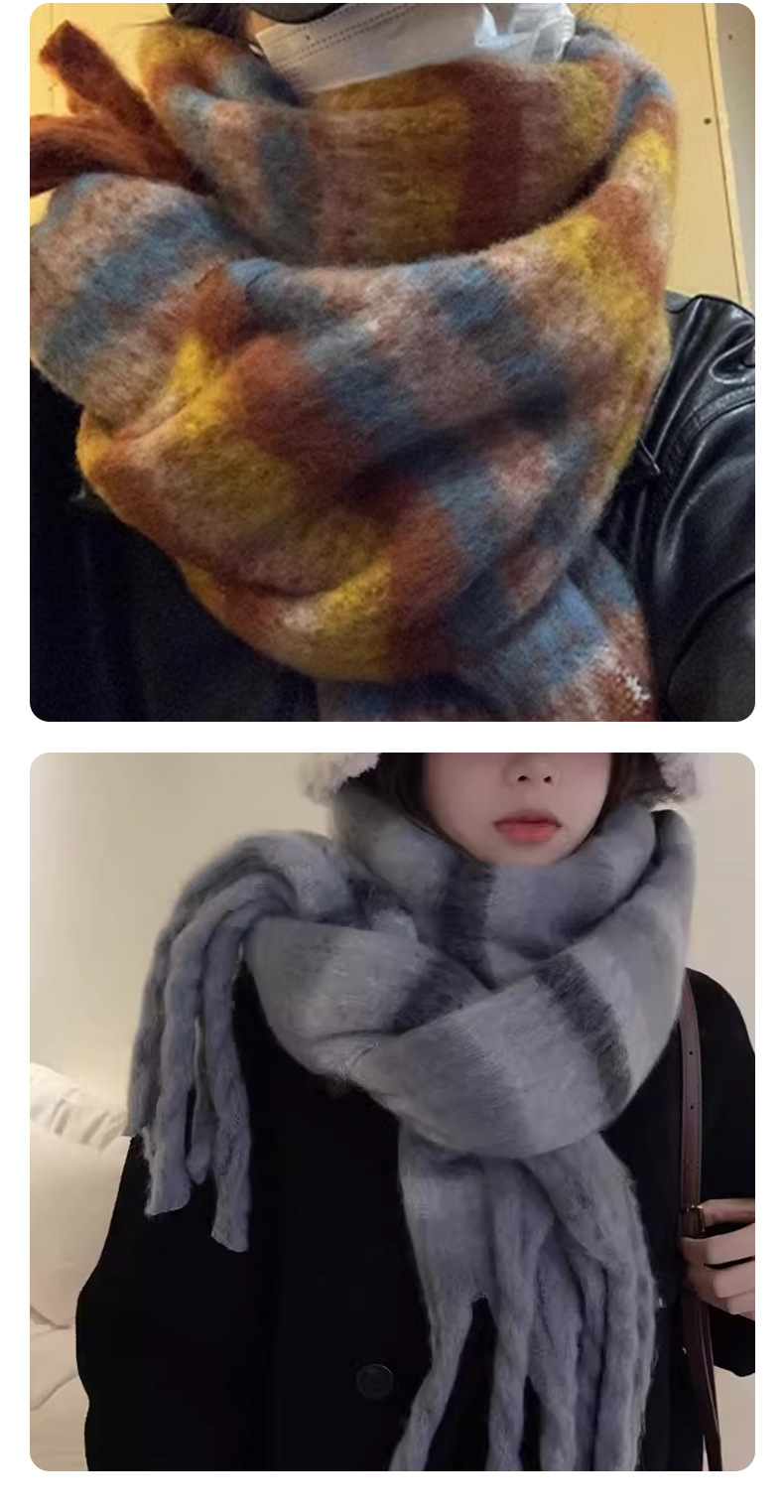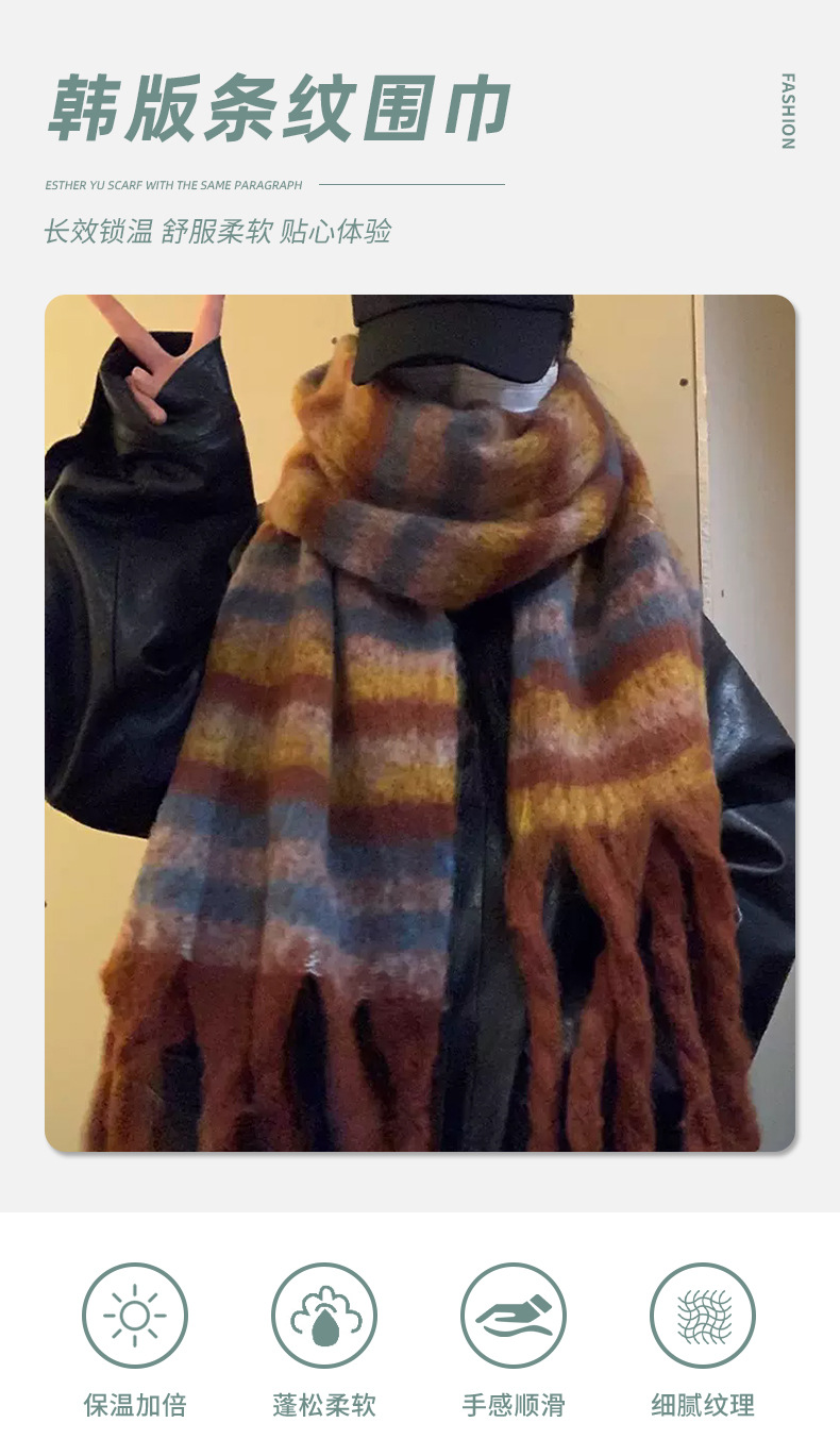 겨울 여성을위한 한국 스타일 스트라이프 스카프 새로운 스타일 하이 엔드 기모 컬러 따뜻한 스카프 커플 목도리 이중 목적 도매스토어 가기