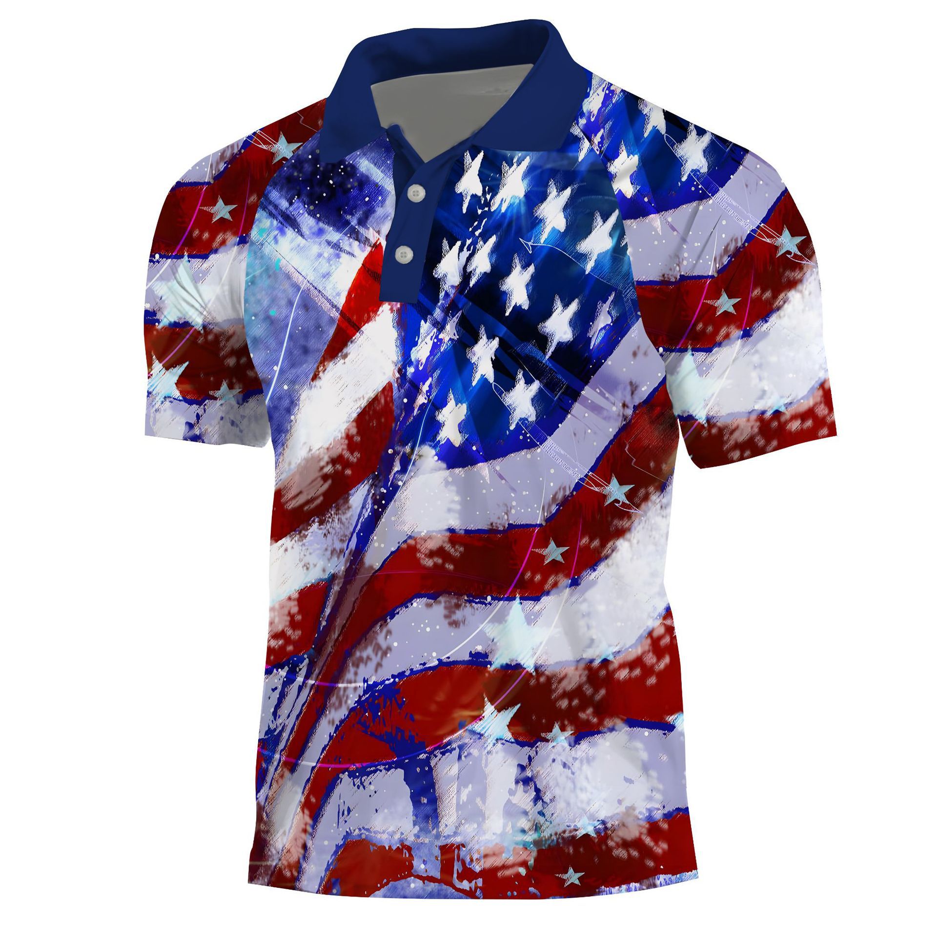 새로운 여름 유럽과 미국 남성 폴로 셔츠 골프 셔츠 3D 인쇄 지퍼 옷깃 반팔 인쇄 복고풍 폴로