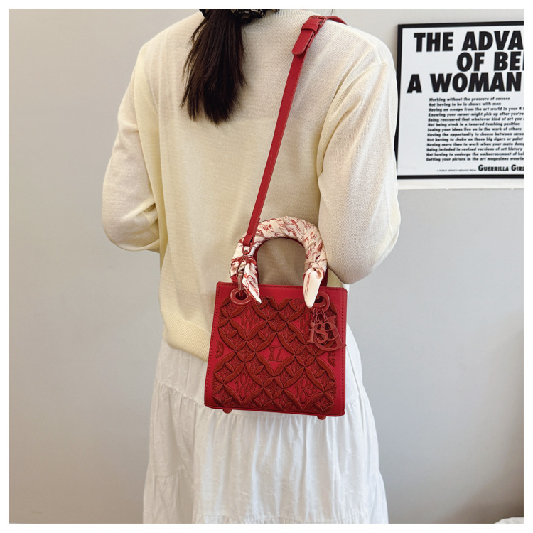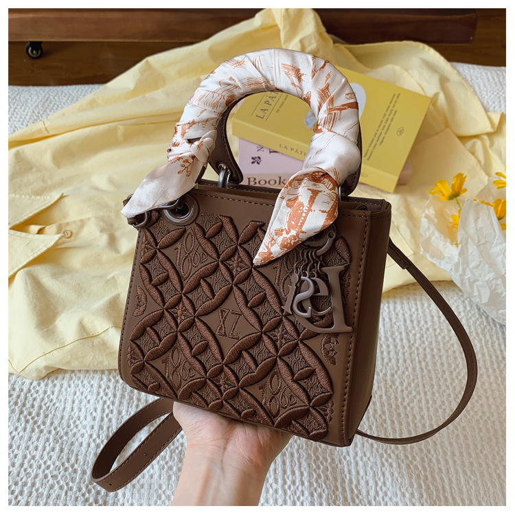유행 간단한 거리 패션 Daffy 가방 2025 새로운 하이 엔드 센스 무거운 자수 실크 스카프 단일 어깨 크로스 바디 여성용 가방