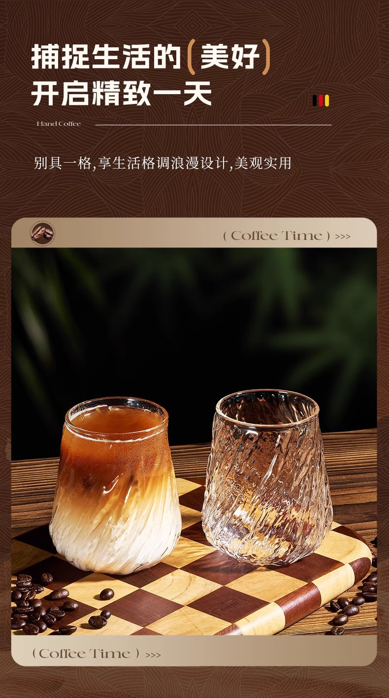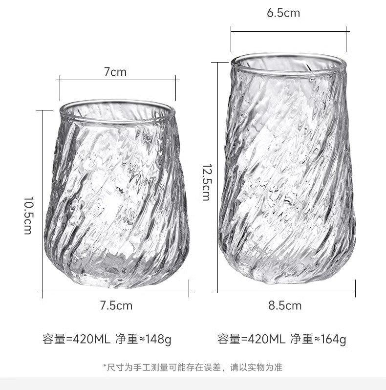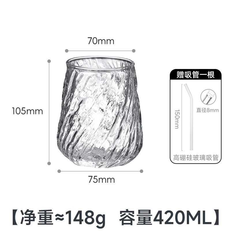 새로운 고급스러운 세로 줄무늬 유리 커피잔 가정용 대용량 나선형 물컵 아이스 아메리카노 라떼 유리컵스토어 가기