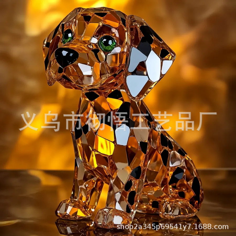 국경을 넘나드는 매력적인 크리스탈에서 영감을 받은 개 조각상 동물 아크릴 스탠드