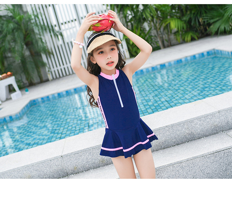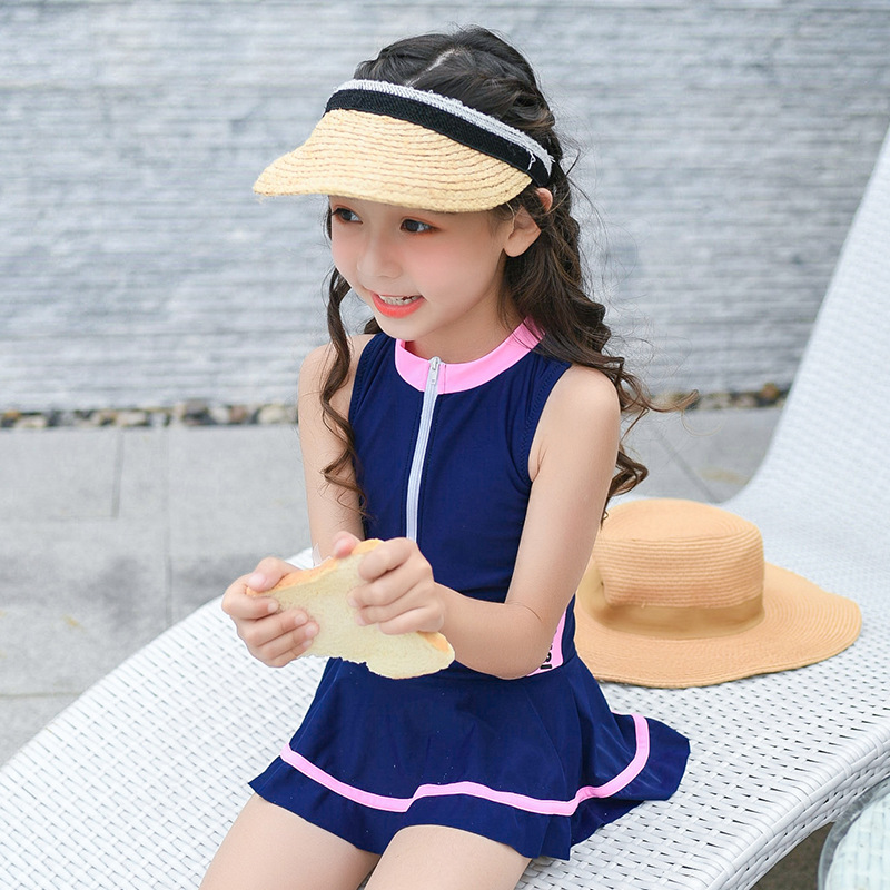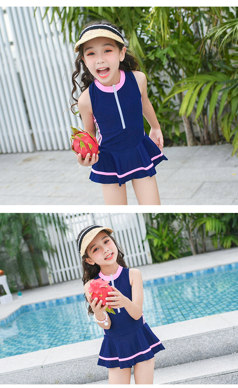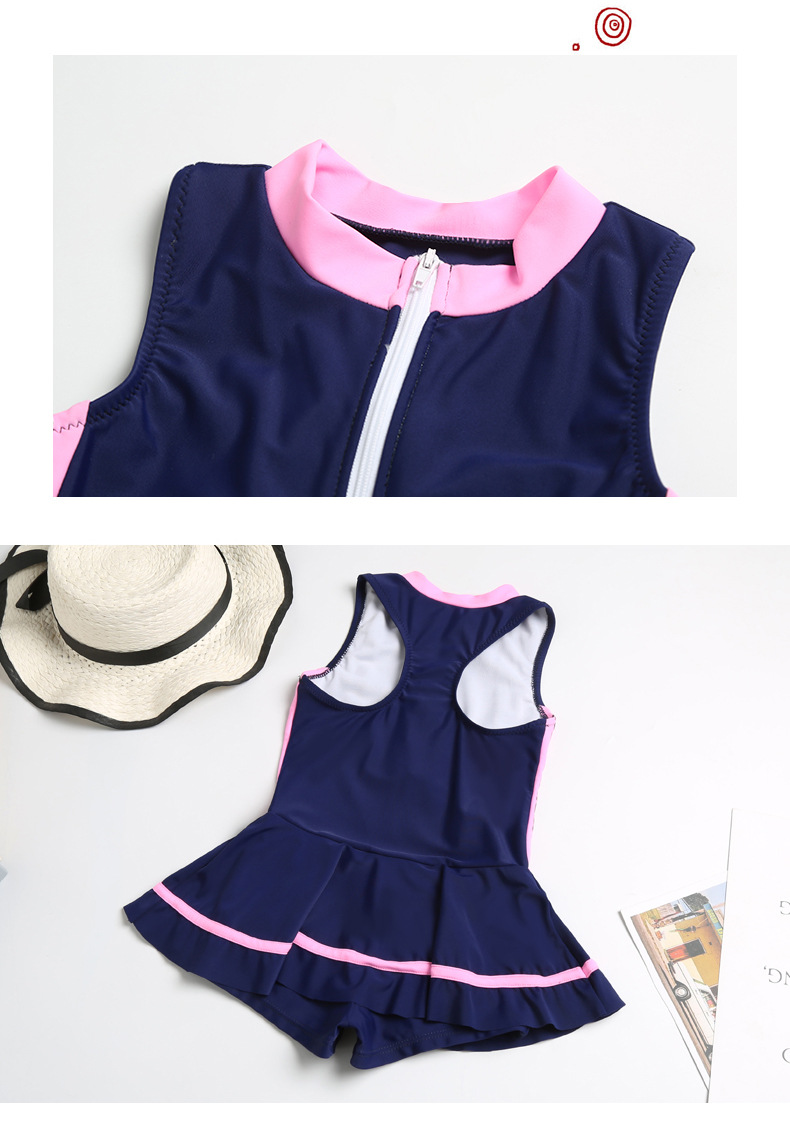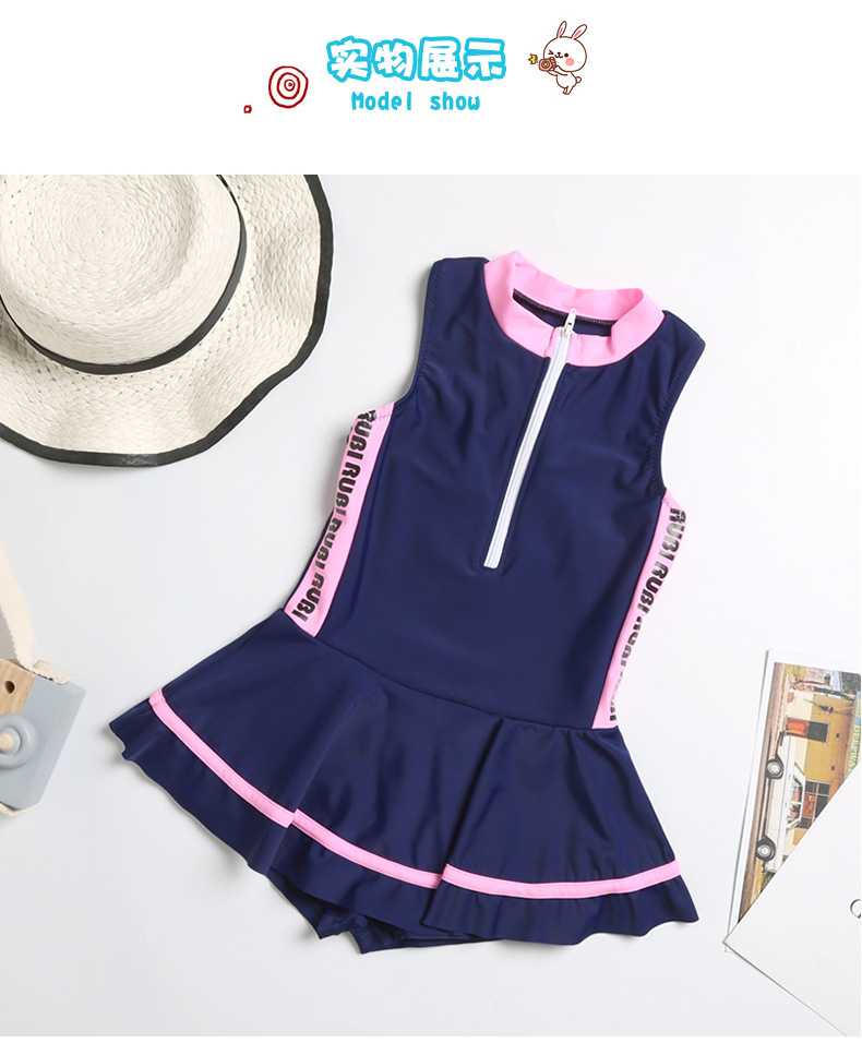 어린이 수영복 귀여운 소녀 스포츠 및 레저 지퍼 스커트 스타일 대형, 중형 및 소형 어린이 원피스 어린이 수영복 공장 직접 판매