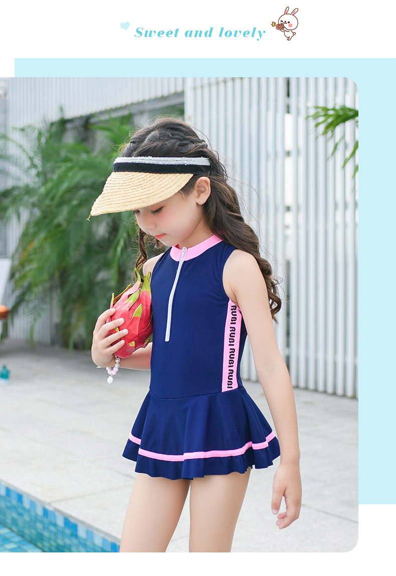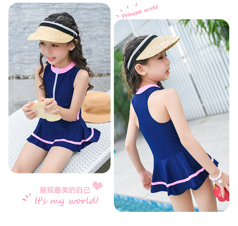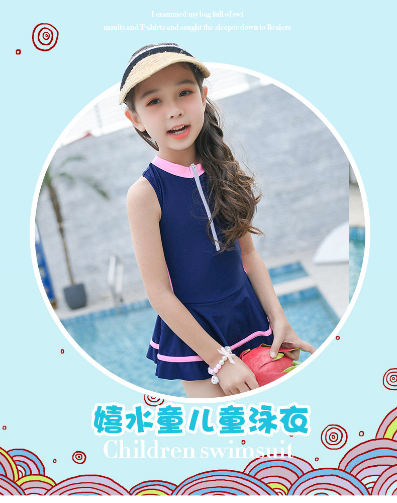 어린이 수영복 귀여운 소녀 스포츠 및 레저 지퍼 스커트 스타일 대형, 중형 및 소형 어린이 원피스 어린이 수영복 공장 직접 판매스토어 가기