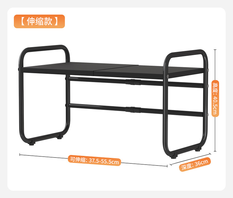 • 블랙 [업그레이드 된 두꺼운 원형 튜브 매우 안정적] 텔레스코픽 모델 38-60cm + 젓가락통 + 칼 홀더 + 도마 홀더 + 후크