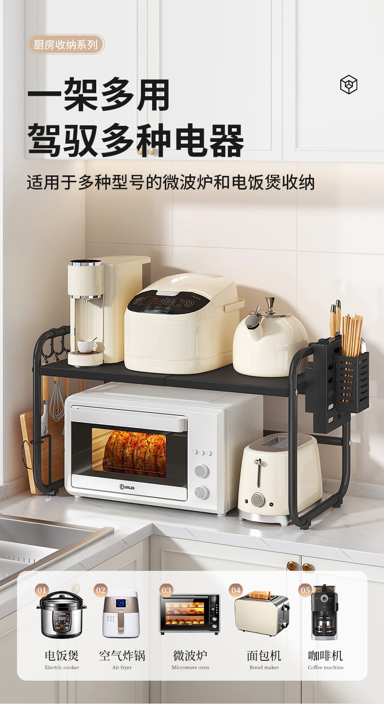 개폐식 주방 보관함 전자 레인지 선반 가정용 단일 및 이중 레이어 조리대 밥솥 홀더 보관함스토어 가기