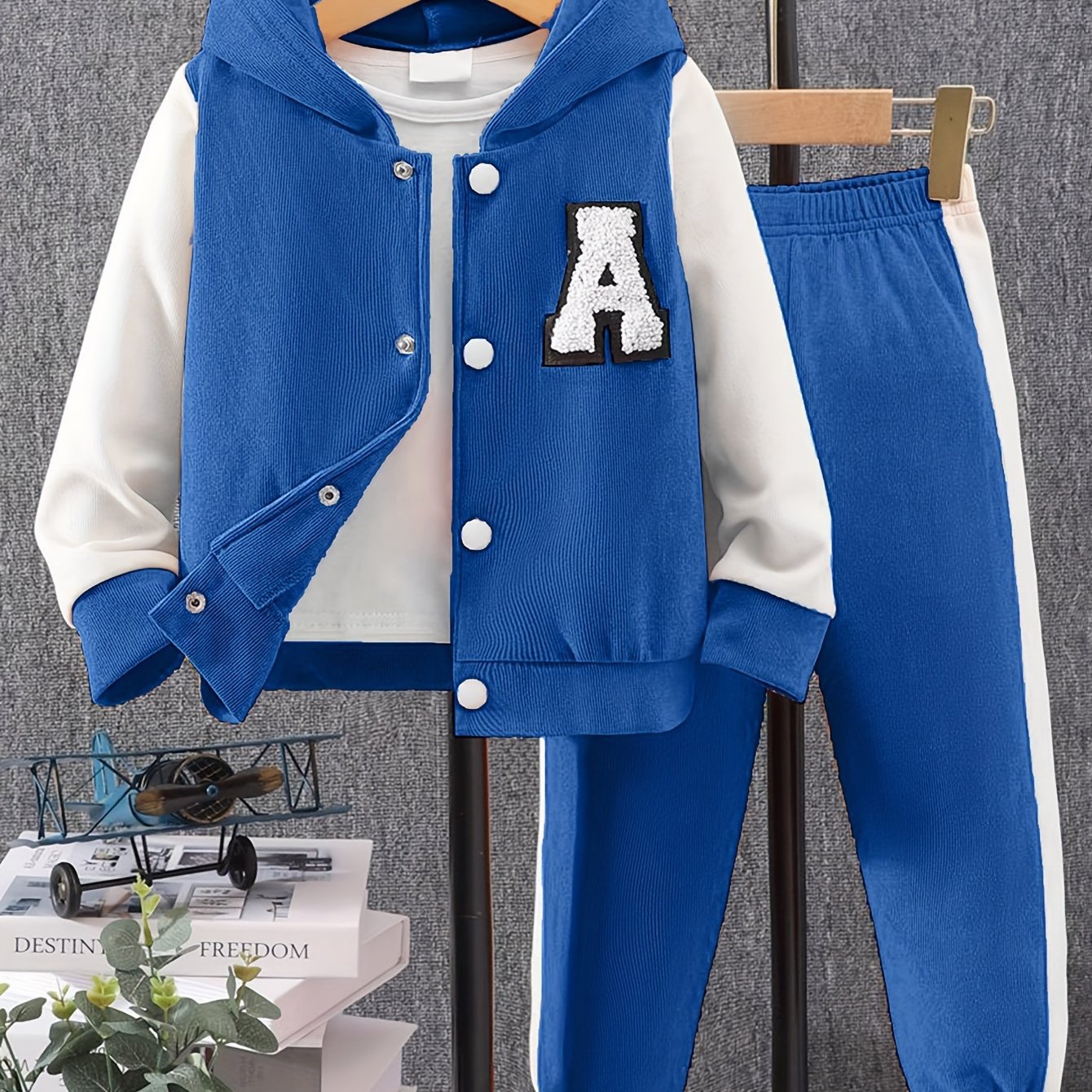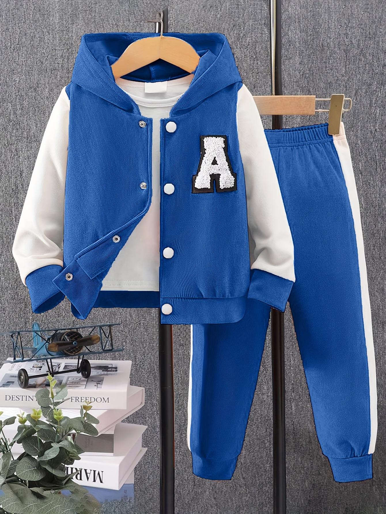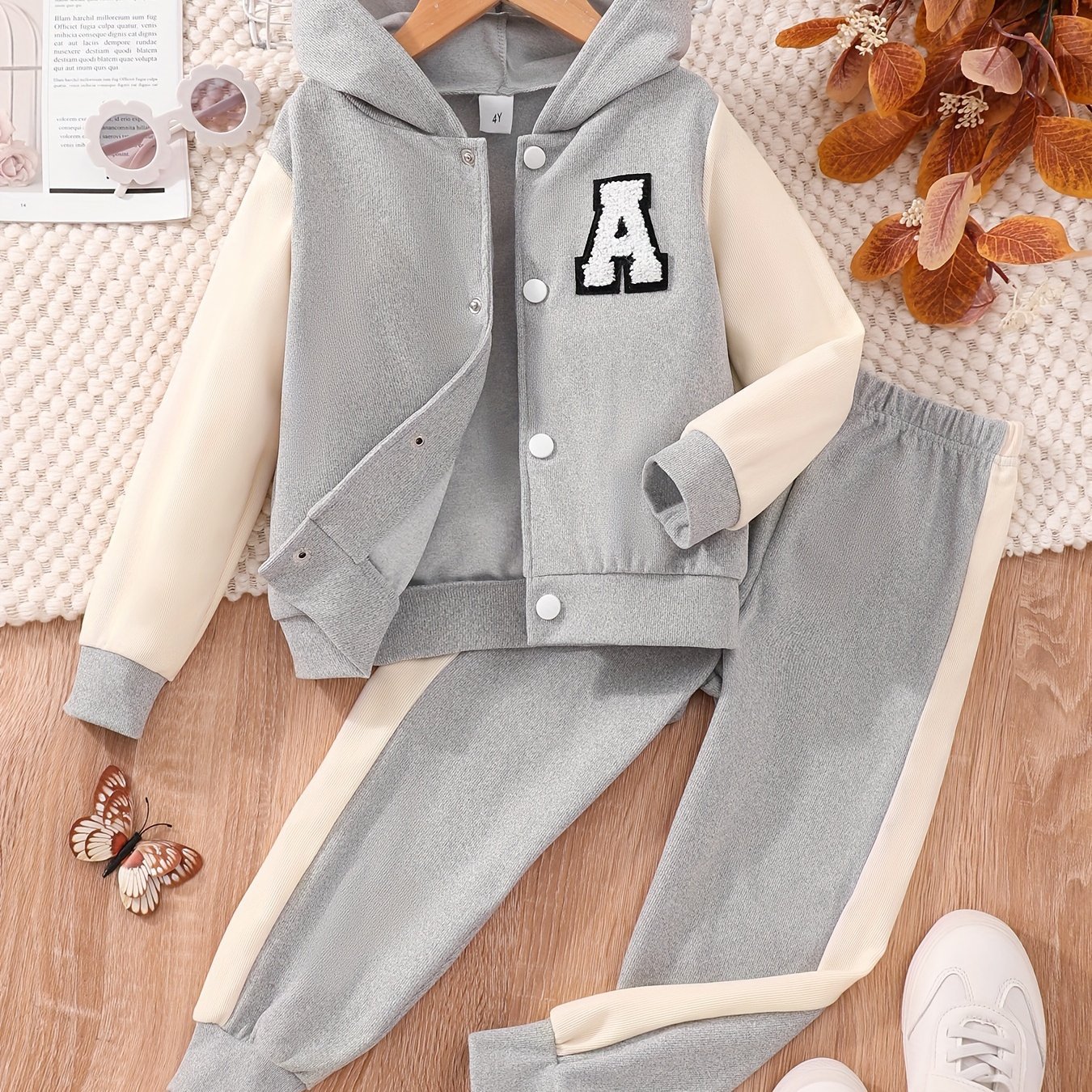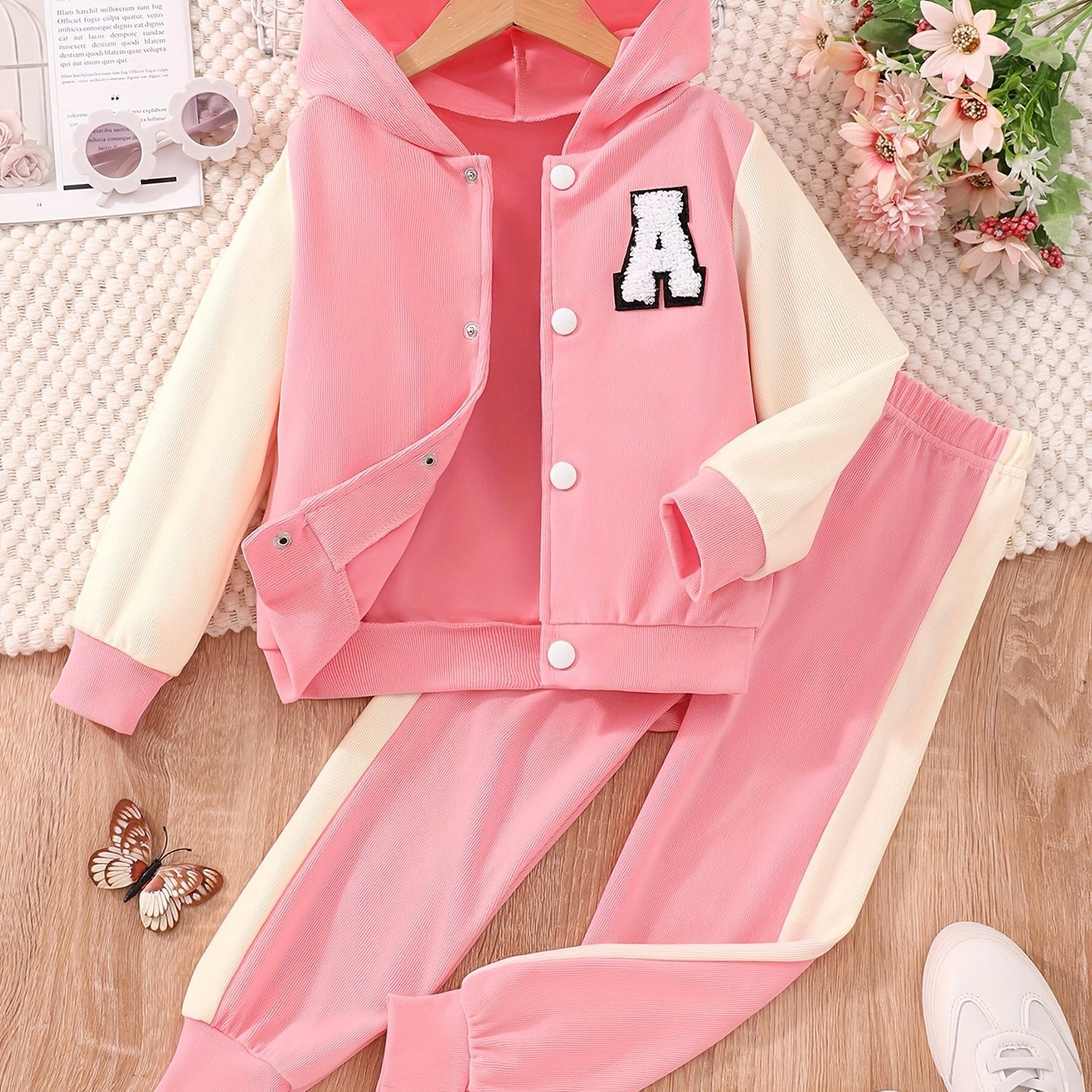 여아 2피스 캐주얼 트랙수트 아늑한 긴 소매 컬러 블록 A