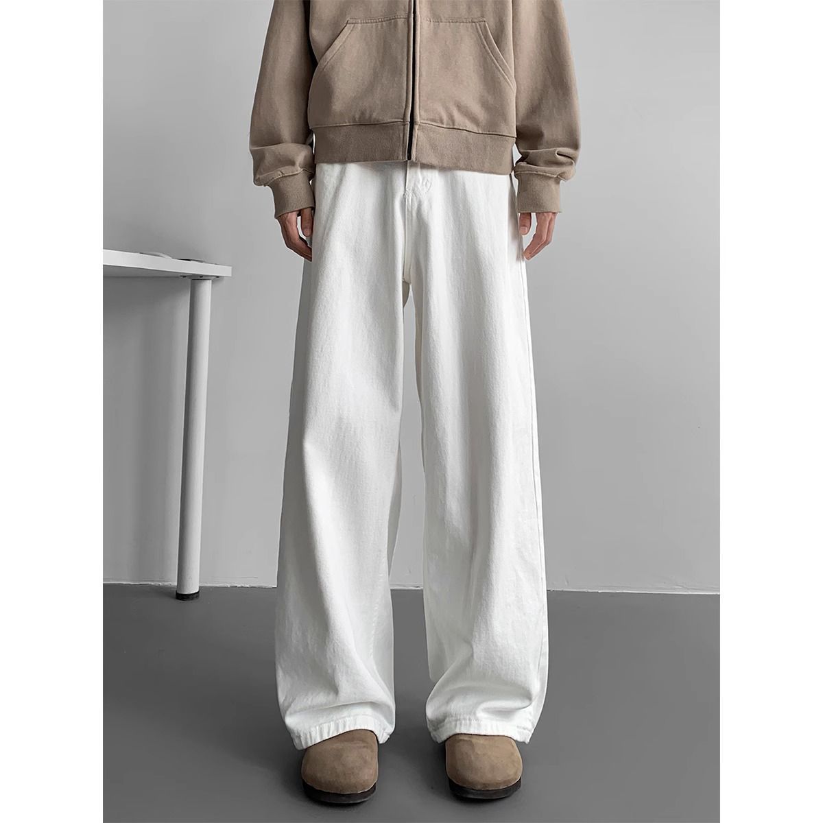 아메리칸 헤비급 청바지 남성 가을 화이트 트렌디 브랜드 와이드 팬츠 복고풍 청소년 스포츠 스트레이트 팬츠