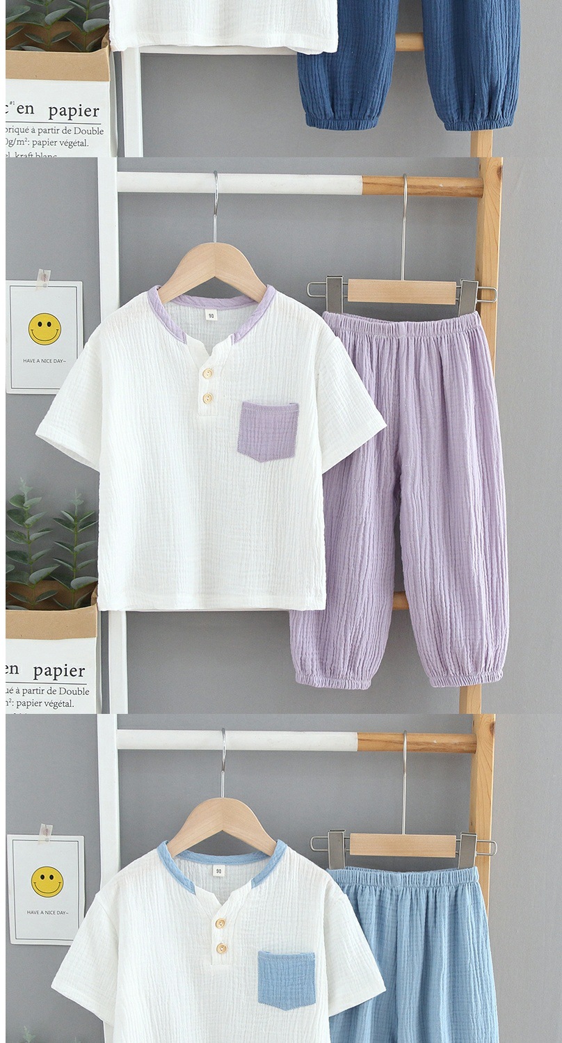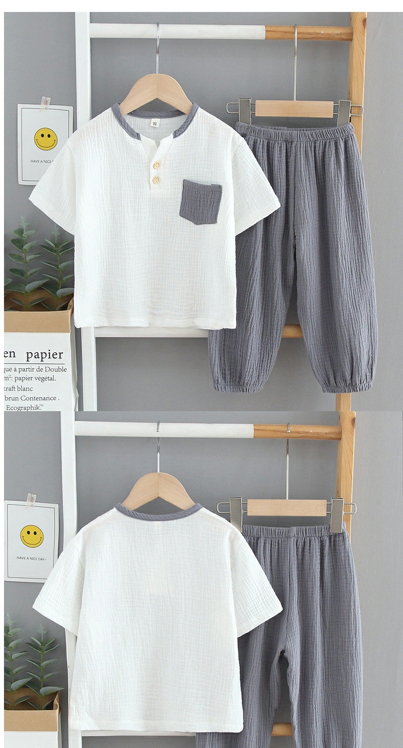 어린이 아기 소년과 소녀 면 얇은 반팔 바지 면 린넨 파자마 면 원사 거즈 홈 의류 세트 여름스토어 가기