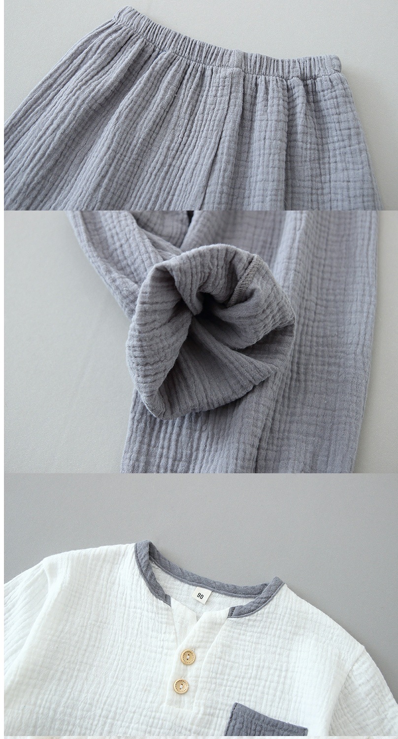 어린이 아기 소년과 소녀 면 얇은 반팔 바지 면 린넨 파자마 면 원사 거즈 홈 의류 세트 여름