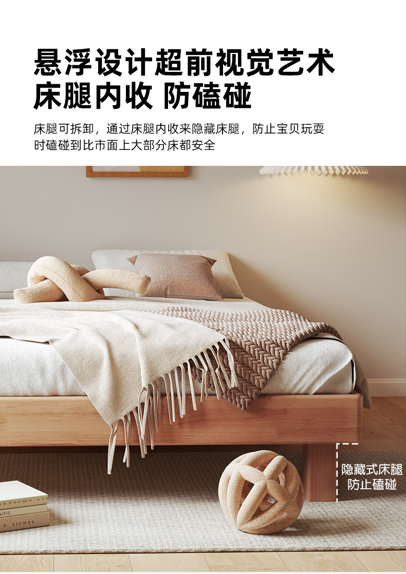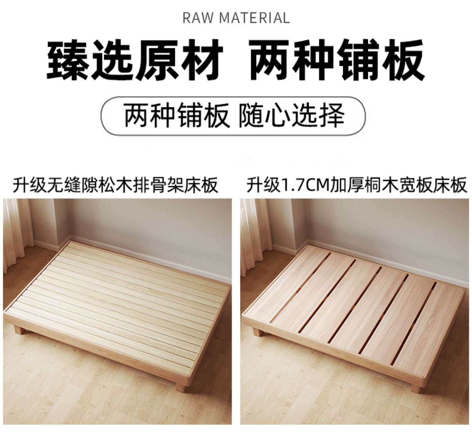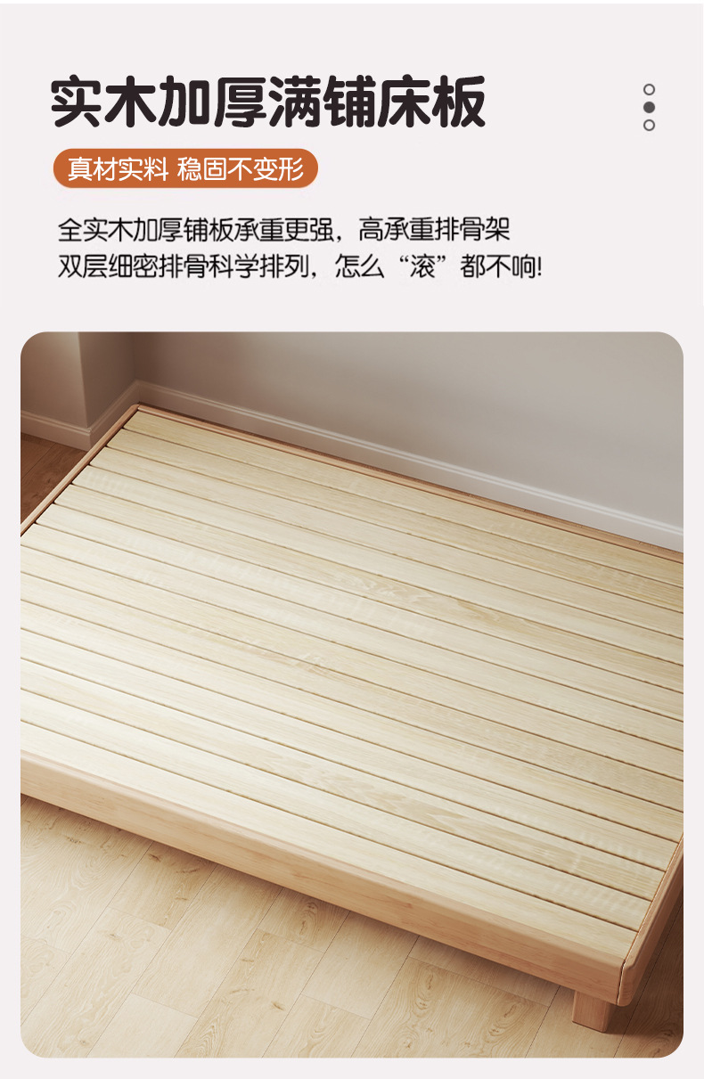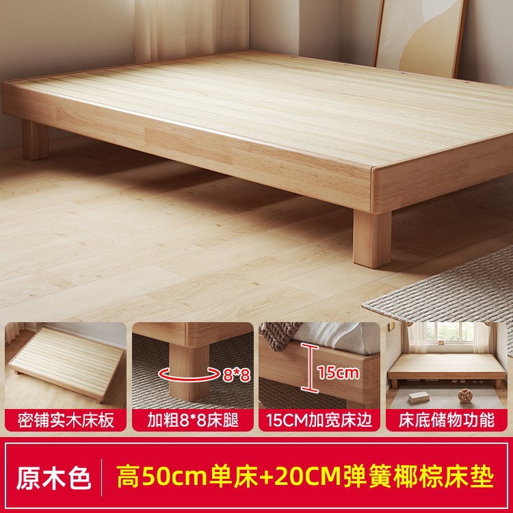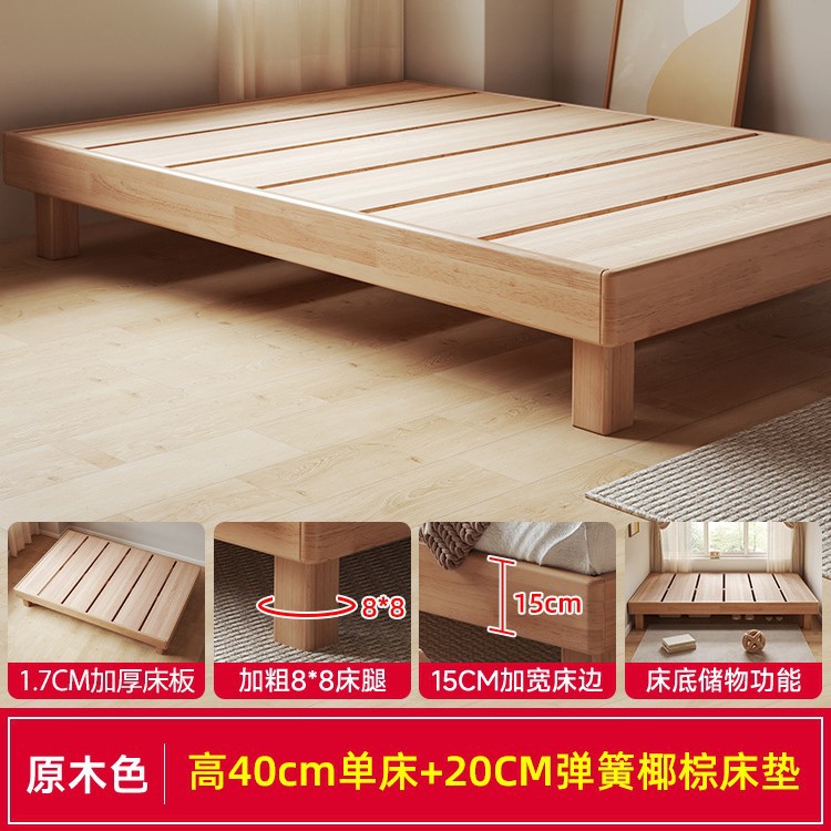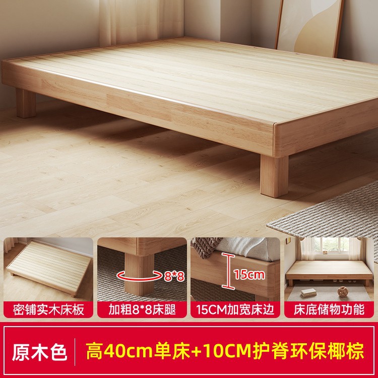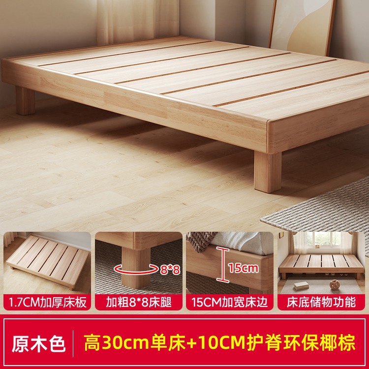 침대 옆 프레임이 없는 전체 원목 침대, 어린이 침대, 넓어진 보드, 두꺼운 1.2 싱글 침대, 1.8m 더블 다다미스토어 가기