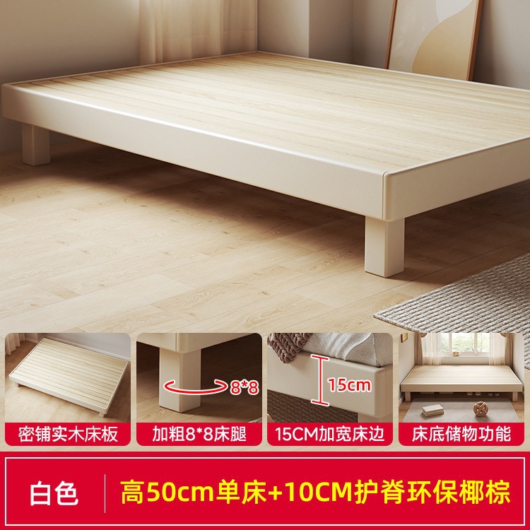 • 화이트 [침대 높이 50cm] 싱글 침대 + 20CM 스프링 브라운 매트 [소나무 줄 프레임 침대판]