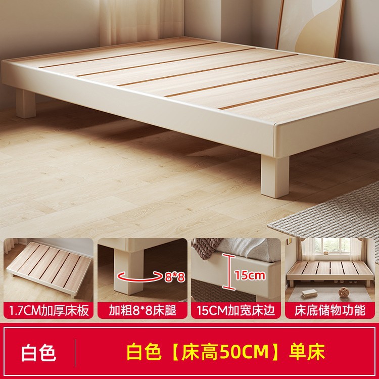• 화이트 [침대 높이 50CM] 싱글 침대 [소나무 프레임 침대판]