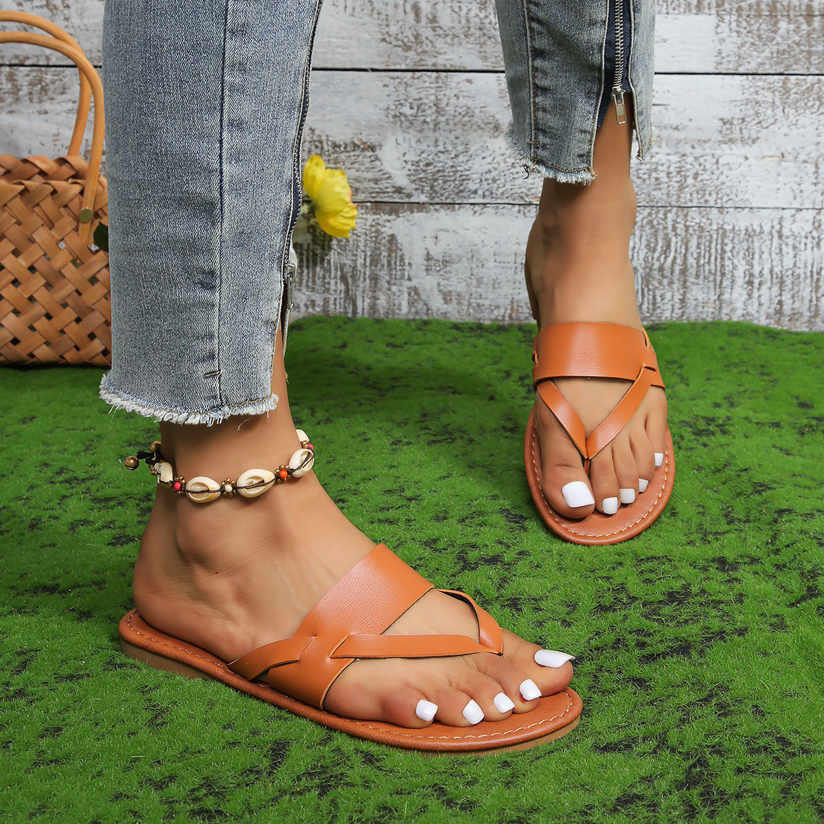 여성용 플랫 슬리퍼, 둥근 발가락 통기성 홈 슬리퍼, 여성용 슬리퍼