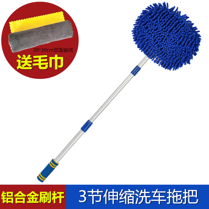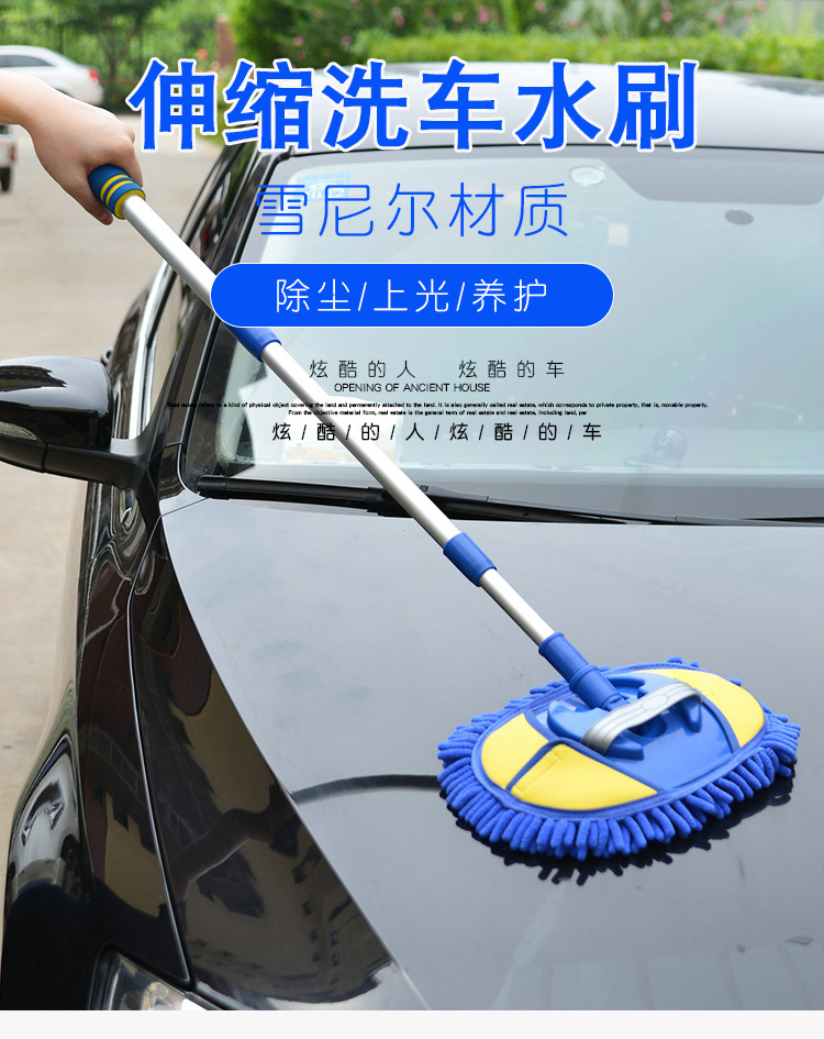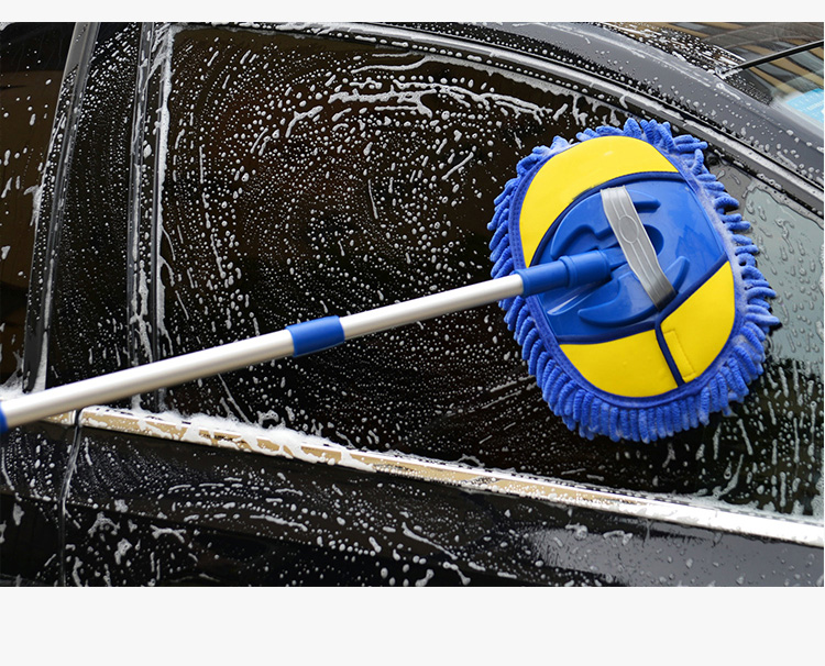 • [확대된 브러시 헤드] 노란색과 파란색 텔레스코픽 걸레 + 자동차 내부 청소용 소형 브러시