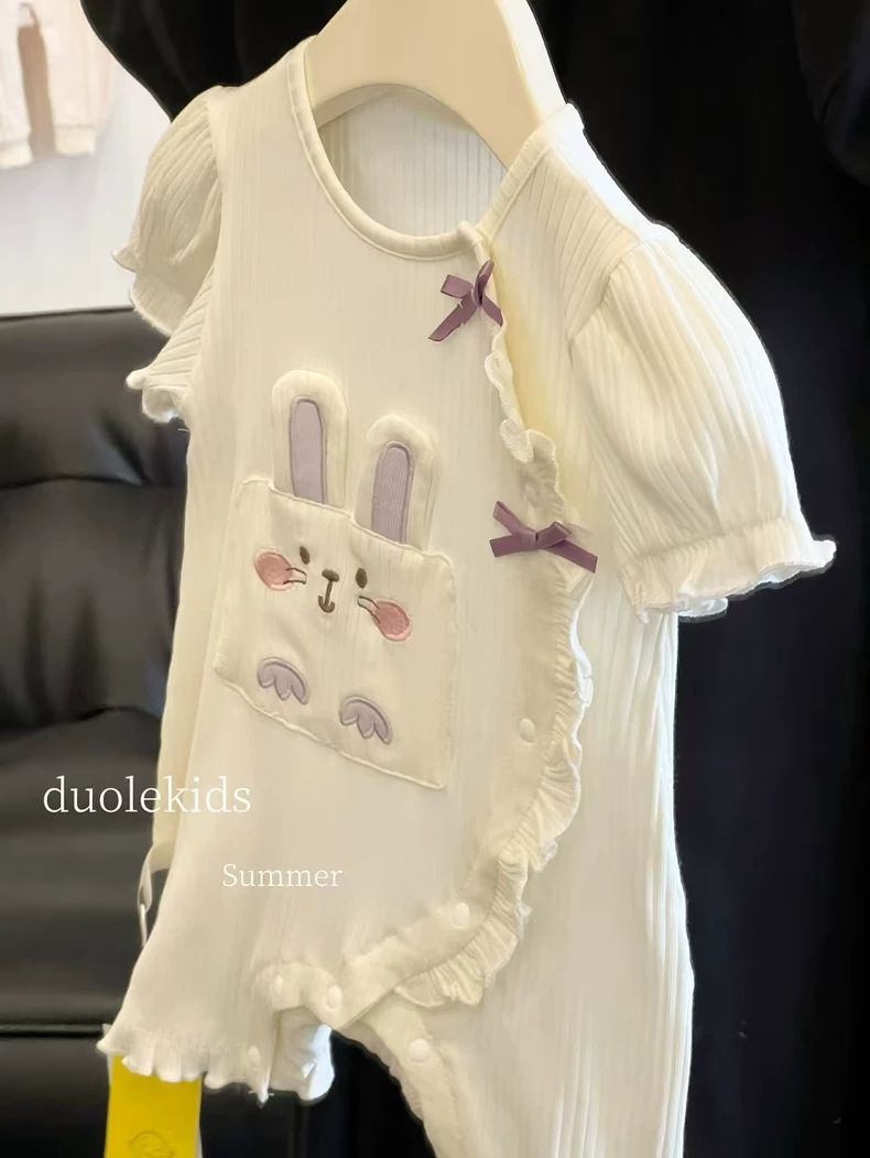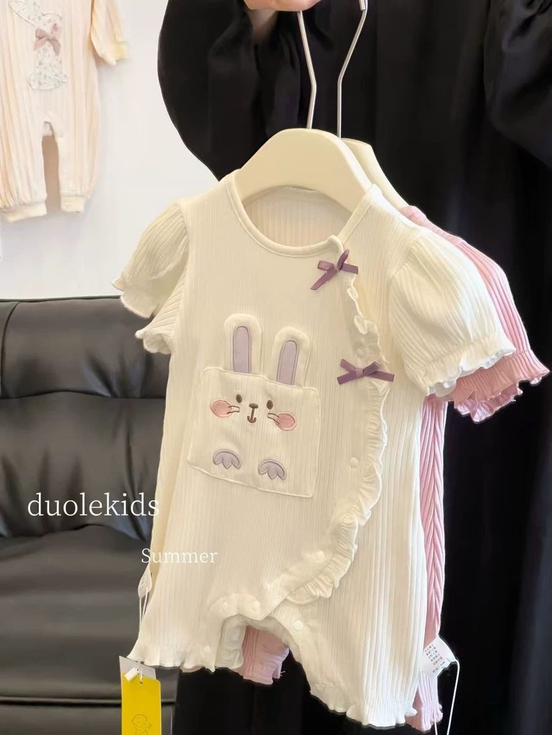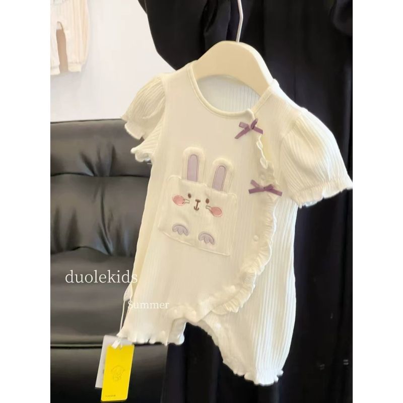 순수 코튼 베이비 여름 새 스타일 반팔 점프 슈트 아기 소녀의 세련되고 귀여운 만화 얇은 스타일 외출복스토어 가기