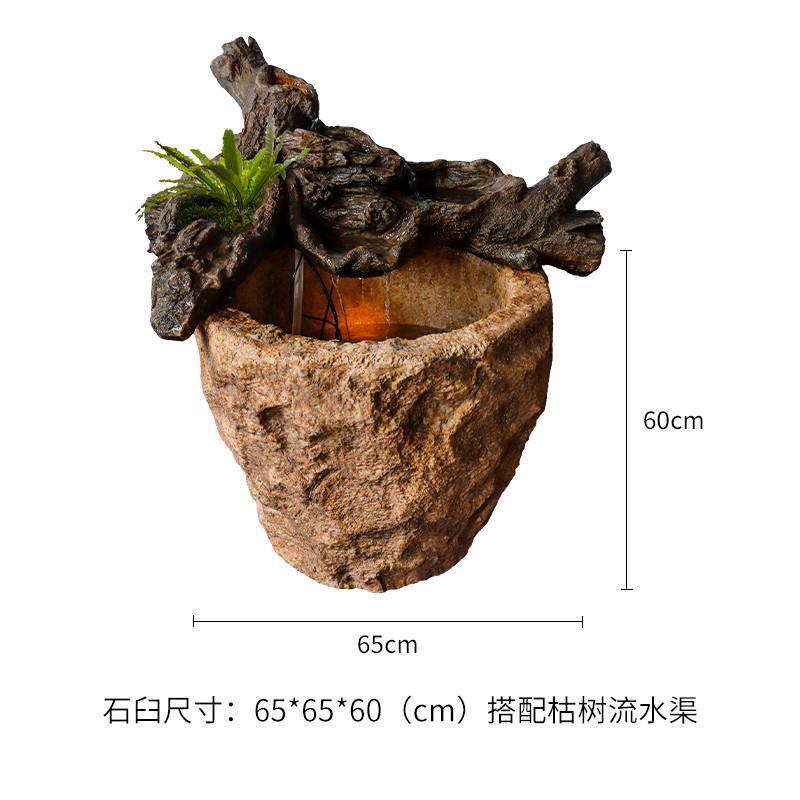 • 둥근 돌 모르타르 크기: 65*65*60(cm) 전체 세트에는 돌 모르타르, 죽은 나무 칩, 워터 펌프, 수도관, LED 조명 및 배송비가 포함됩니다.