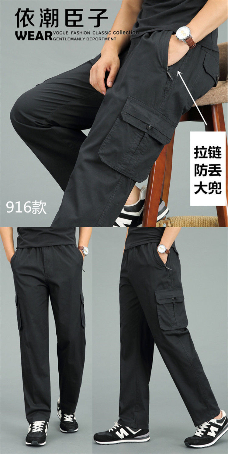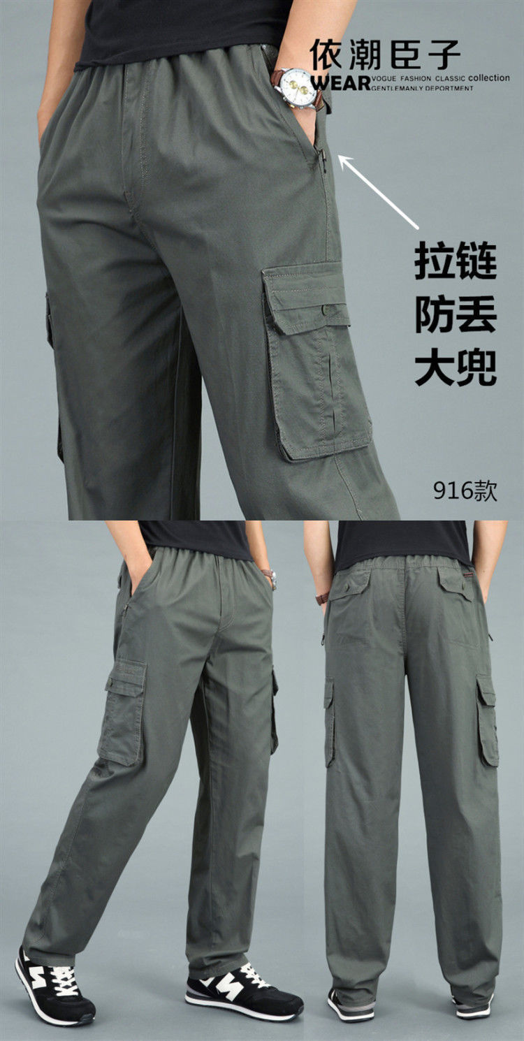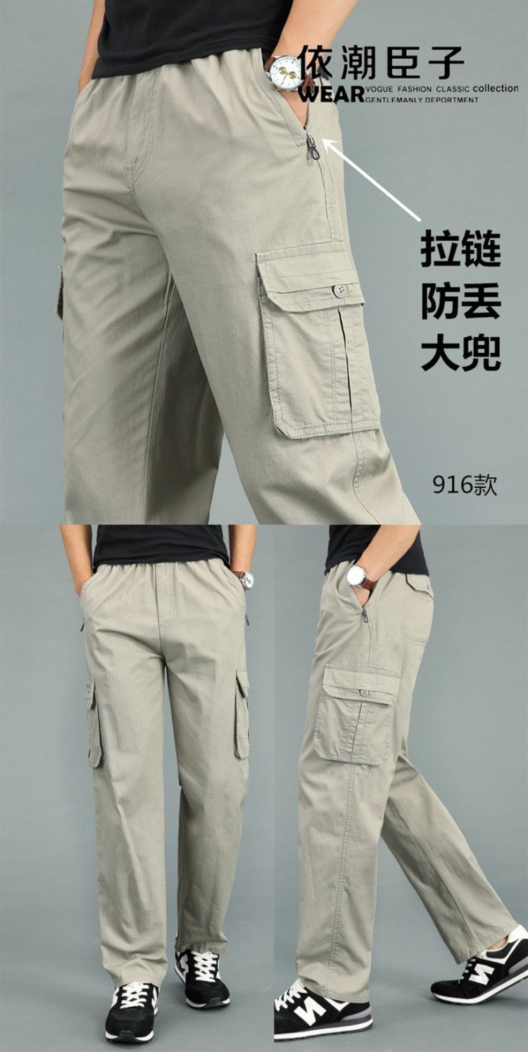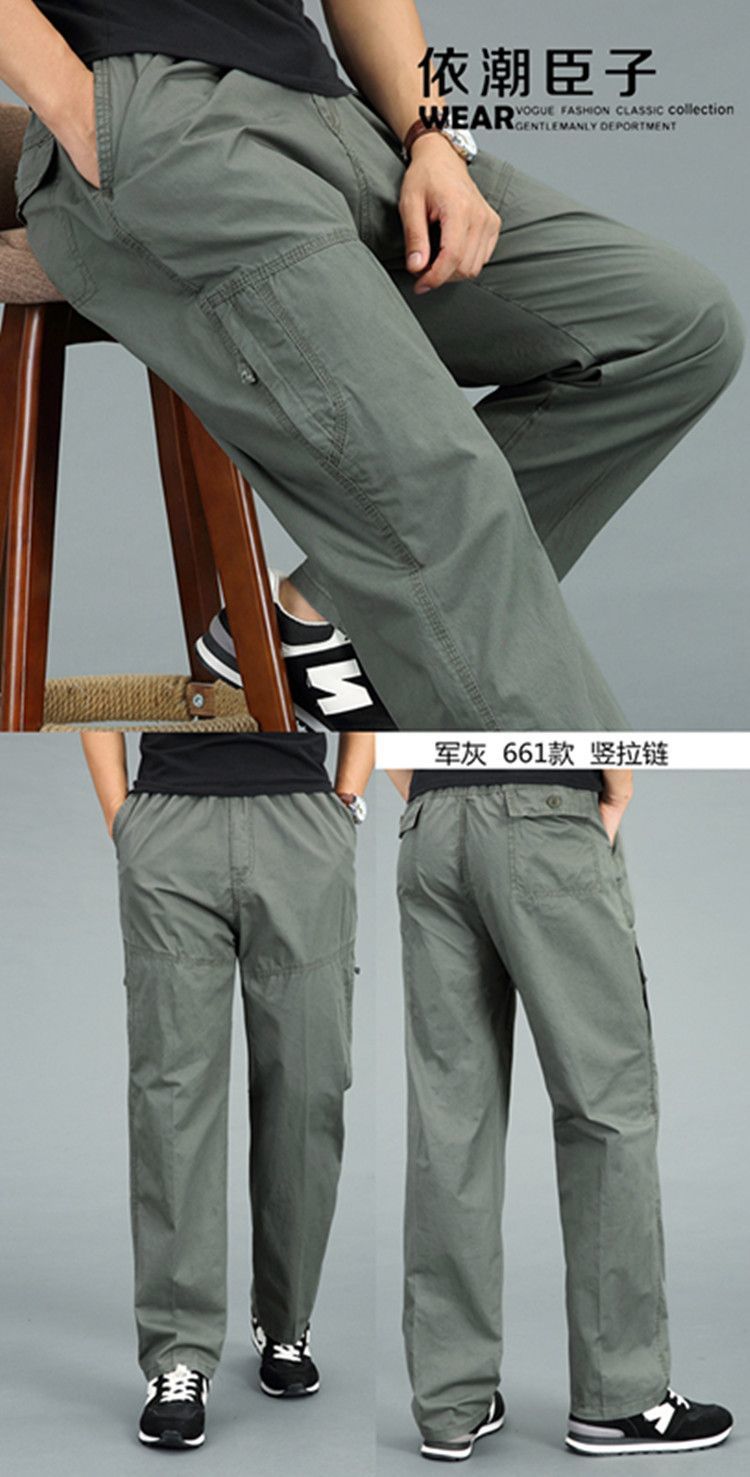 멀티 포켓 지퍼 새로운 바지 남성용 스트레이트 하이 허리 느슨한 플러스 사이즈 캐주얼 롱 팬츠면 땀 흡수성 통기성스토어 가기