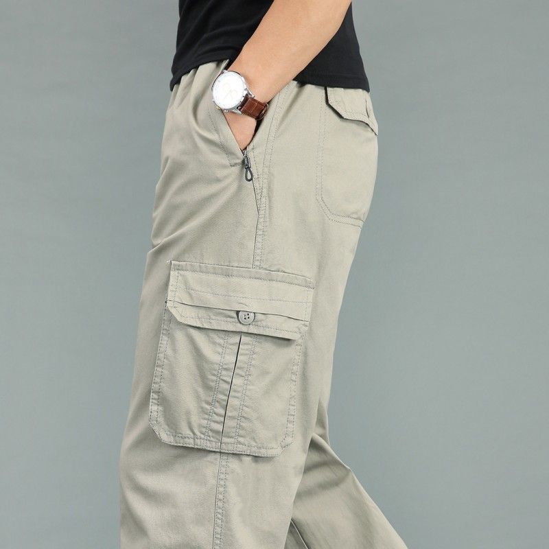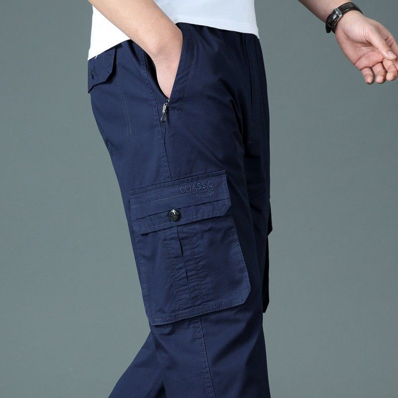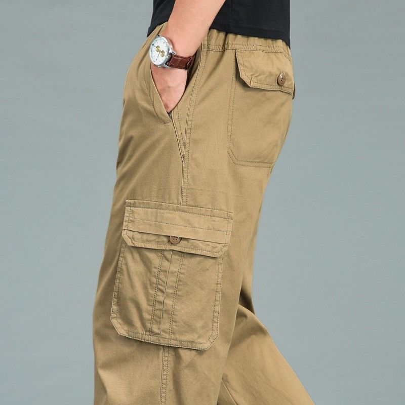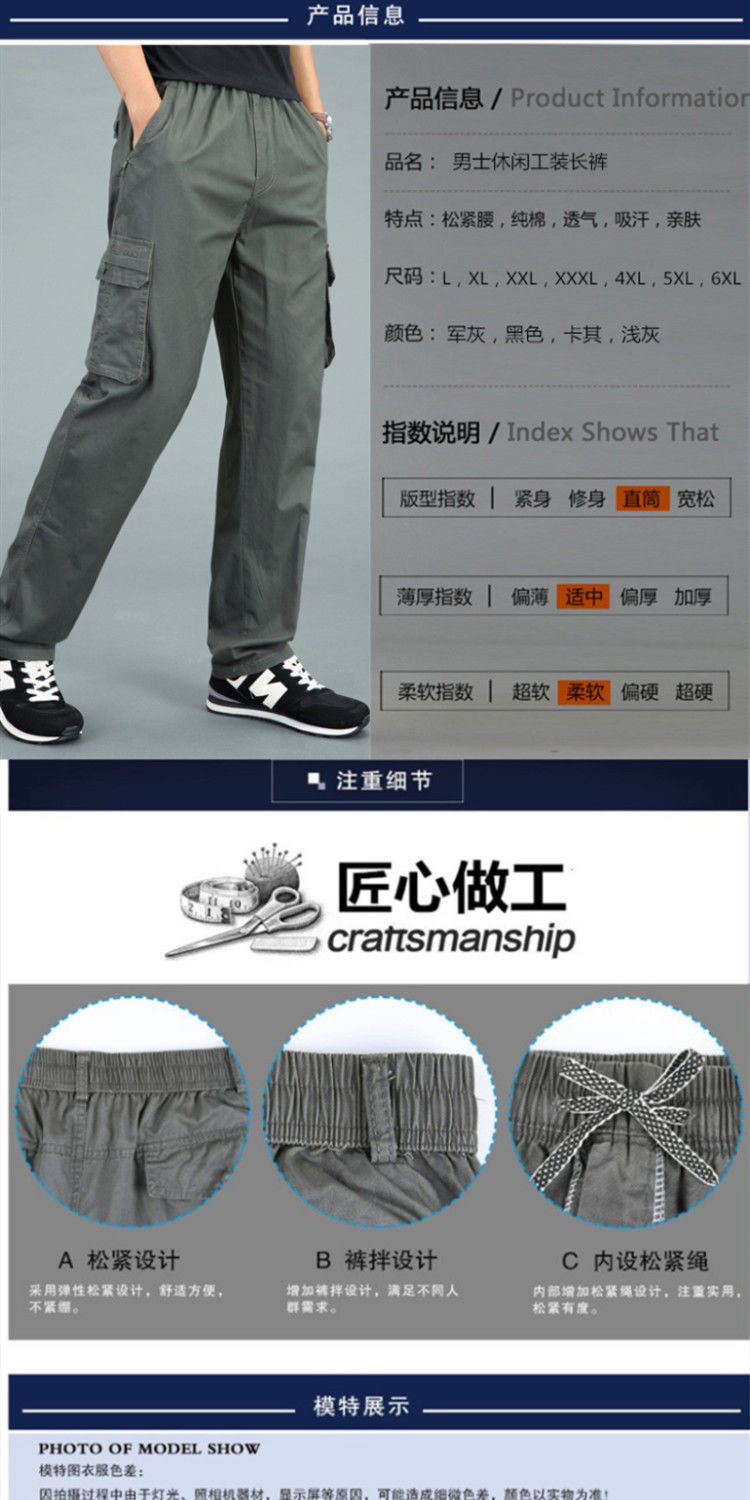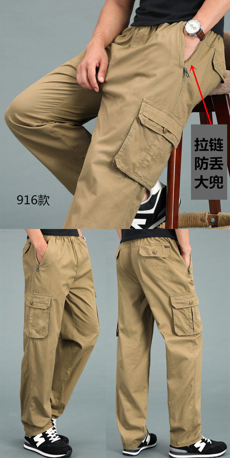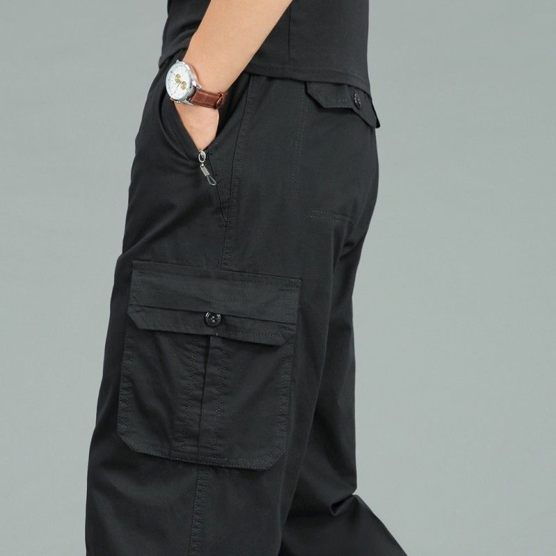 멀티 포켓 지퍼 새로운 바지 남성용 스트레이트 하이 허리 느슨한 플러스 사이즈 캐주얼 롱 팬츠면 땀 흡수성 통기성스토어 가기