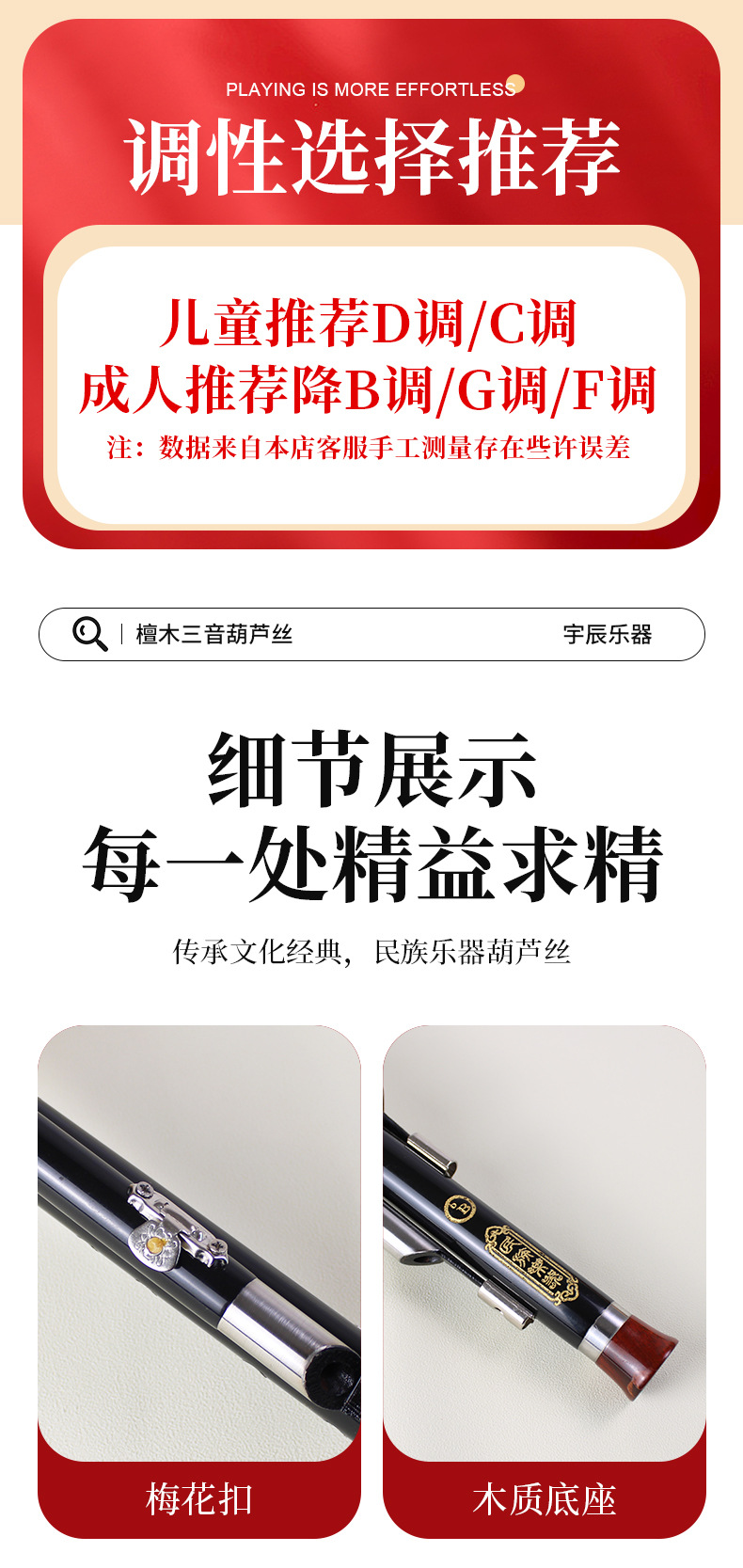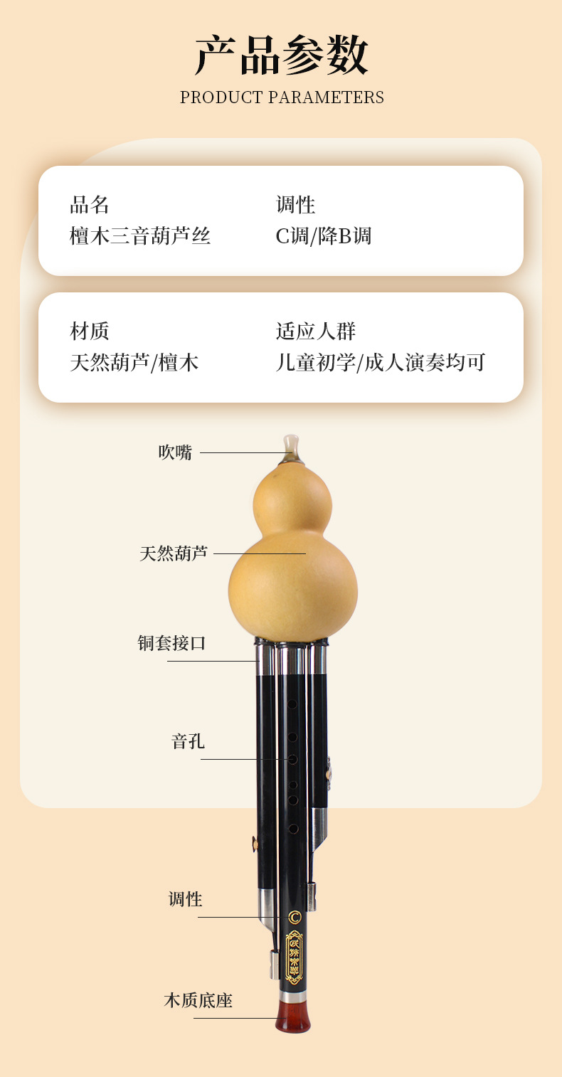 云南葫芦丝黑檀木管葫芦丝cb调初学演奏民族乐器黑檀木音准葫芦