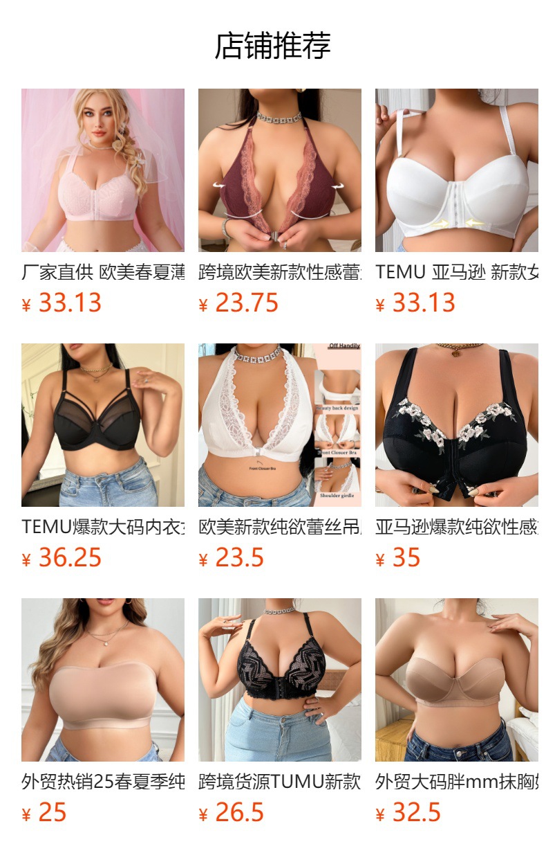 국경을 넘는 TEMU 새로운 크로스 홀터넥 속옷 섹시한 레이스 컷 아웃 프론트 버튼 대형 브래지어 제조업체 직접 승인스토어 가기