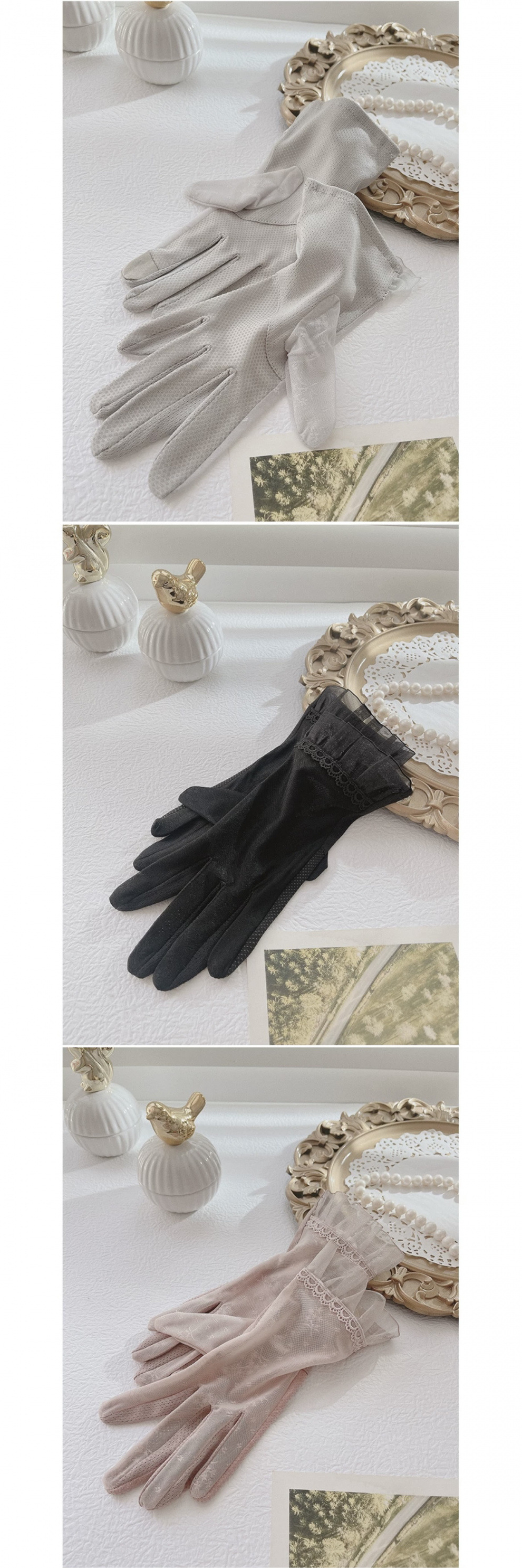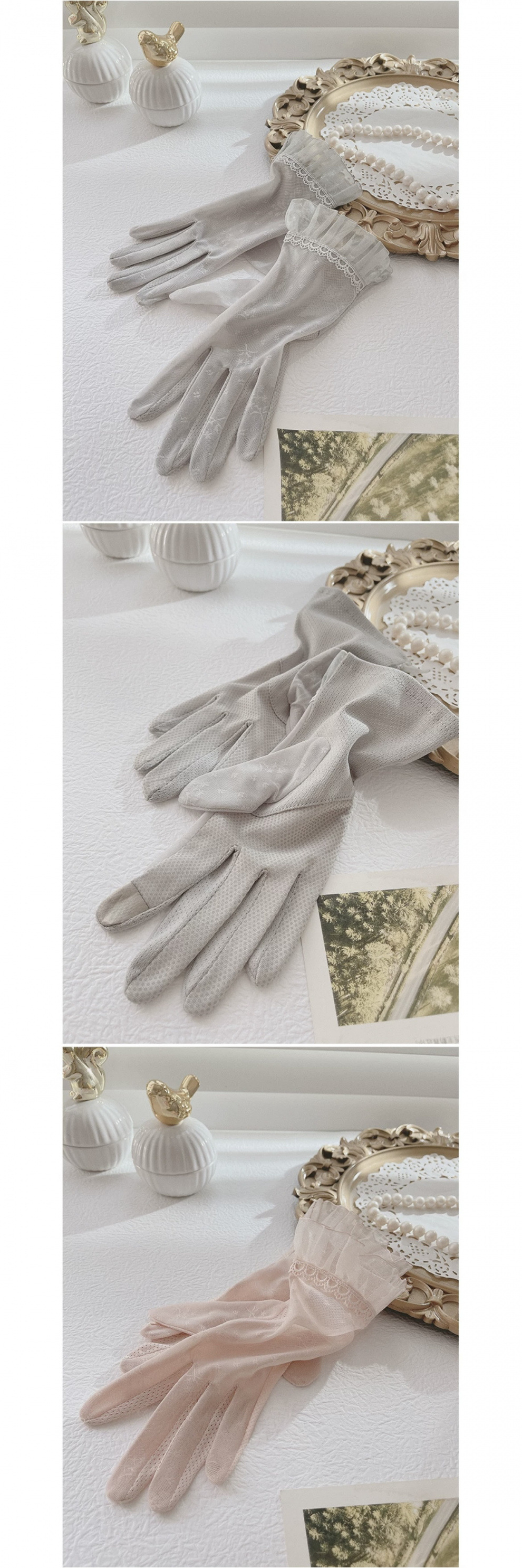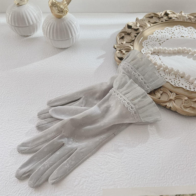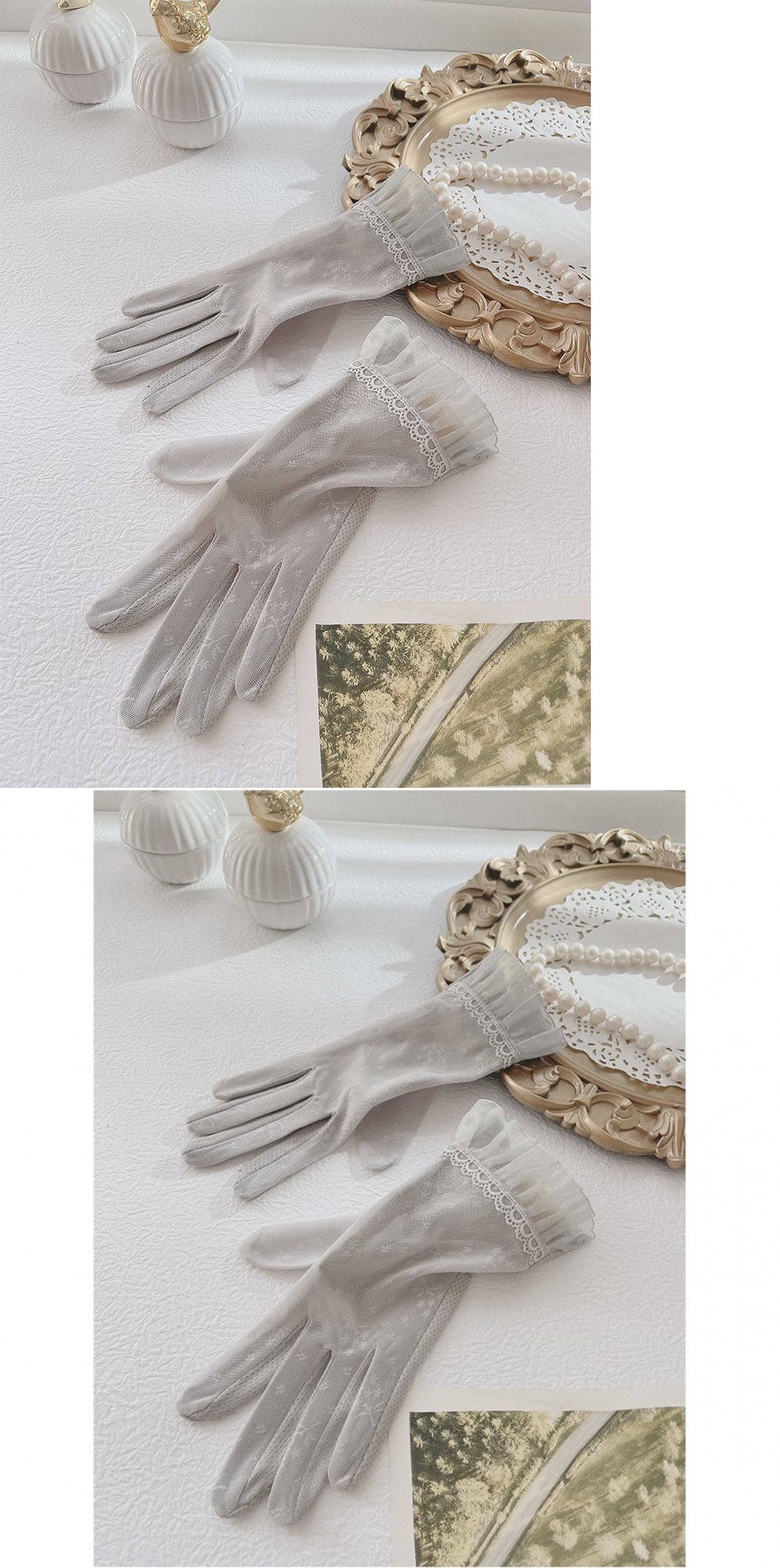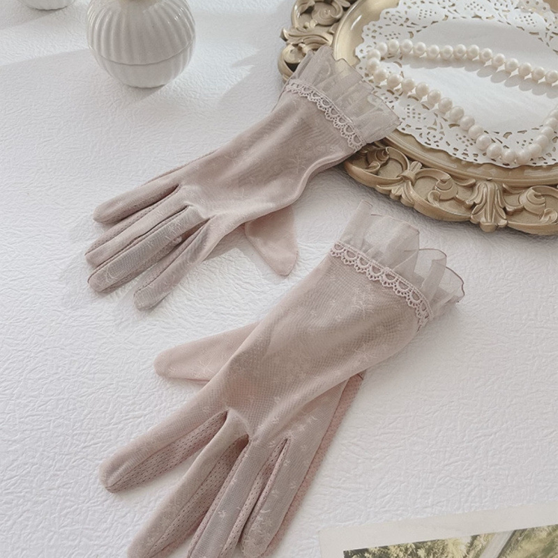 다재다능하고 패셔너블한 여름 터치 스크린 요정 미끄럼 방지 운전 자외선 차단제 여성용 사이클링 장갑, 가볍고 얇은 얼음 실크 레이스스토어 가기