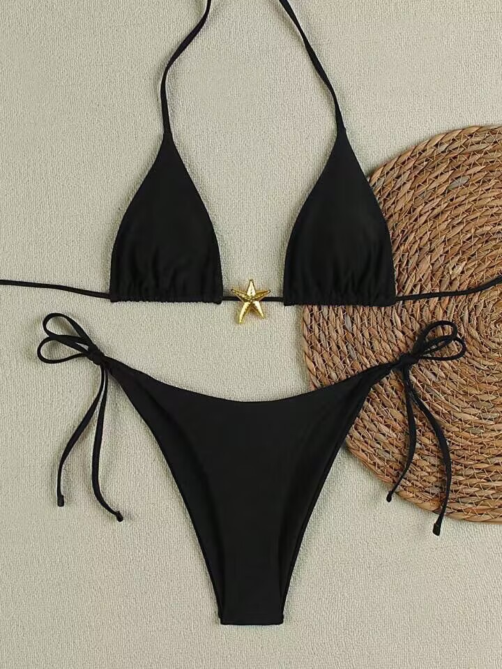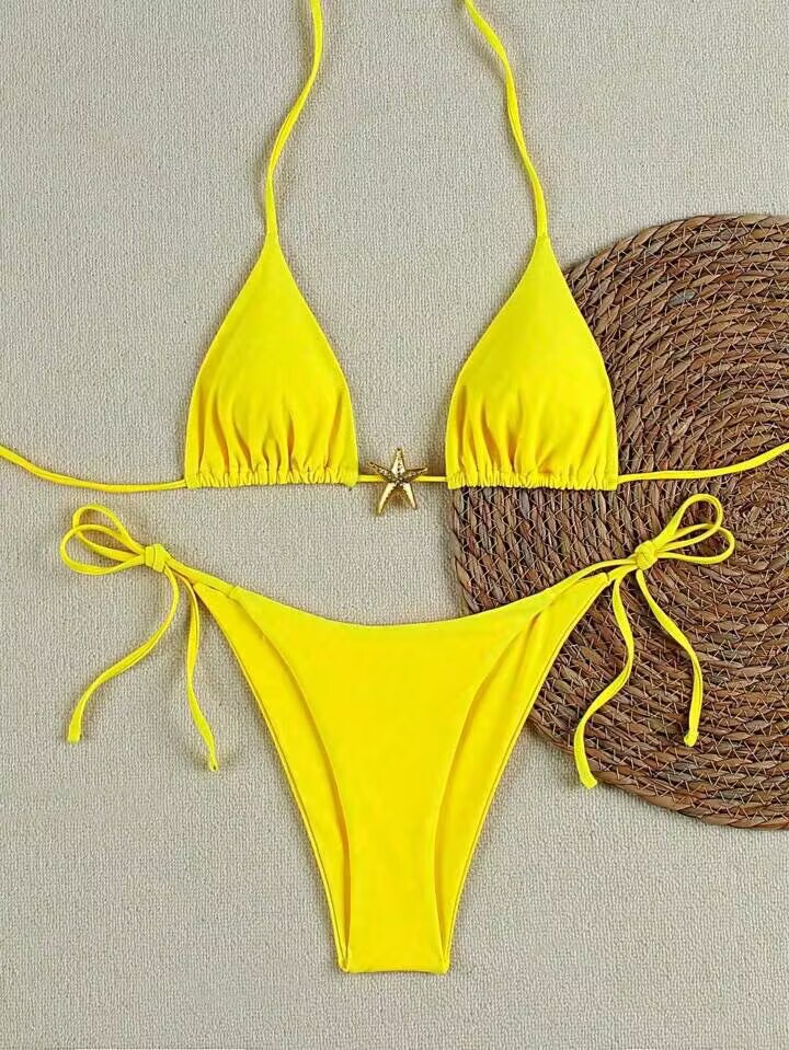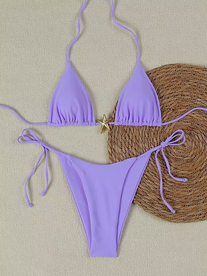 2025 국경 간 대외 무역 수영복 여성 솔리드 컬러 섹시한 끈 백리스 스플릿 수영복 3 점 수영복 비키니스토어 가기