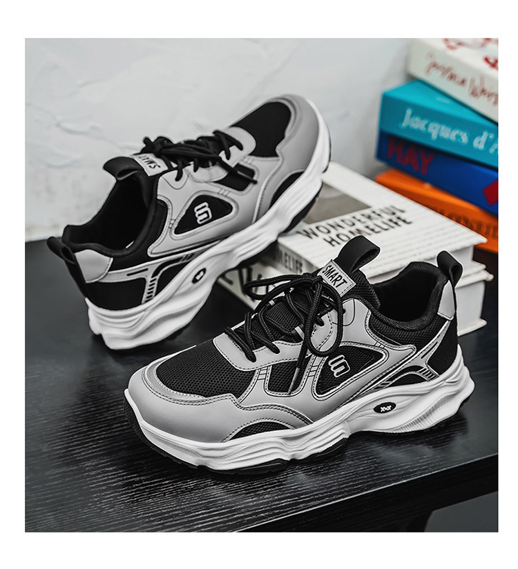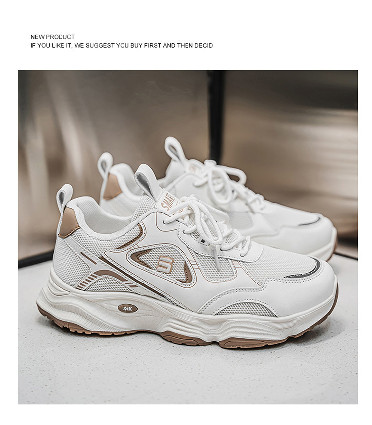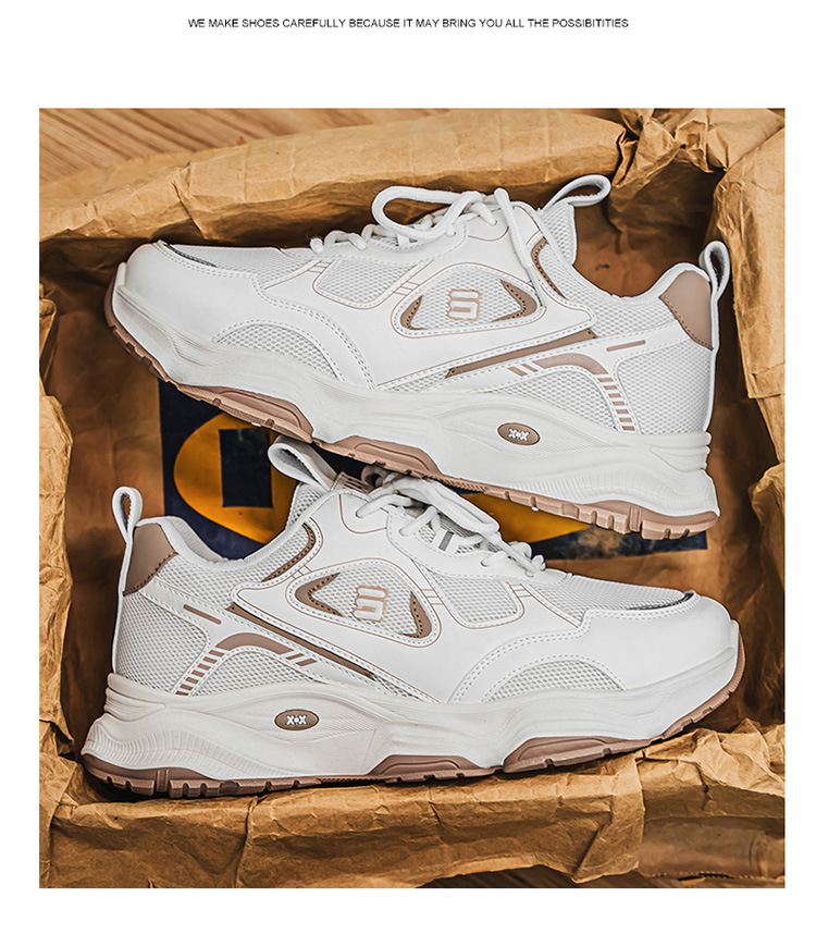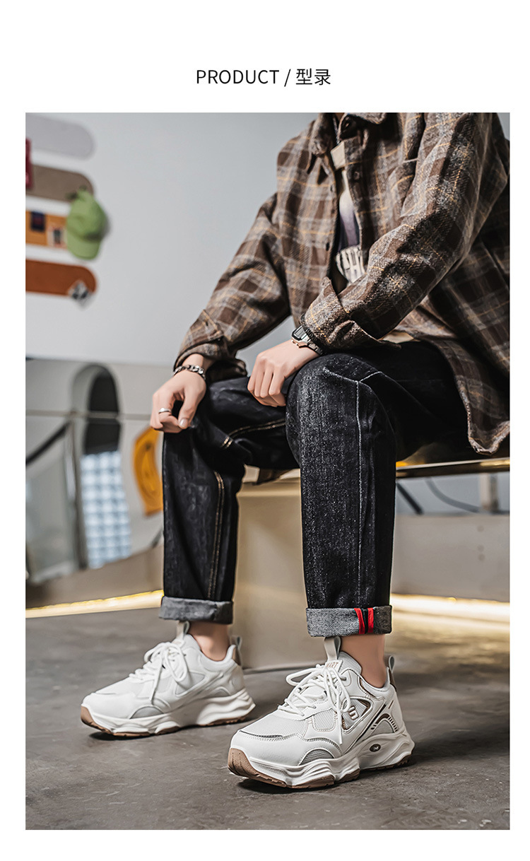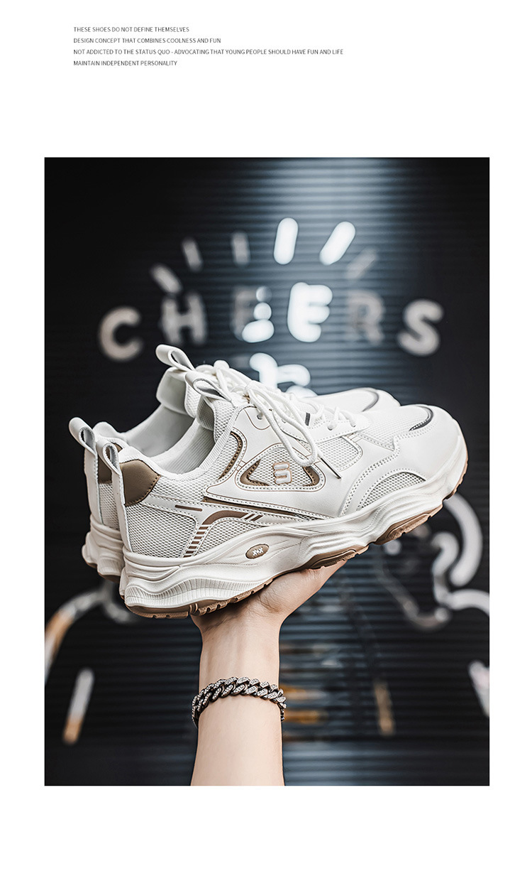 남성 신발 봄 신상 통기성 메쉬 신발 남성 운동화 트렌디한 다용도 흰색 신발 남성용 두꺼운 밑창 아빠 신발