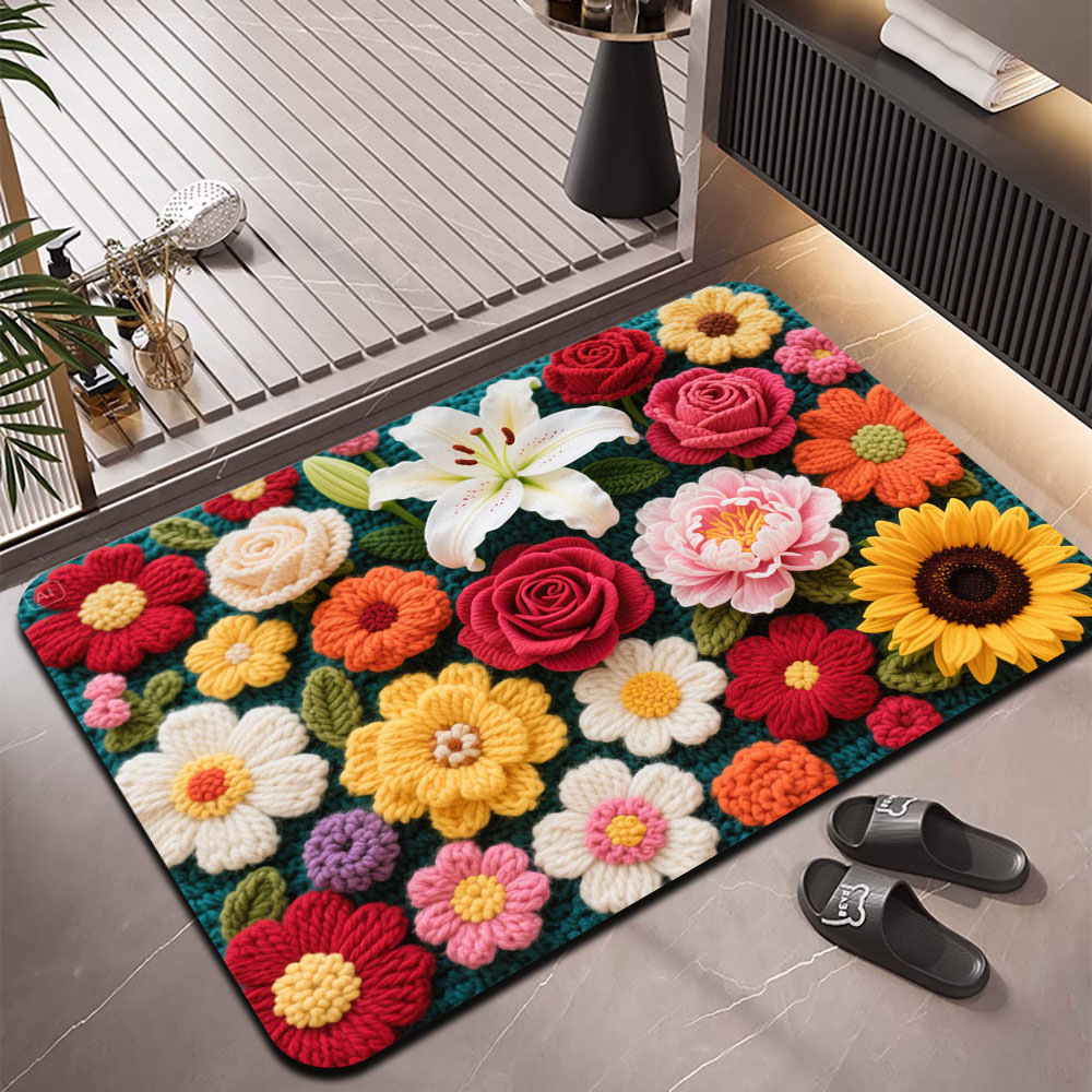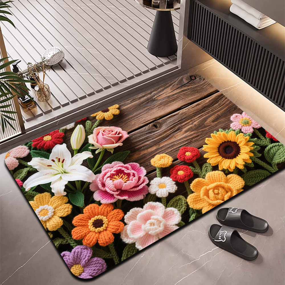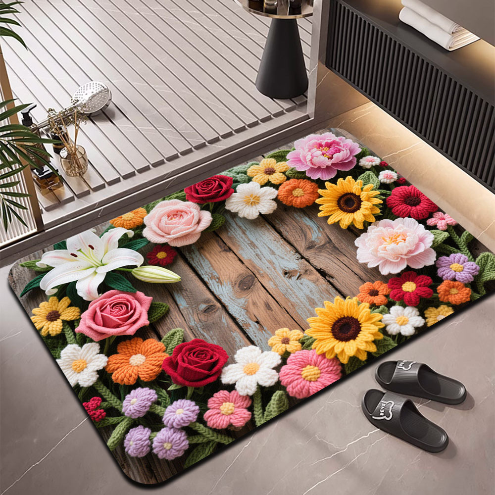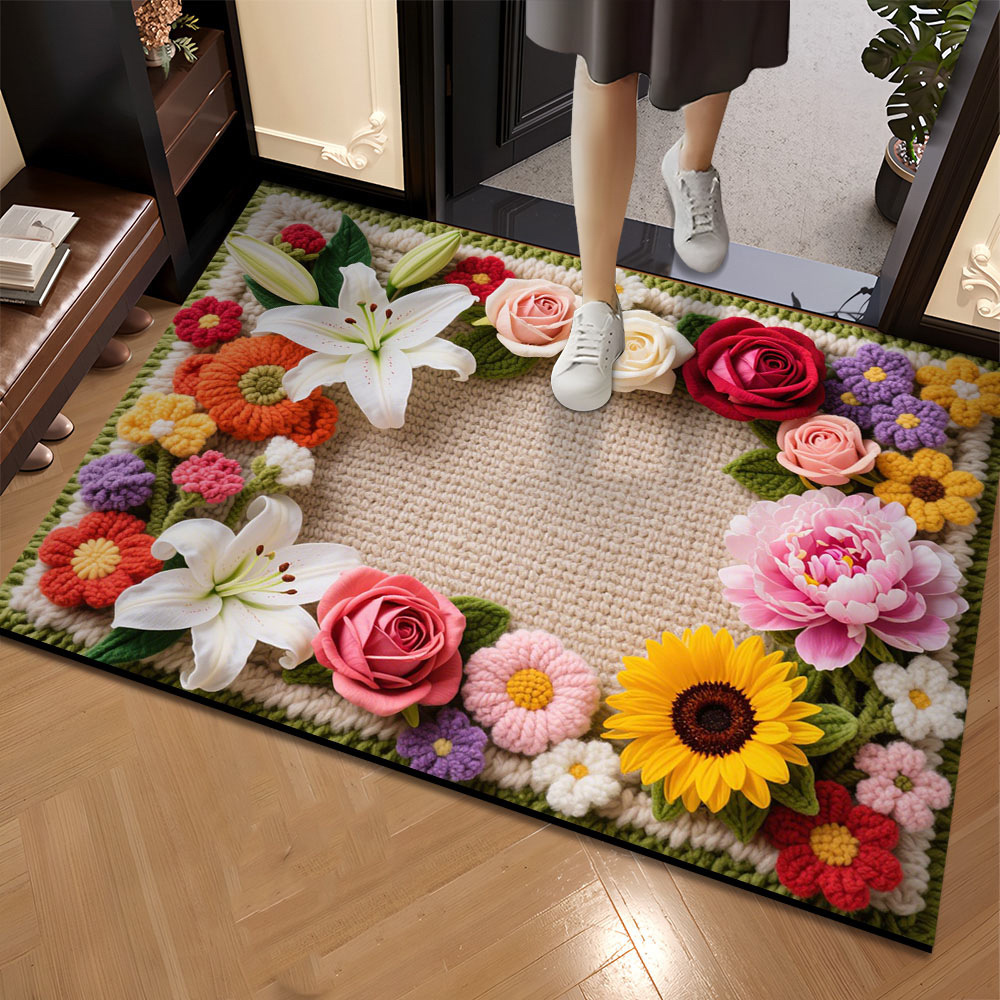 국경을 넘는 꽃무늬 바닥 매트, 흡수성, 속건성, 주방, 현관, 침실, 출입구, 내마모성, 미끄럼 방지, 오염 방지 카펫