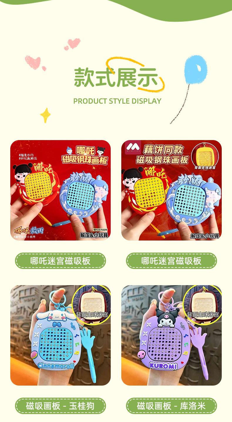 창조적 인 감압 고양이 마그네틱 스틸 볼 드로잉 보드 장난감 키 체인 펜던트 만화 커플 가방 키 체인 도매
