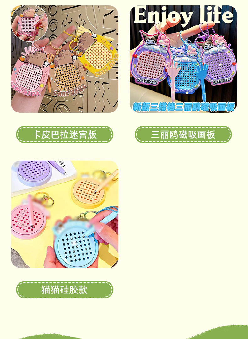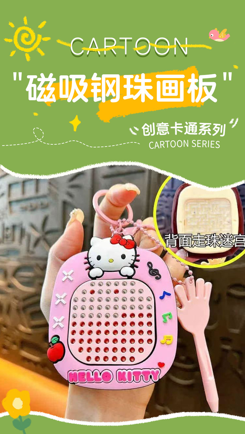 창조적 인 감압 고양이 마그네틱 스틸 볼 드로잉 보드 장난감 키 체인 펜던트 만화 커플 가방 키 체인 도매스토어 가기