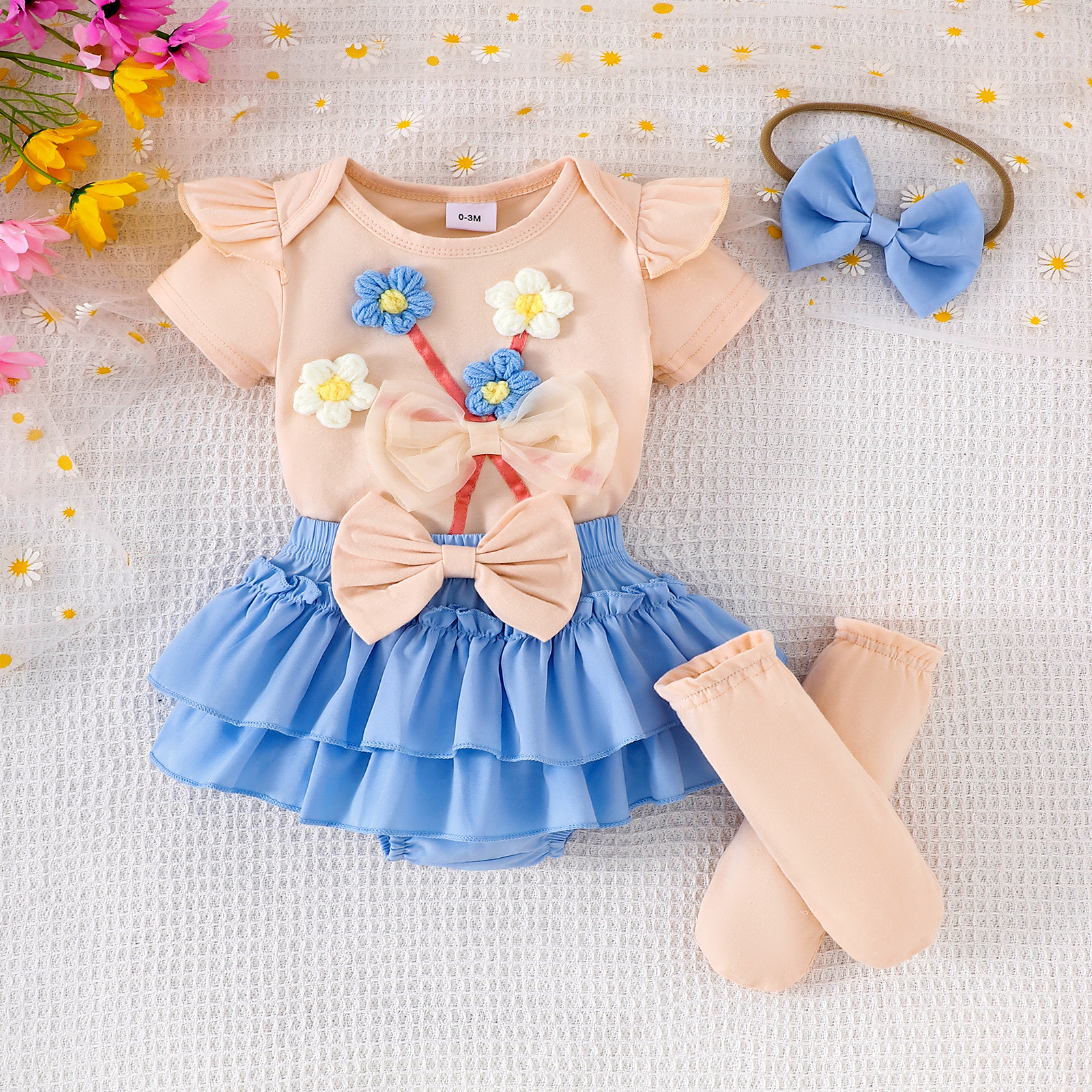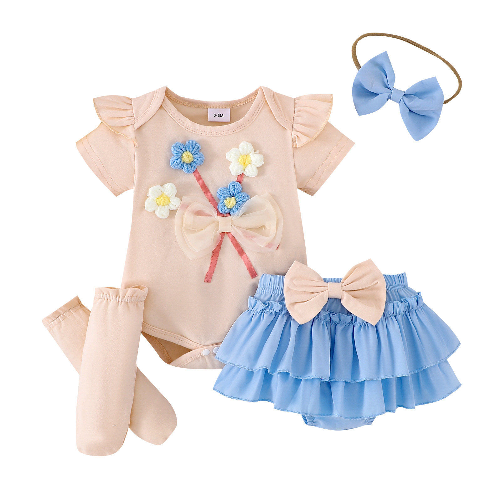 국경 간 유럽과 미국 여름 여성 아기 세트 중소 어린이 아기 아동복 활 스커트 양말 머리 장식