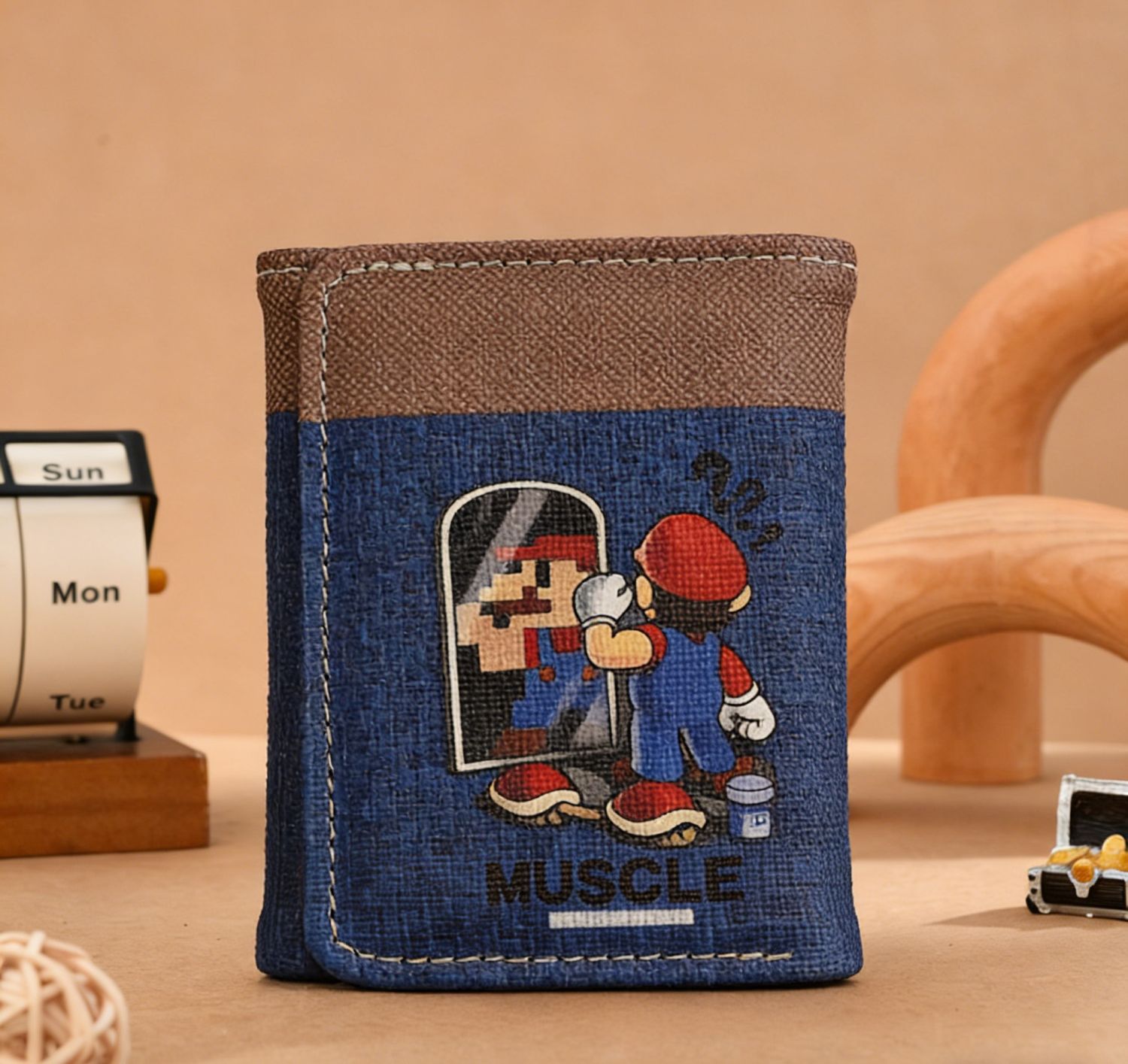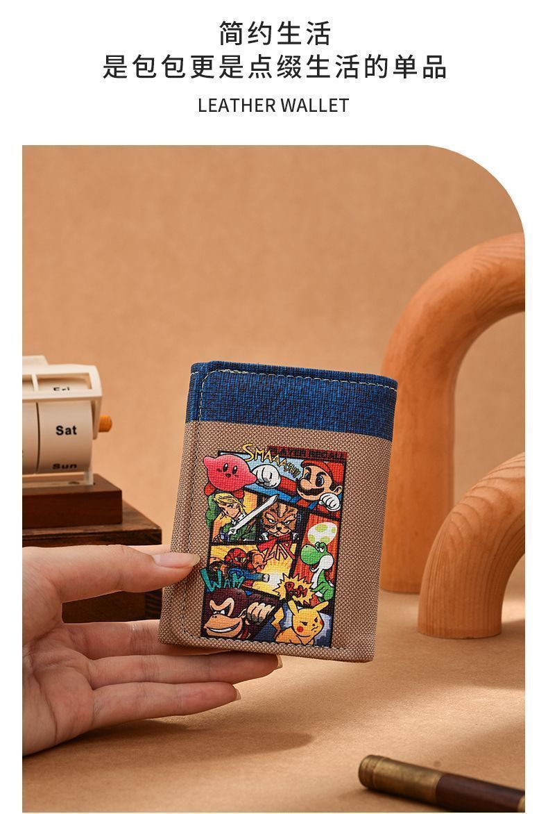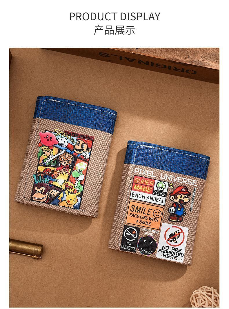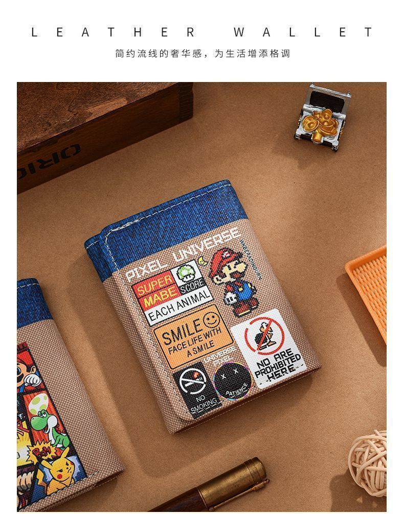 슈퍼 마리오 지갑 남성용 가죽 세로형 패션 트렌드 학생 청소년 게임 만화 애니메이션 주변 카드 지갑