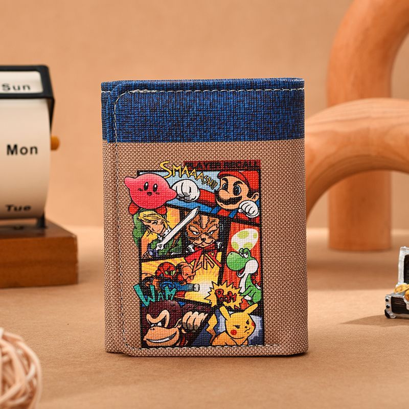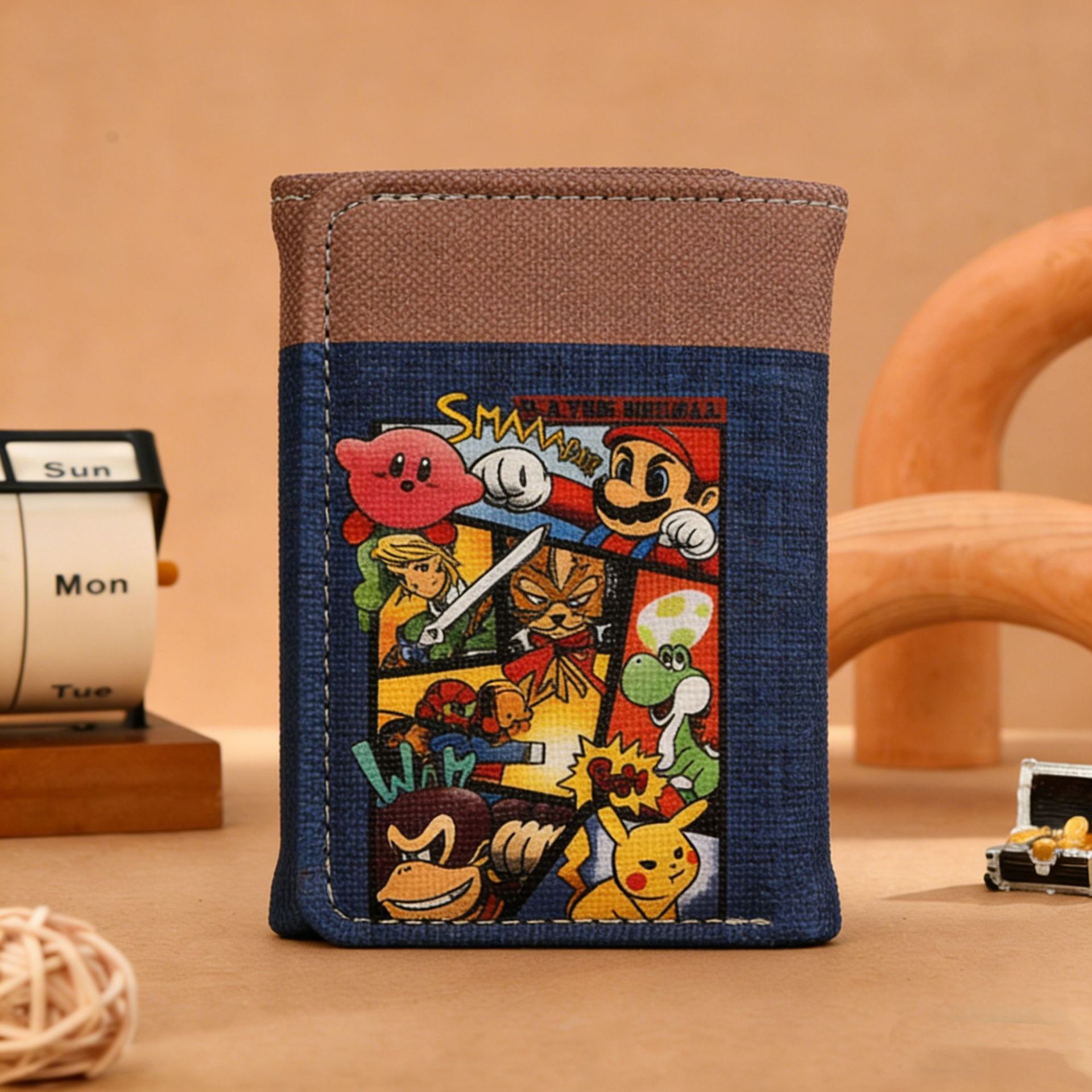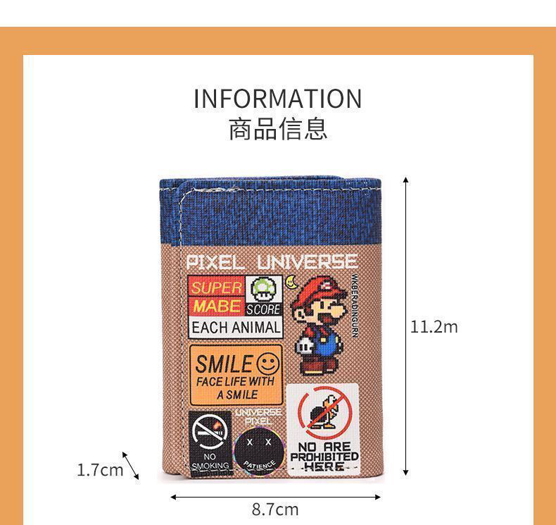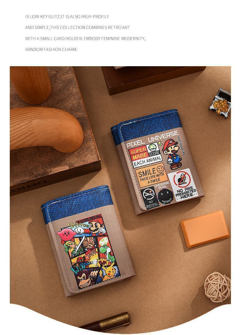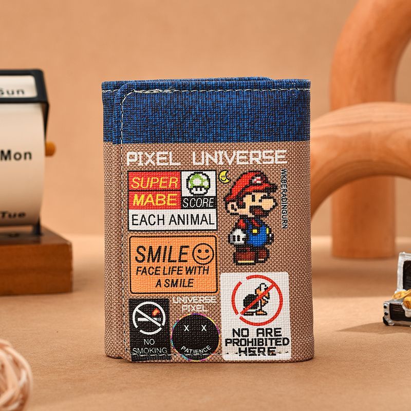 슈퍼 마리오 지갑 남성용 가죽 세로형 패션 트렌드 학생 청소년 게임 만화 애니메이션 주변 카드 지갑