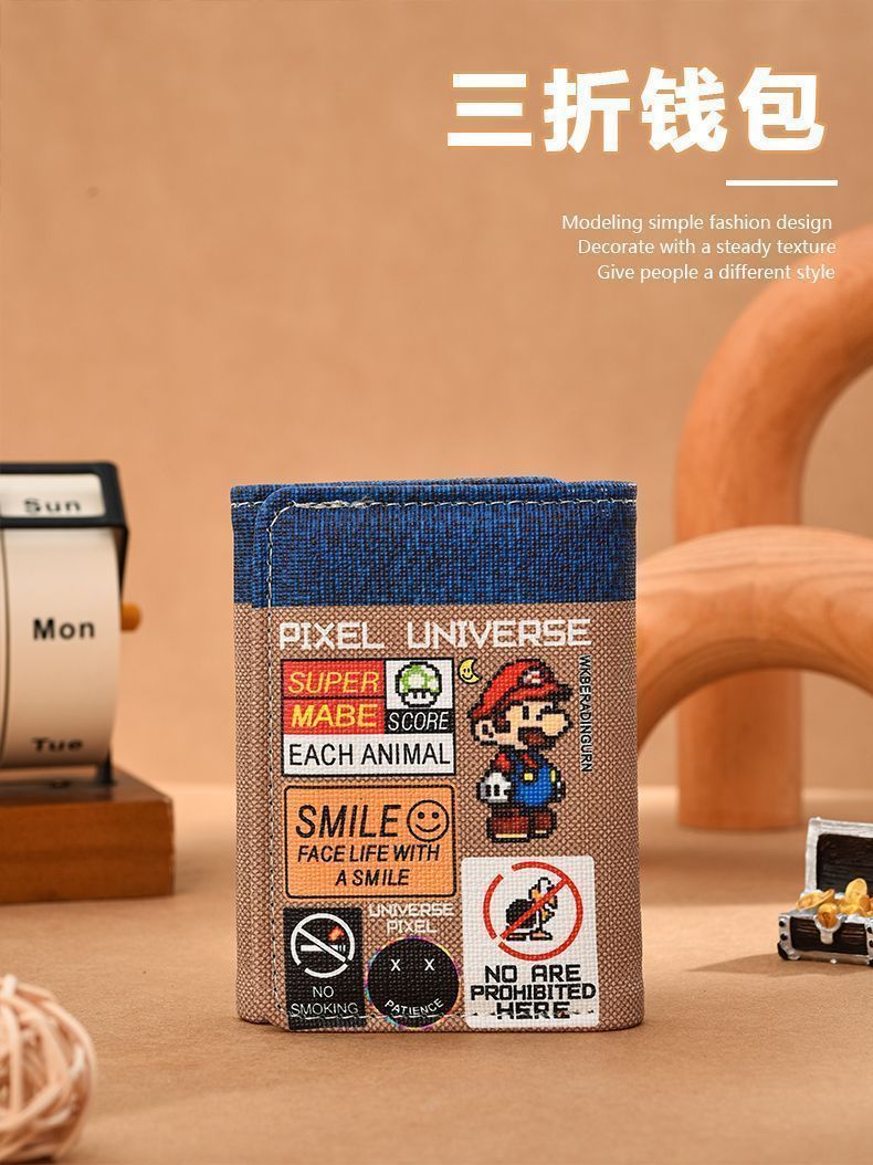 슈퍼 마리오 지갑 남성용 가죽 세로형 패션 트렌드 학생 청소년 게임 만화 애니메이션 주변 카드 지갑스토어 가기