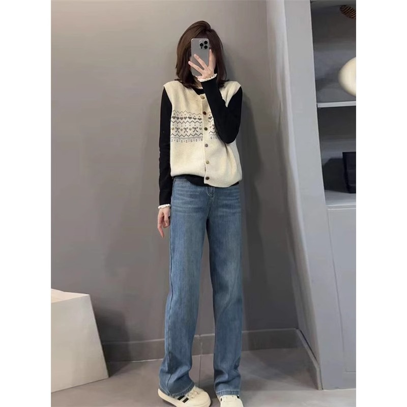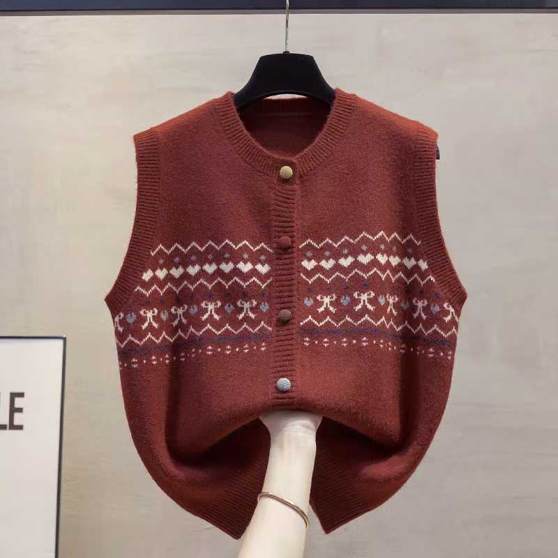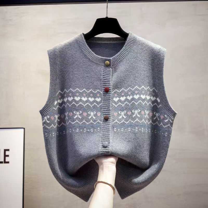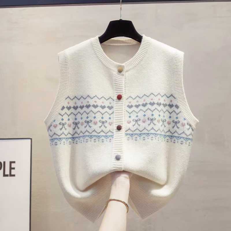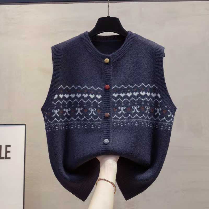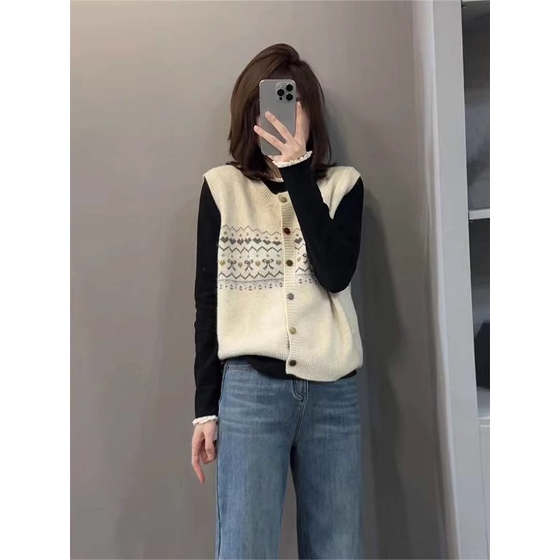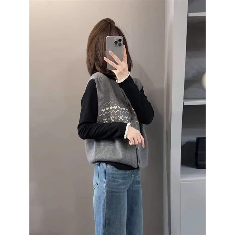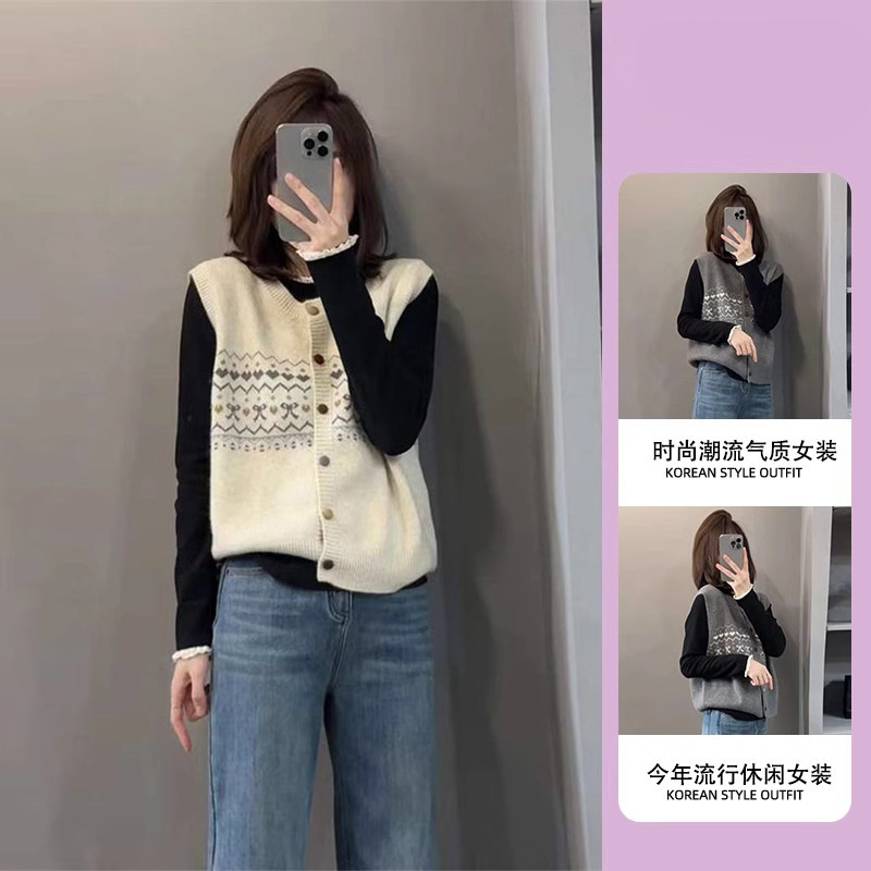 한국 문학적 기질의 여성용 니트 스웨터 조끼, 봄, 가을 레이어드 조끼, 틈새 디자인 스웨터 조끼스토어 가기