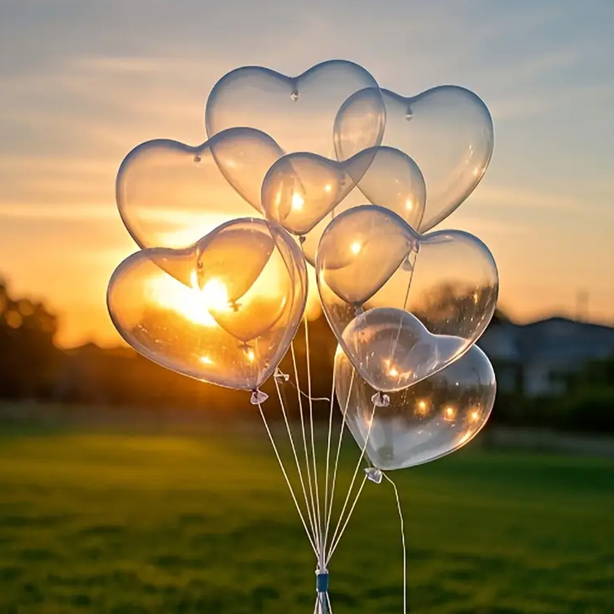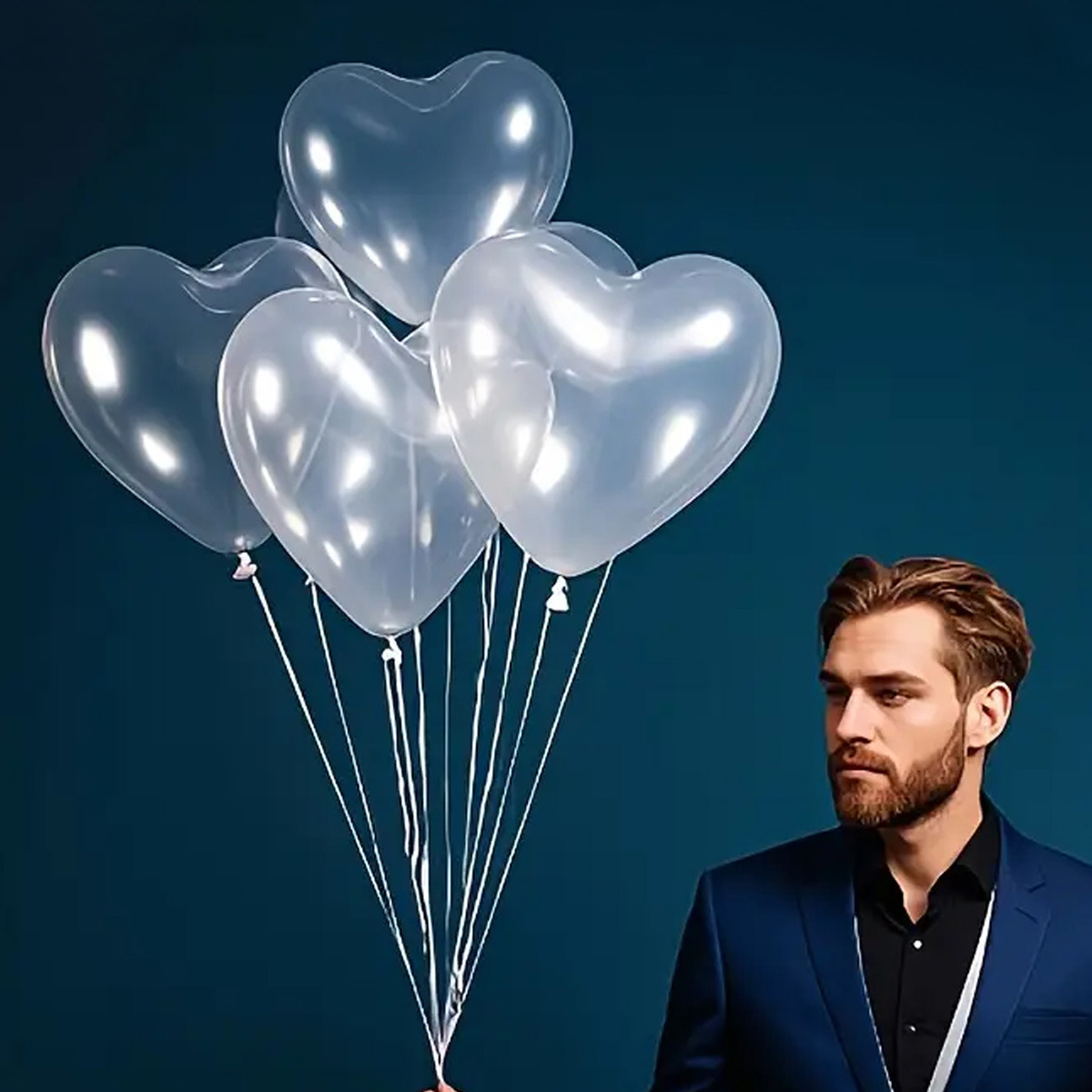 • 10pcs 투명 사랑 라텍스 풍선 + 흰색 리본 롤
