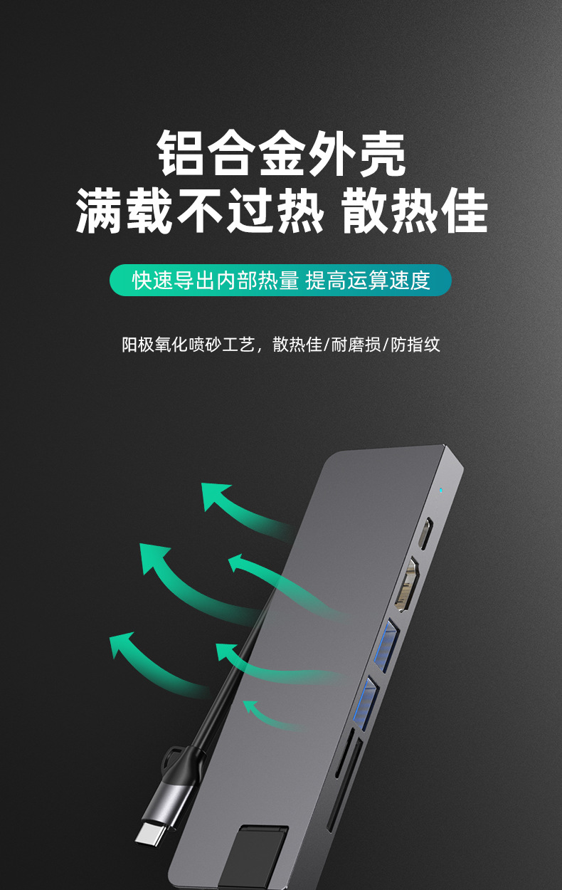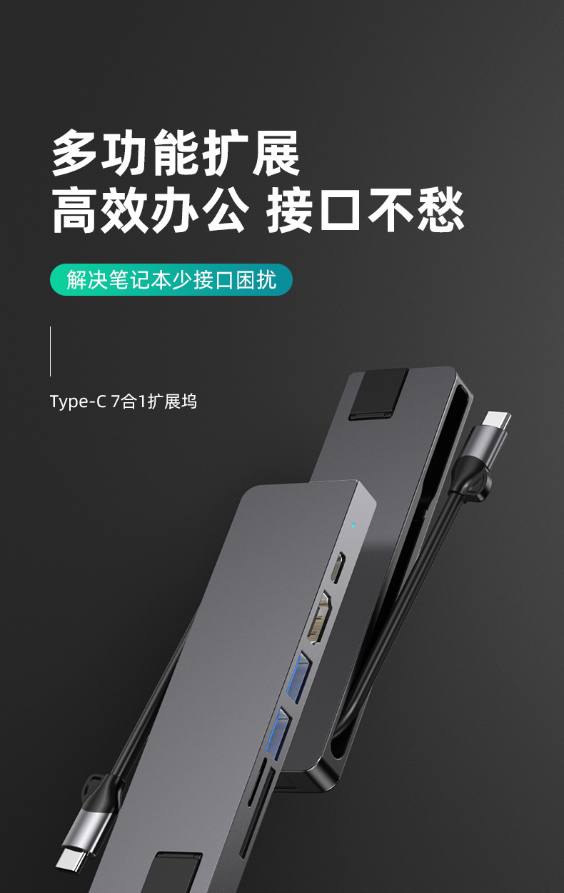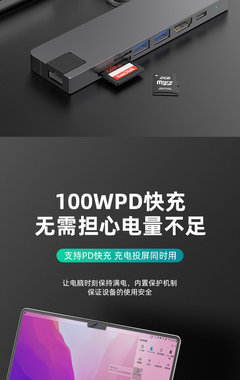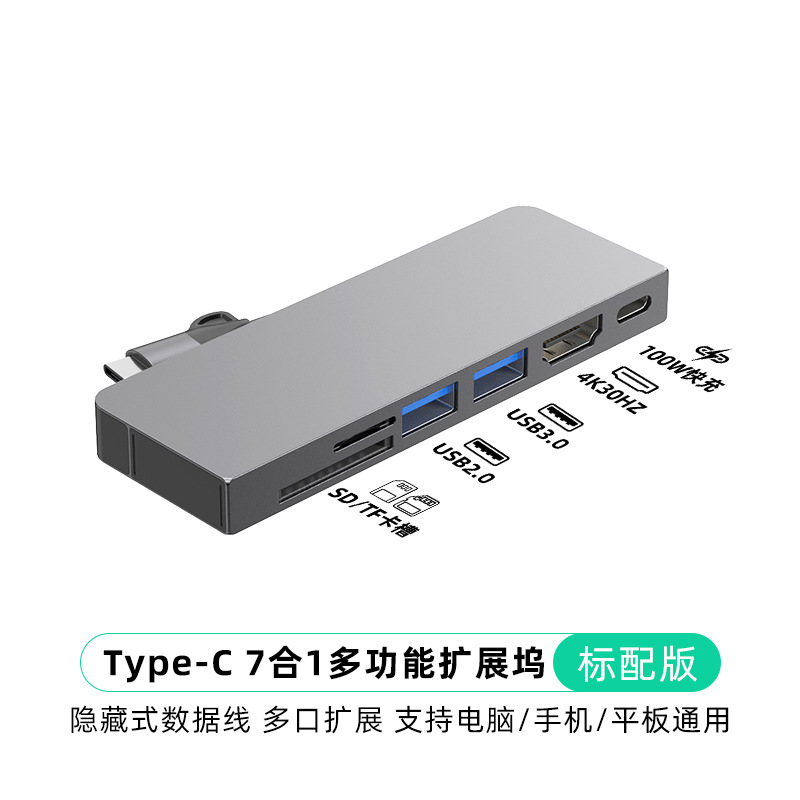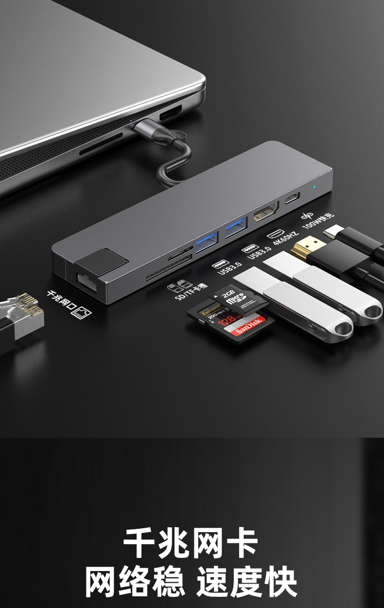 Typec7 하나의 도킹 스테이션 컴퓨터 허브 기가비트 네트워크 카드 PD100 빠른 충전 CNC 조각 알루미늄 합금 쉘