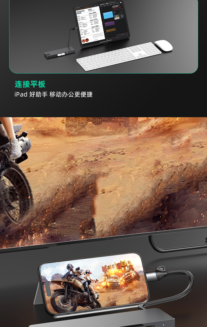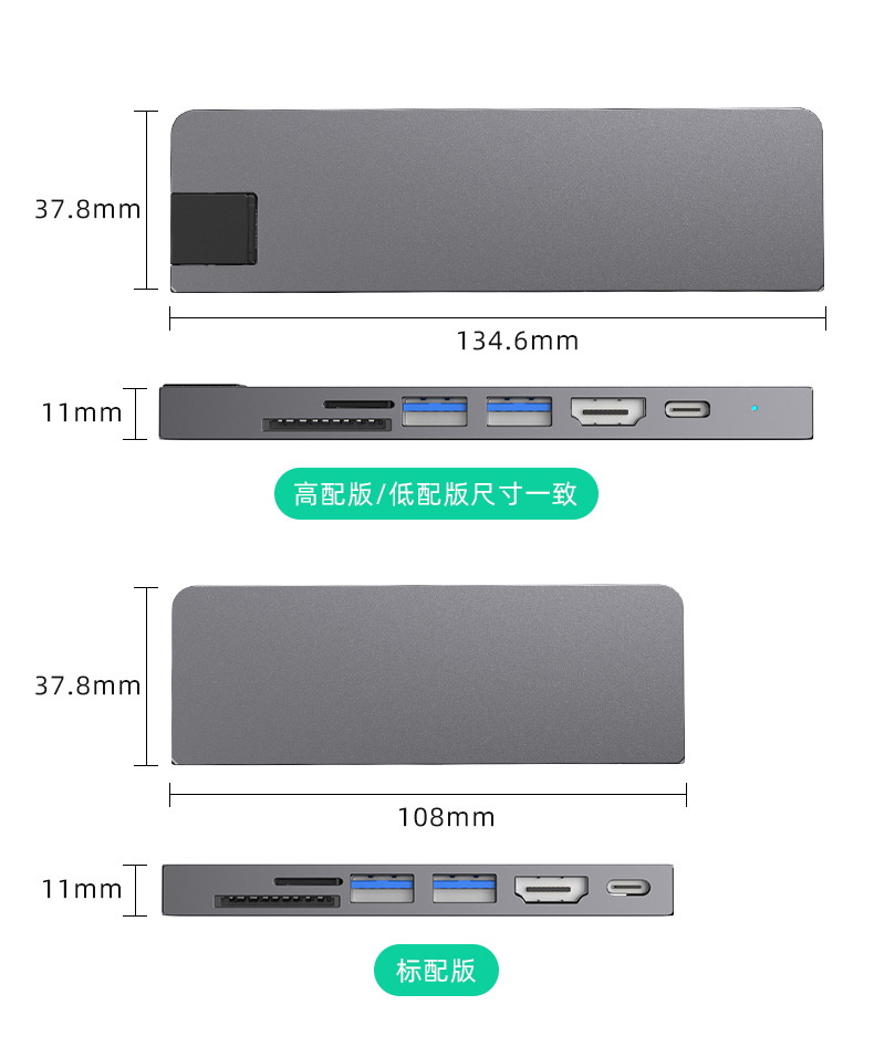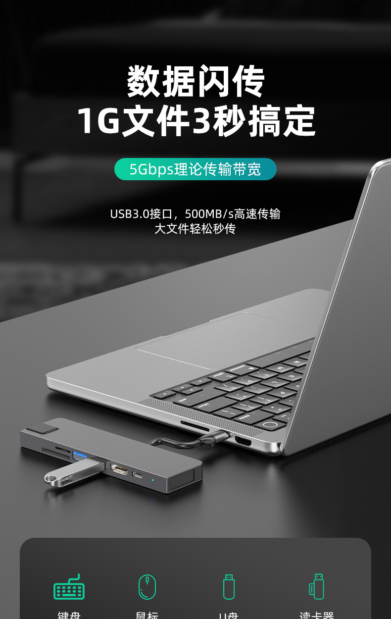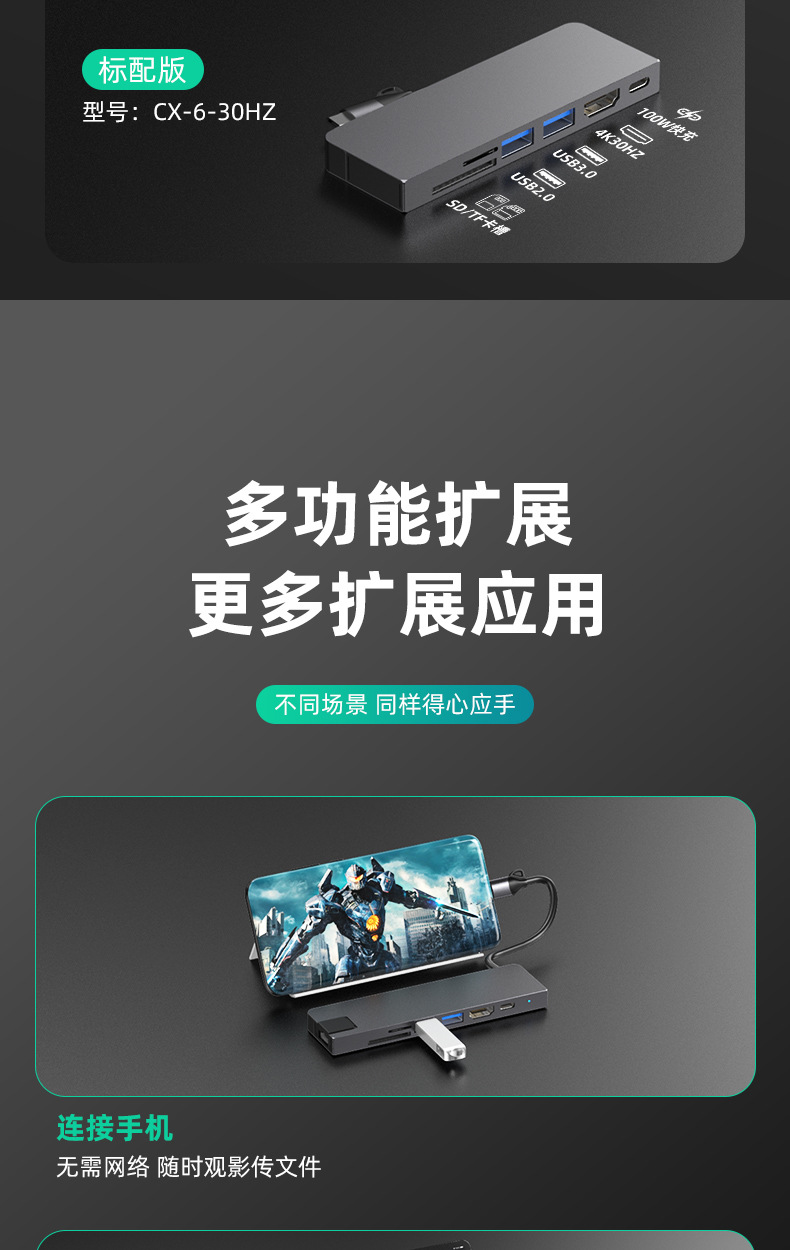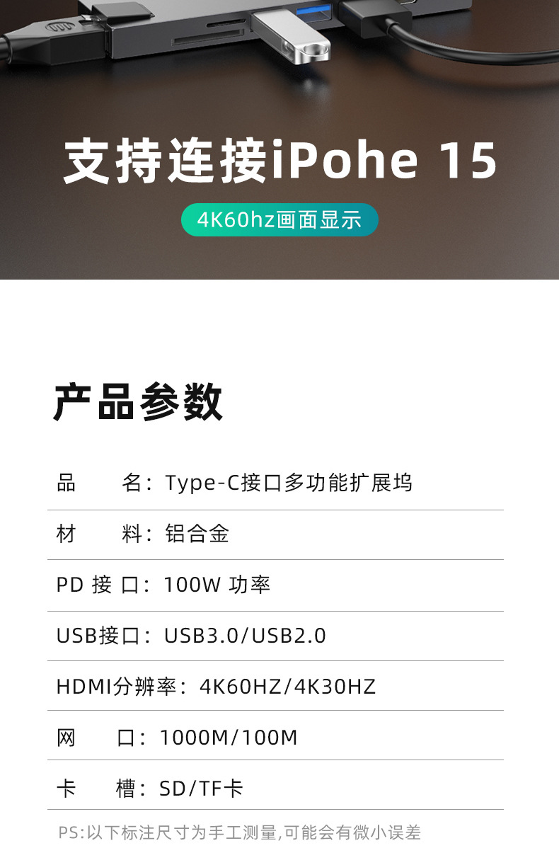 Typec7 하나의 도킹 스테이션 컴퓨터 허브 기가비트 네트워크 카드 PD100 빠른 충전 CNC 조각 알루미늄 합금 쉘