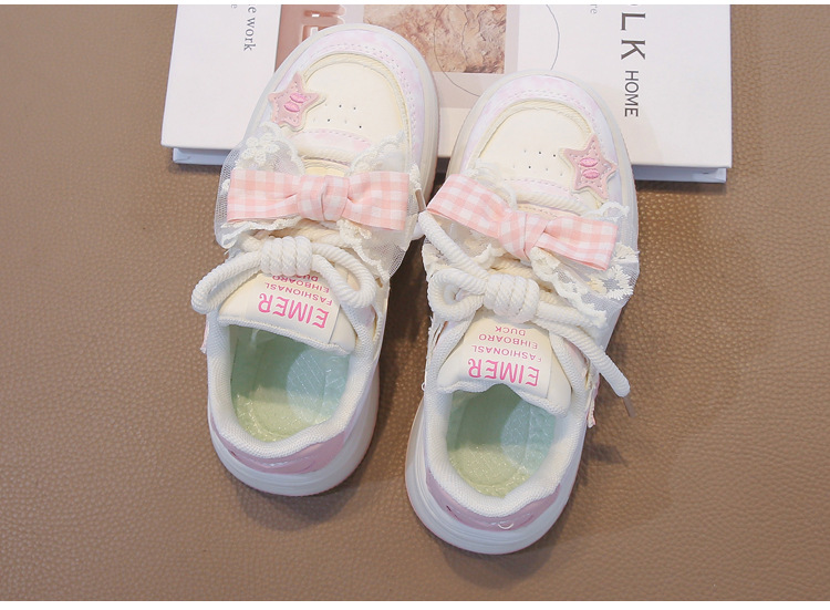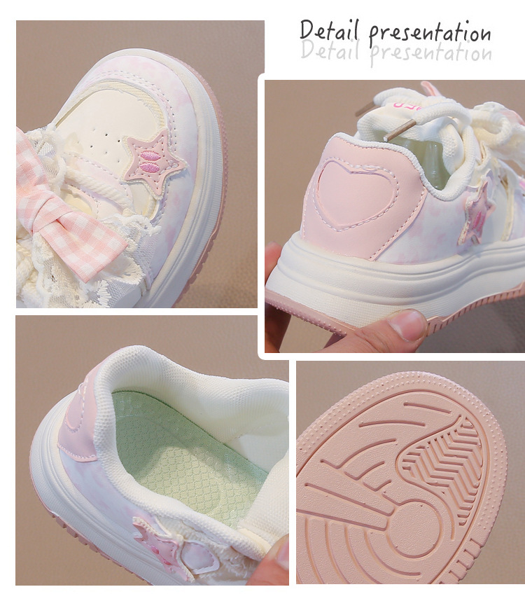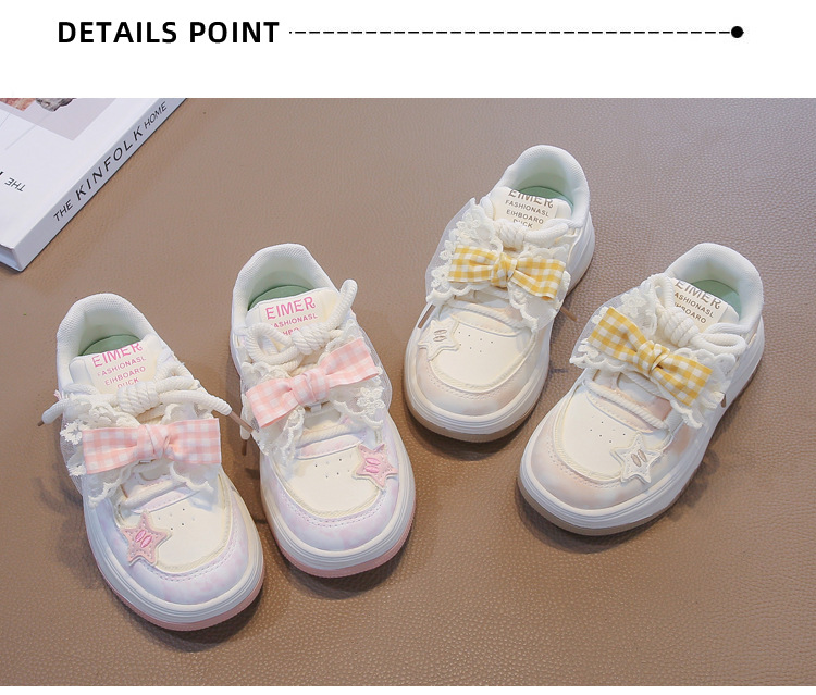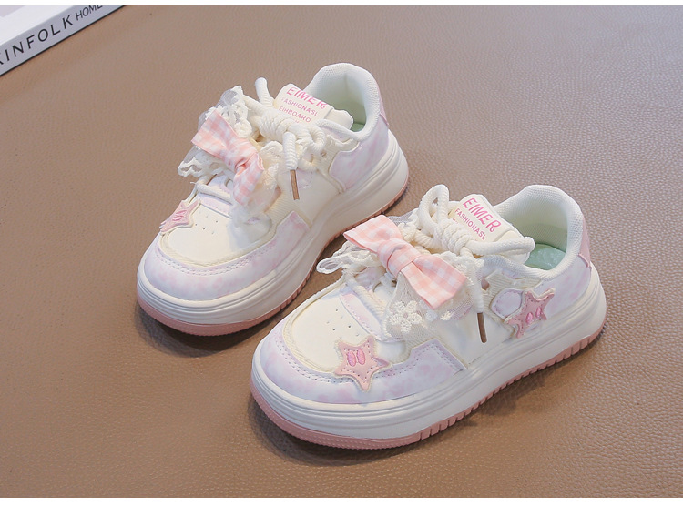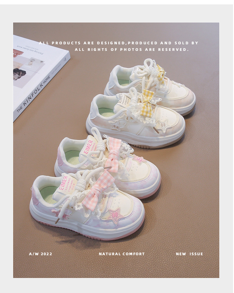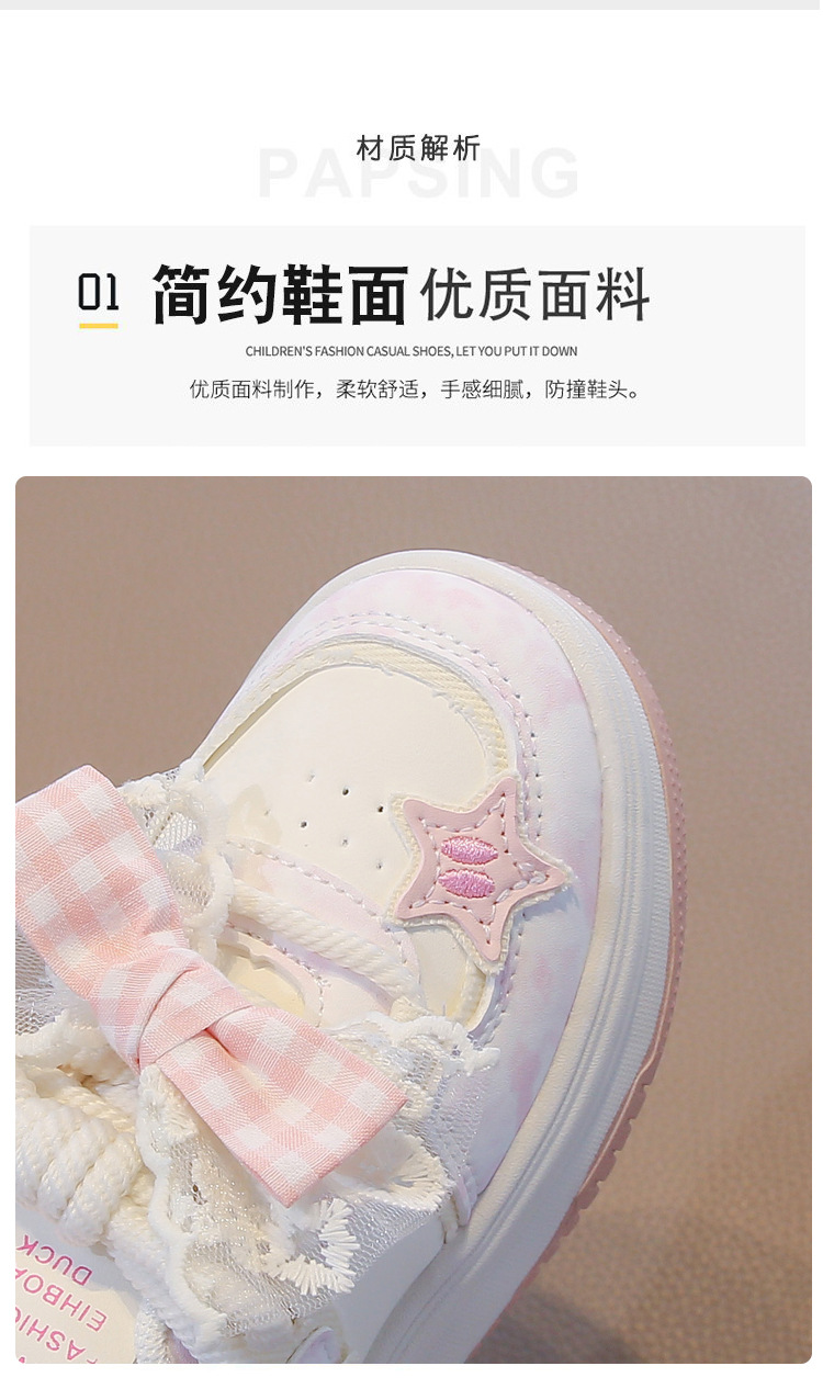 여아용 리본 가죽 패널 신발, 봄과 가을 새로운 아동화, 중대형 아동 캐주얼 신발, 미끄럼 방지, 다용도, 트렌디한 부드러운 밑창스토어 가기