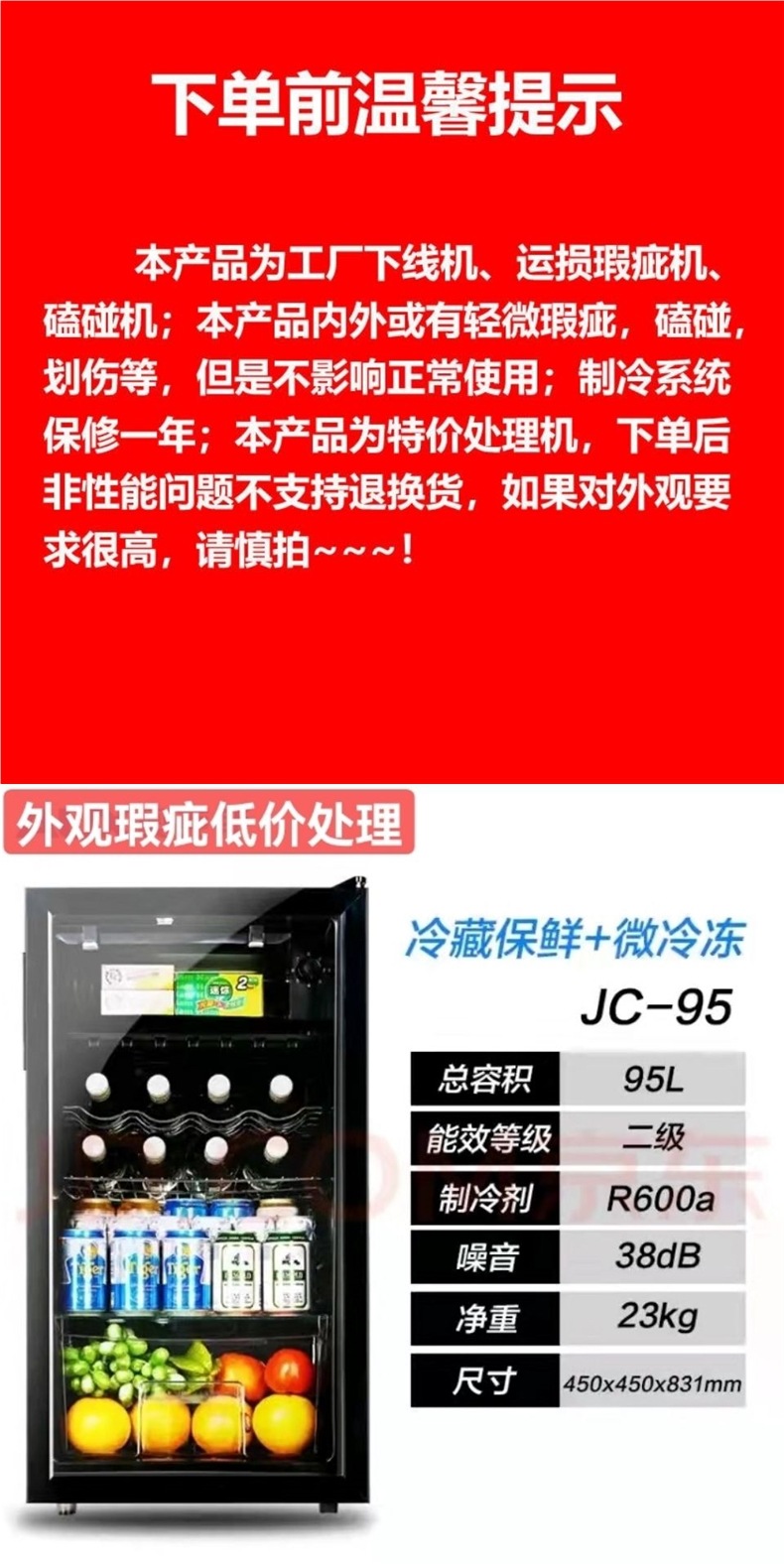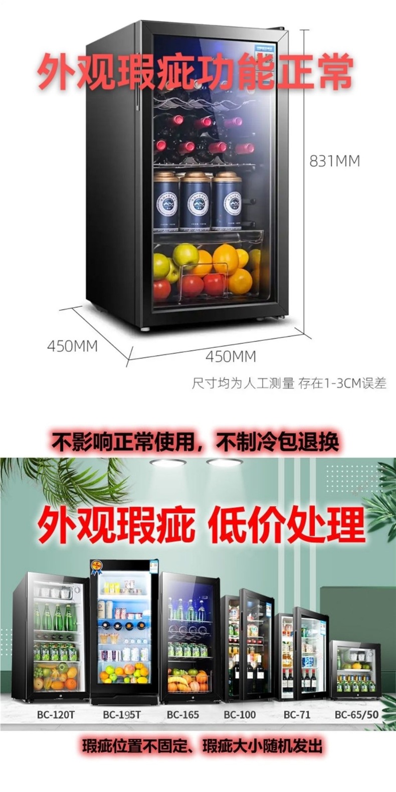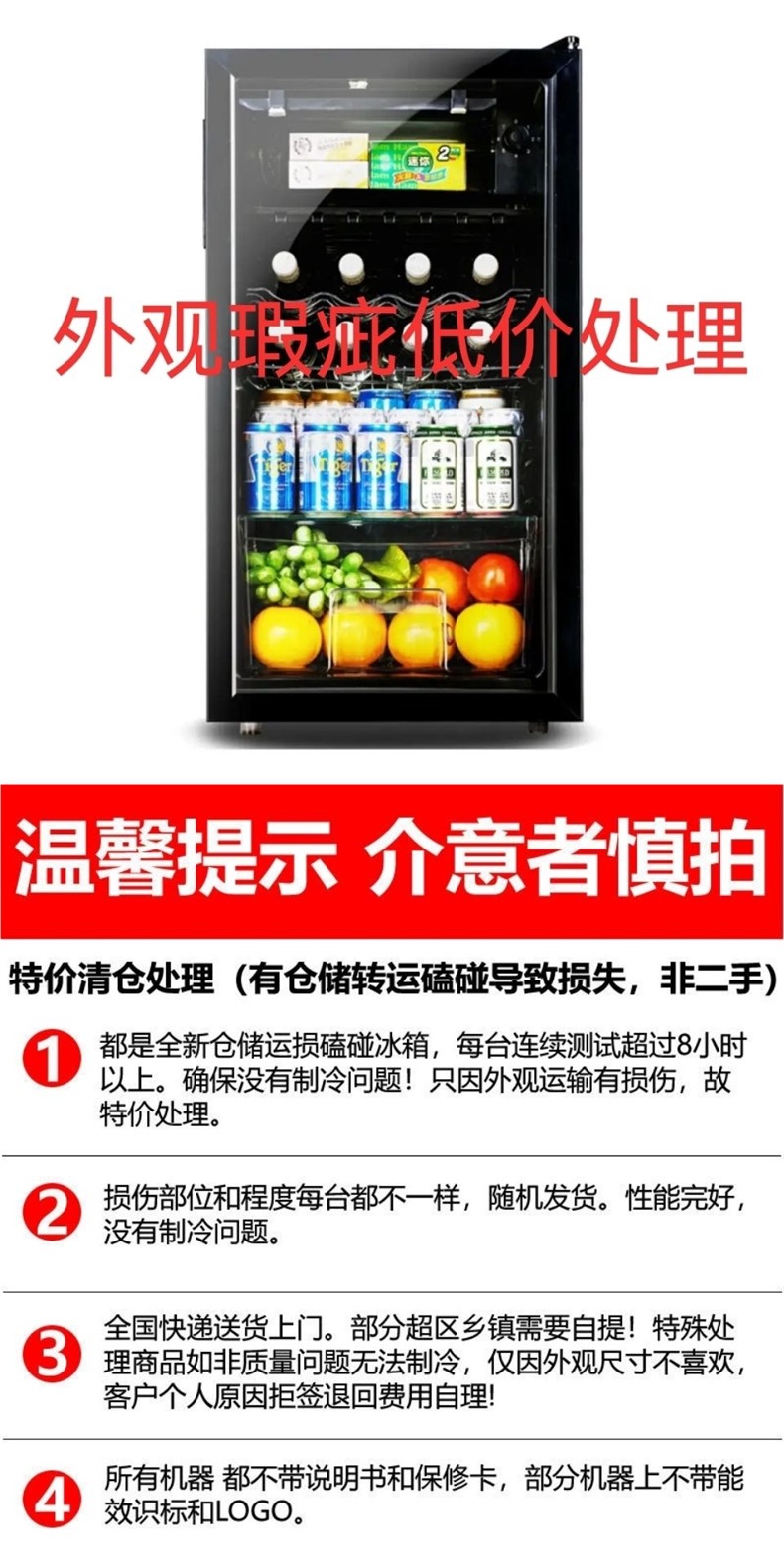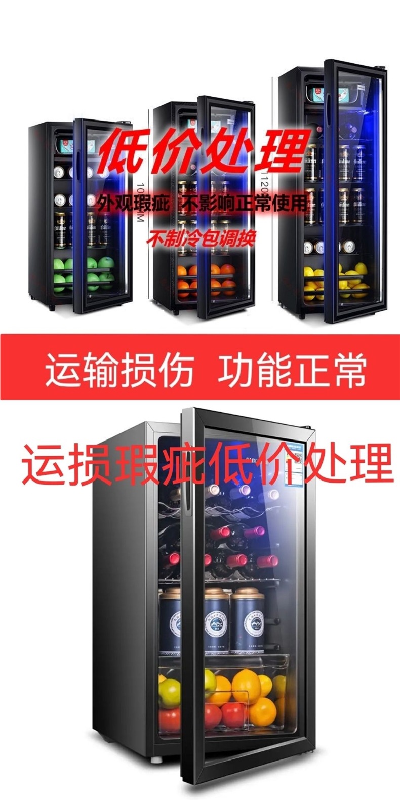 불량 아이스바 와인 캐비닛 가정용 소형 냉장 운송 손상 처리 레드 와인 차 유리 도어 단일 도어 가정용스토어 가기
