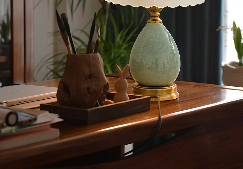 세라믹 테이블 램프 미국 스타일 복고풍 침실 램프 장식 침대 옆 테이블 램프 간단한 현대 중국 스타일 장식품