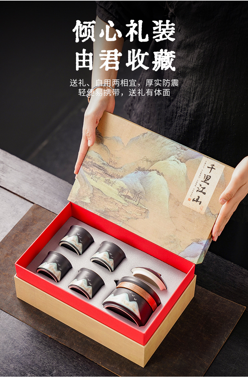 고급 검은 도자기 차 세트 선물 상자, 작은 주전자, 1개의 주전자와 4개의 컵, 비즈니스 연례 회의 기념품 선물스토어 가기