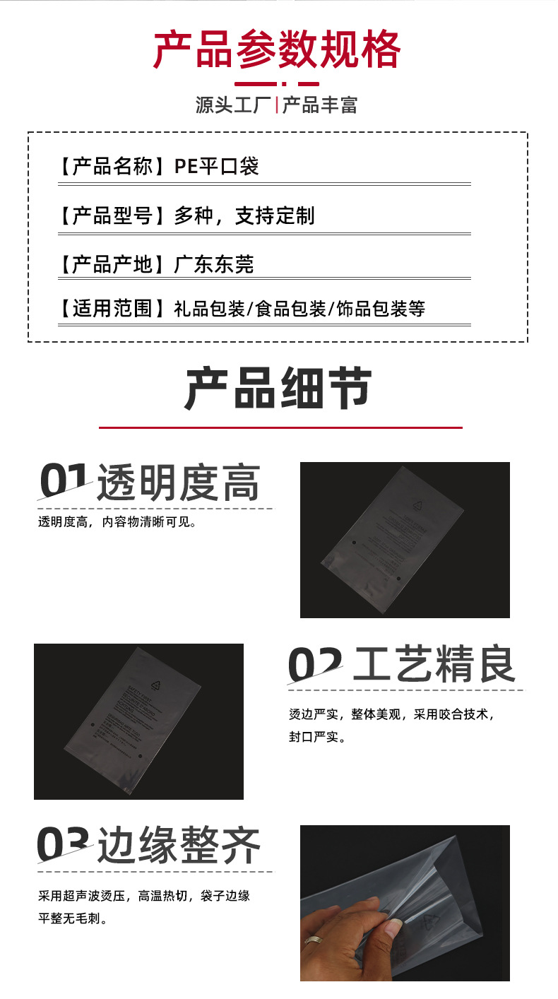 PE 플랫 포켓 두꺼운 포장 가방 보관 의류 식품 포장 가방 투명 가방 필름 PE 식품 가방