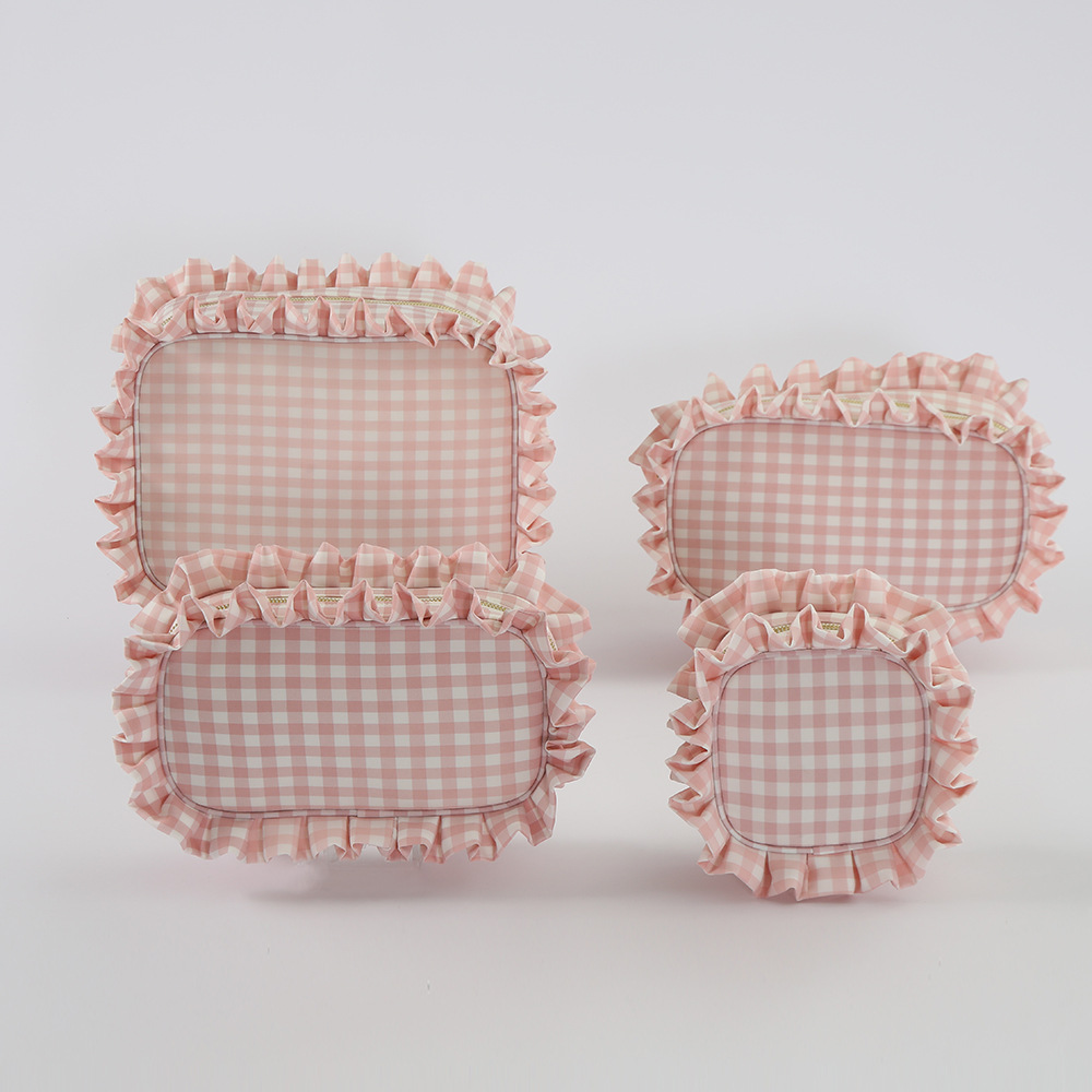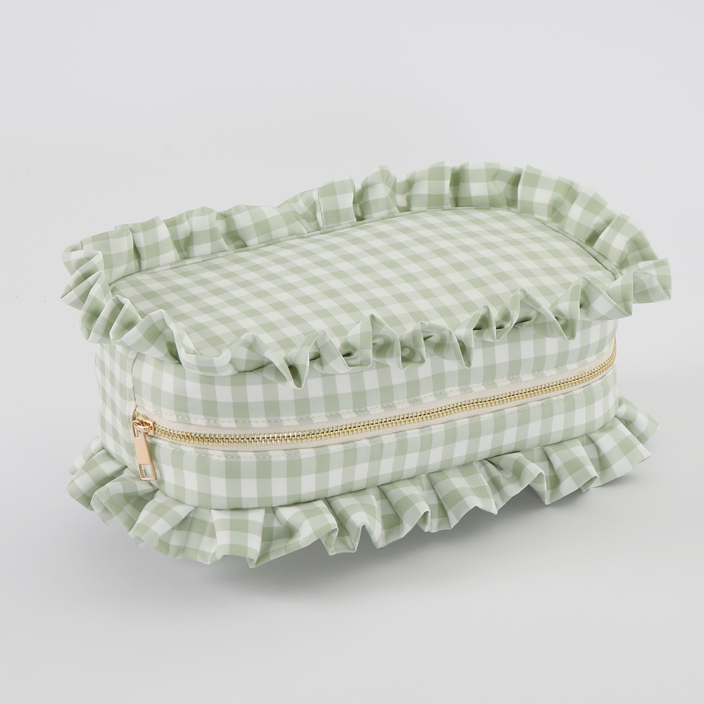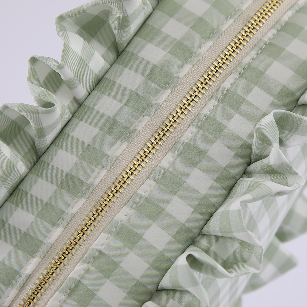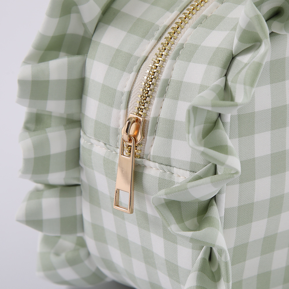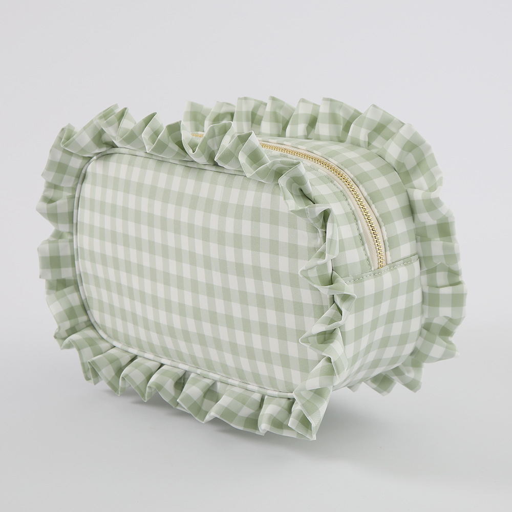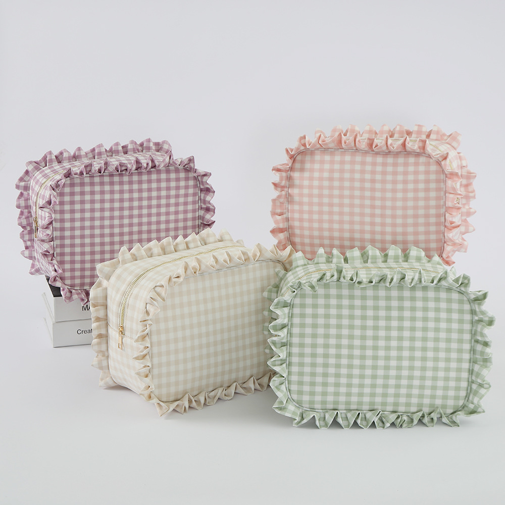 크로스보더 러플 주름 레이스 화장품 가방 여행용 방수 휴대용 지퍼 세면도구 가방 여성용 수납 가방 체크무늬