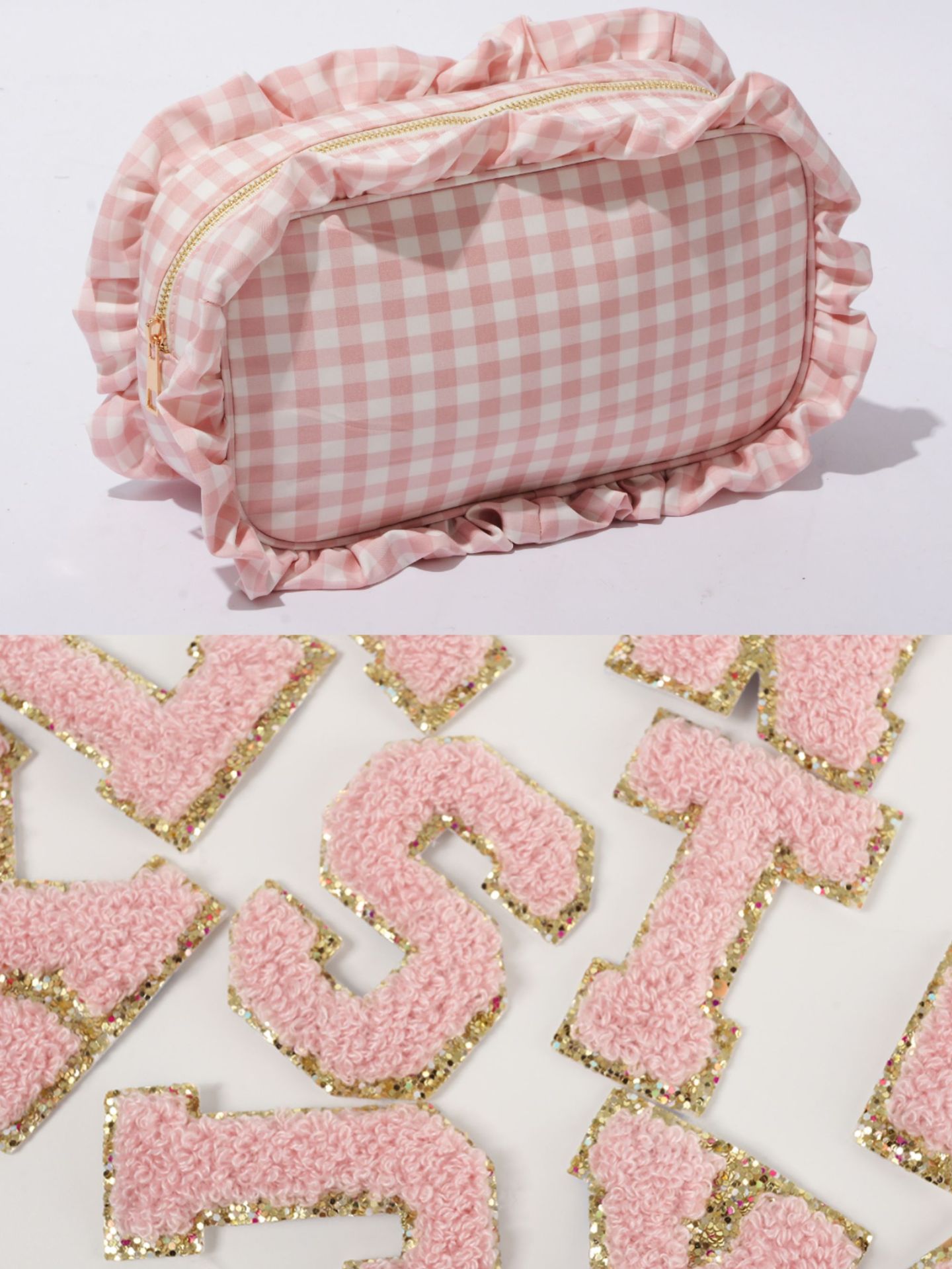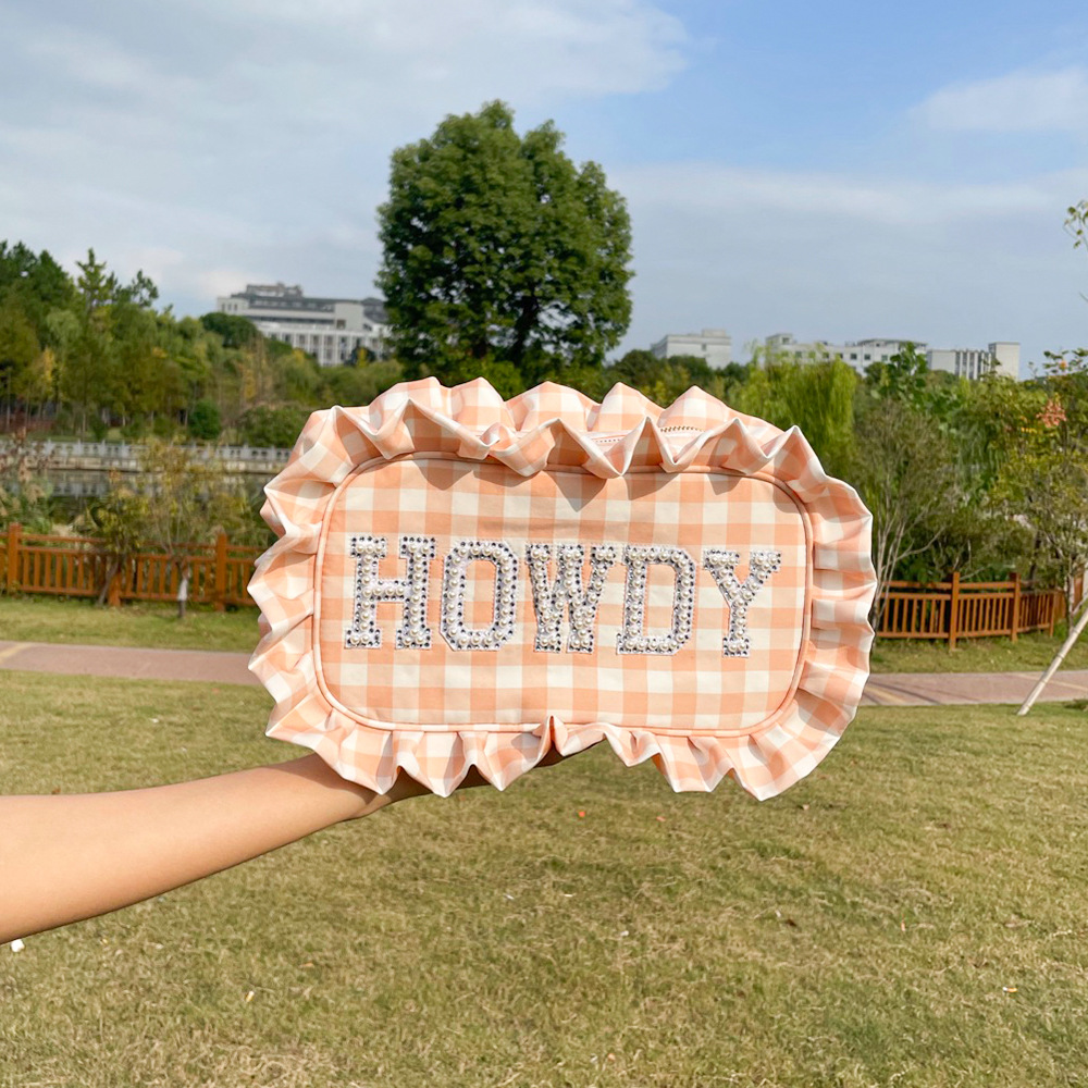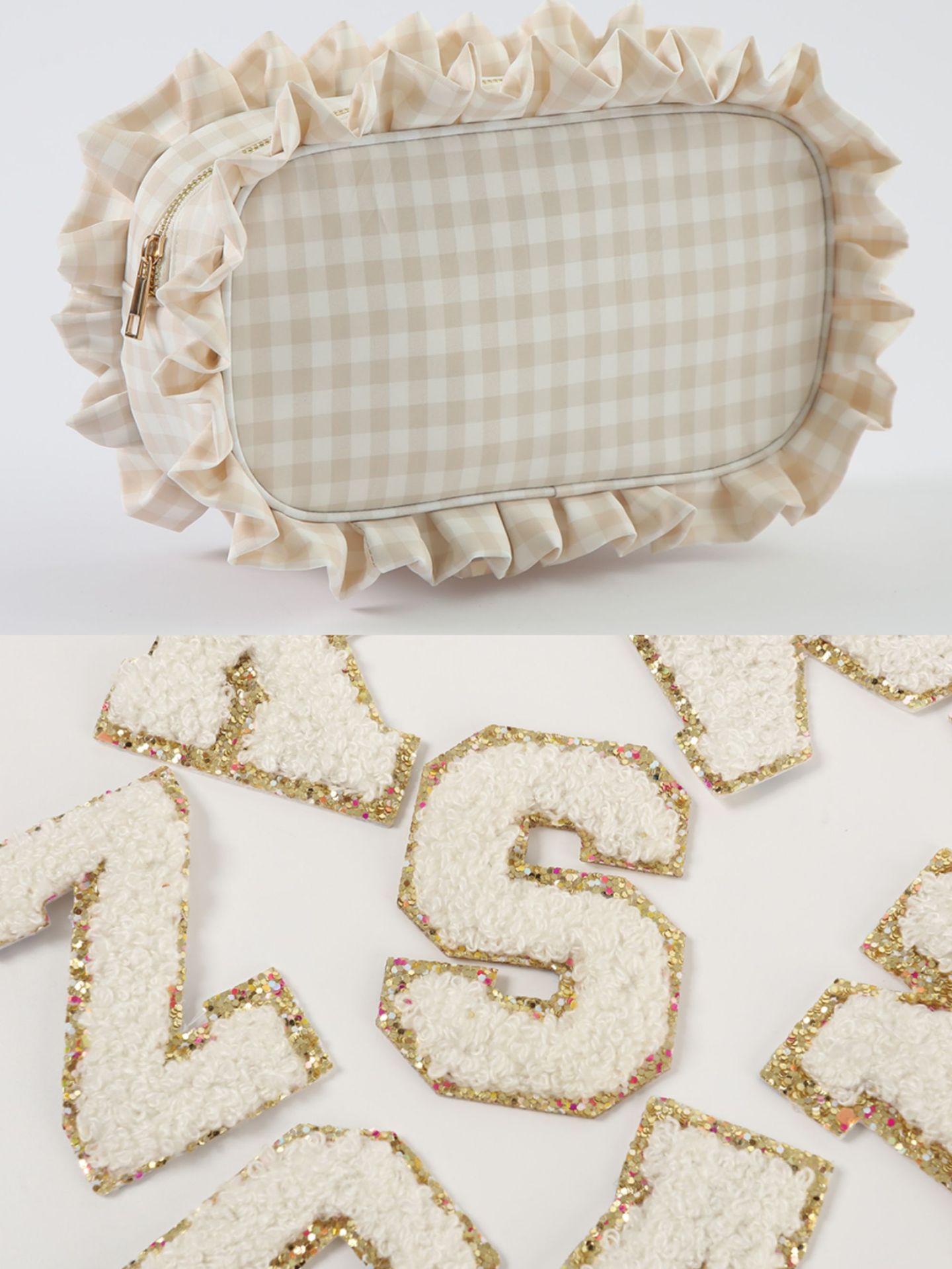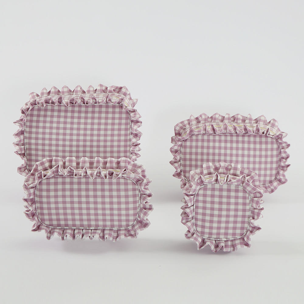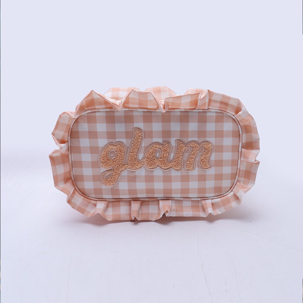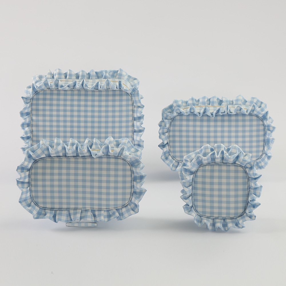 크로스보더 러플 주름 레이스 화장품 가방 여행용 방수 휴대용 지퍼 세면도구 가방 여성용 수납 가방 체크무늬