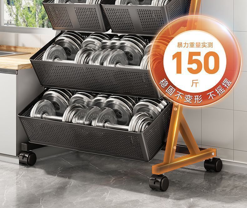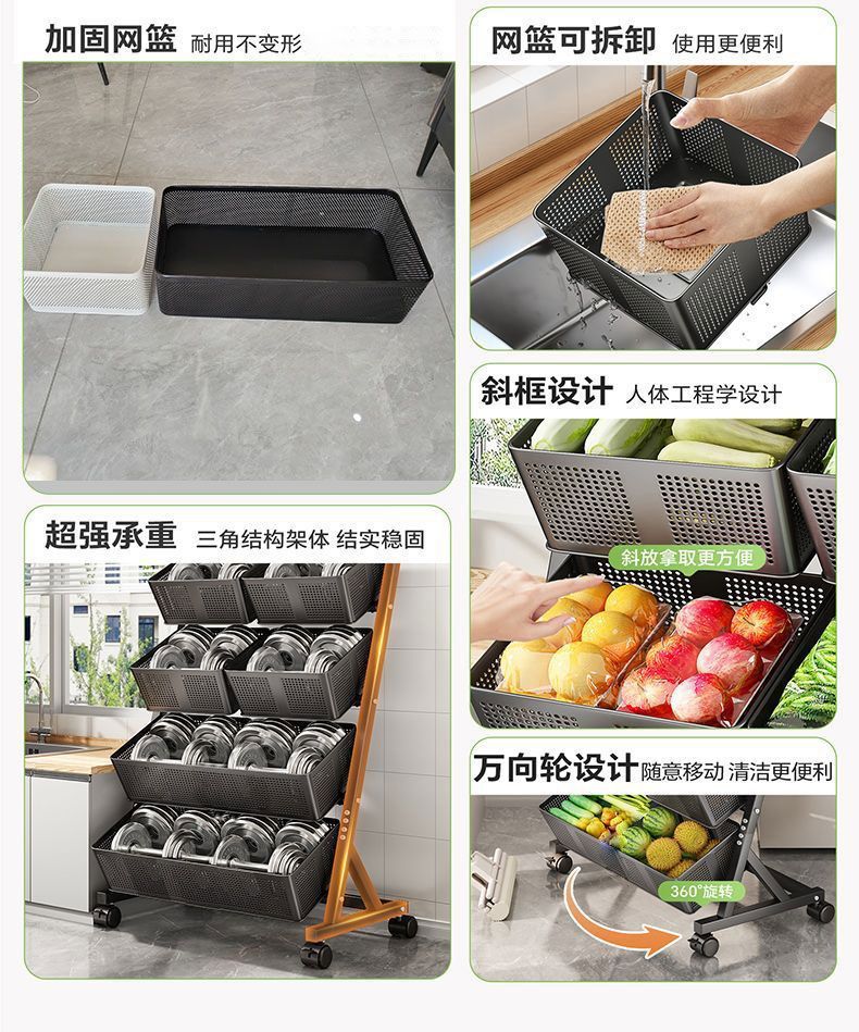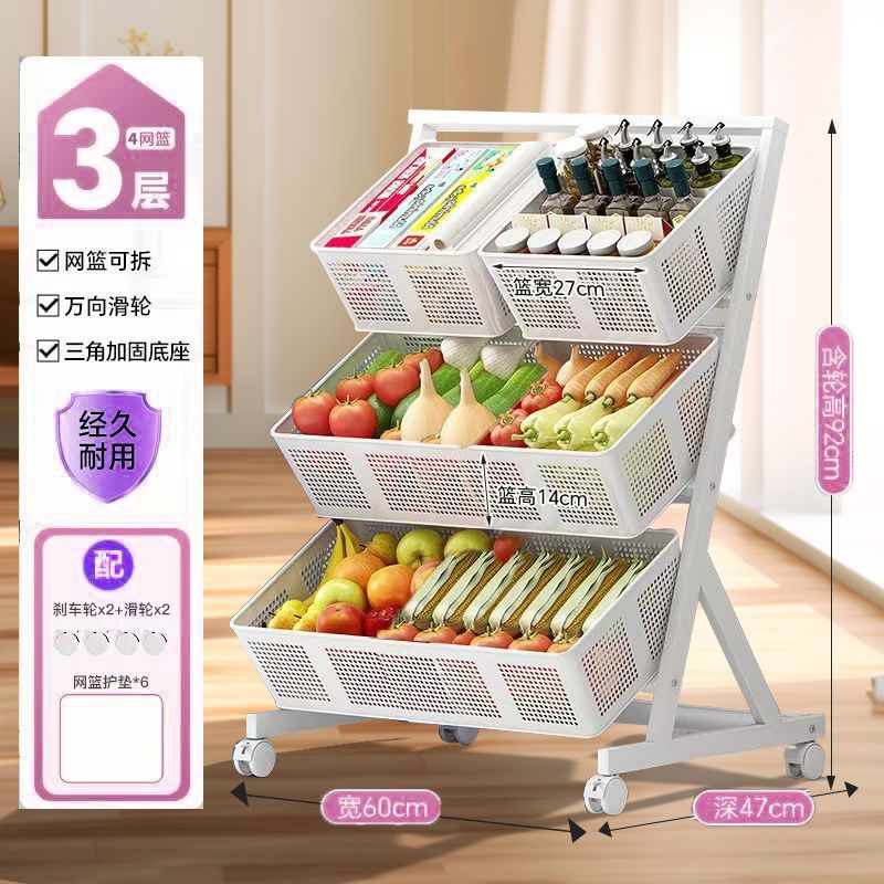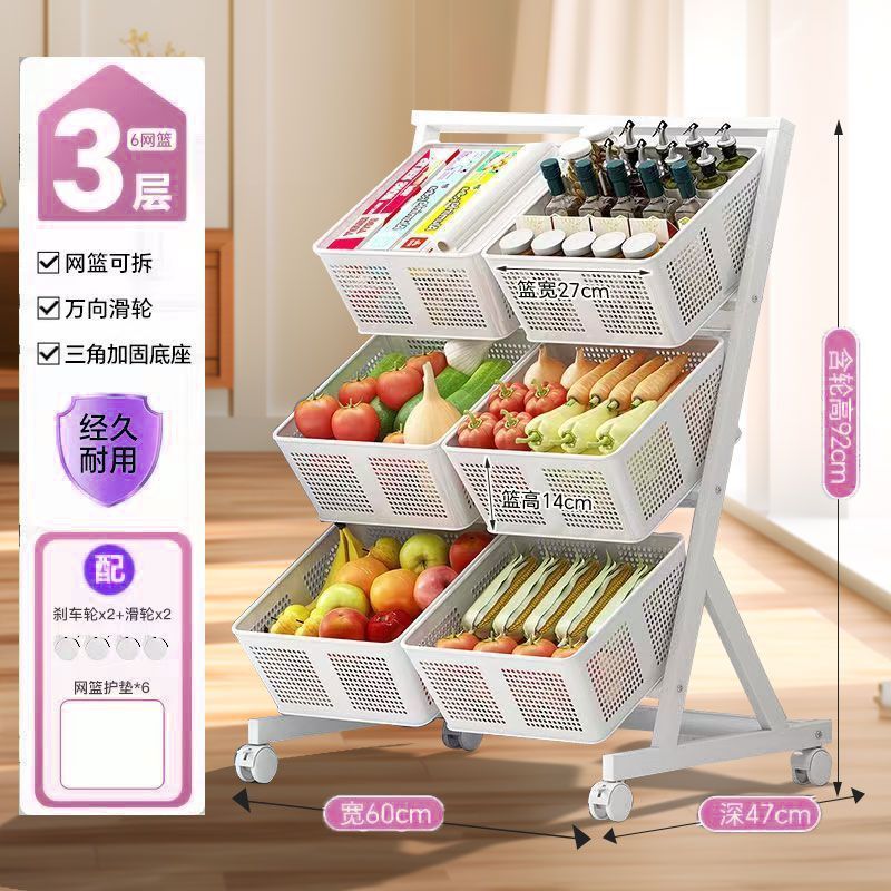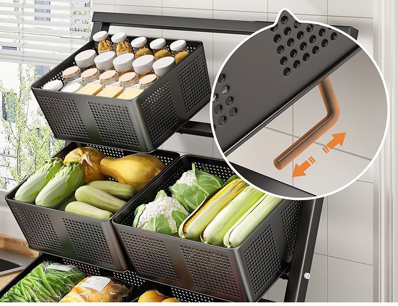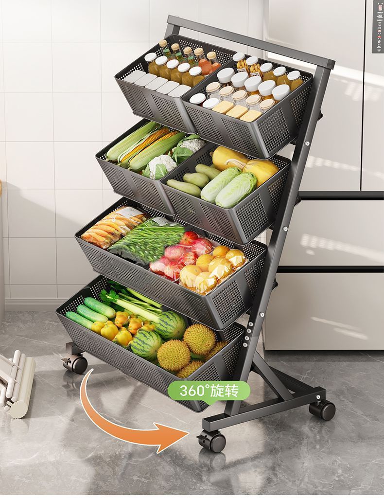 주방 야채 바구니 보관 랙 바닥에서 천장까지 다층 과일 및 야채 보관 랙 이동식 경사 다기능 트롤리