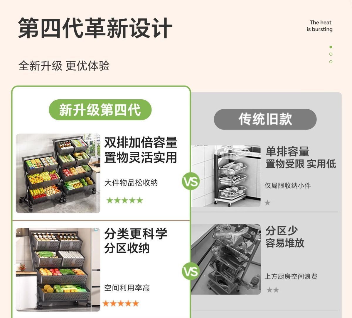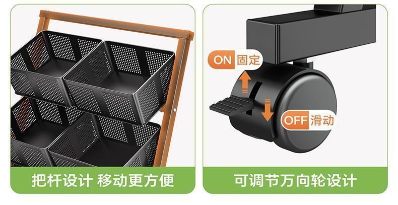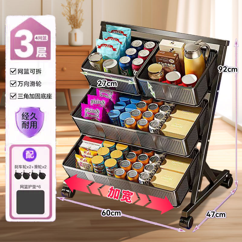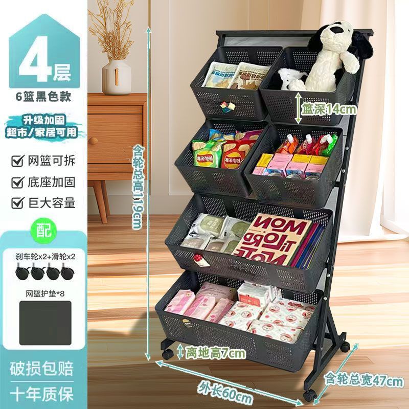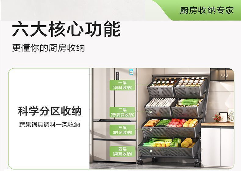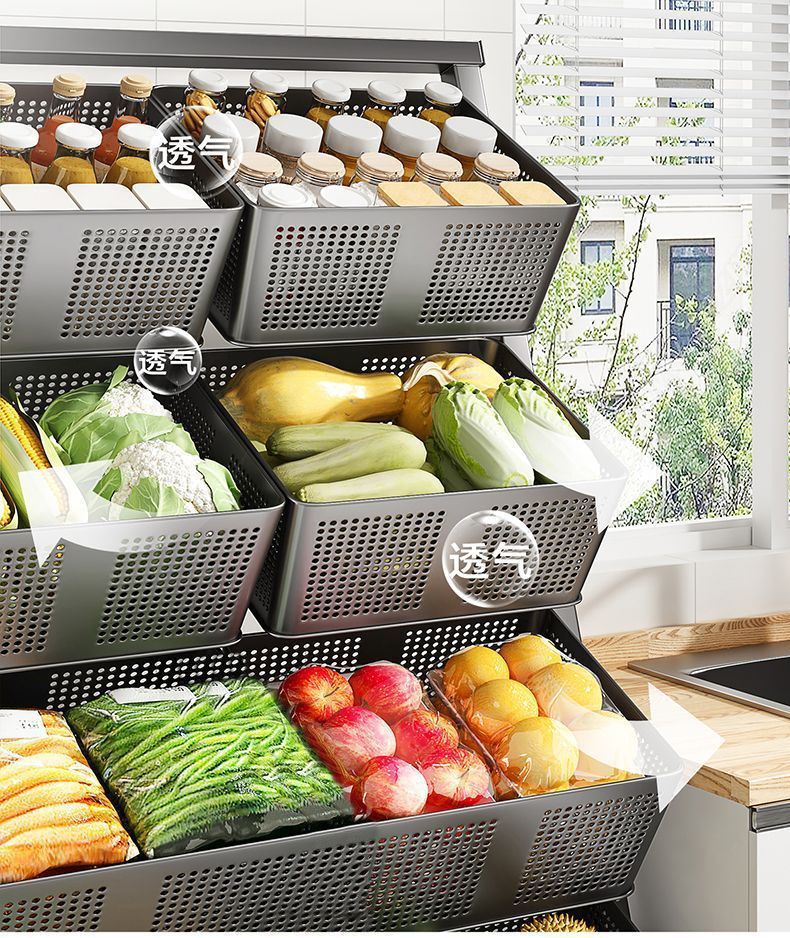 주방 야채 바구니 보관 랙 바닥에서 천장까지 다층 과일 및 야채 보관 랙 이동식 경사 다기능 트롤리