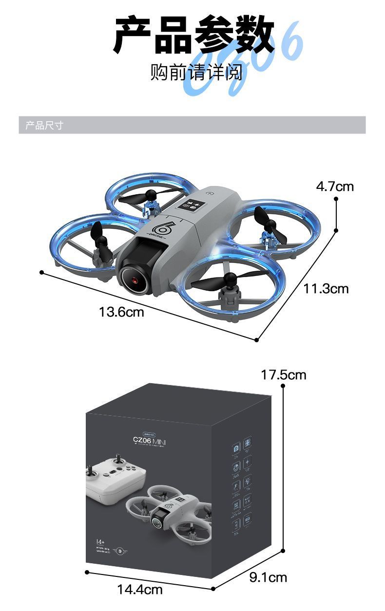 CZ06 드론 장애물 회피 전자식 속도 조절기 완전 보호형 4축 항공기 원격 조종 비행기 장난감 소형