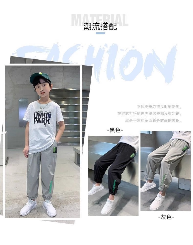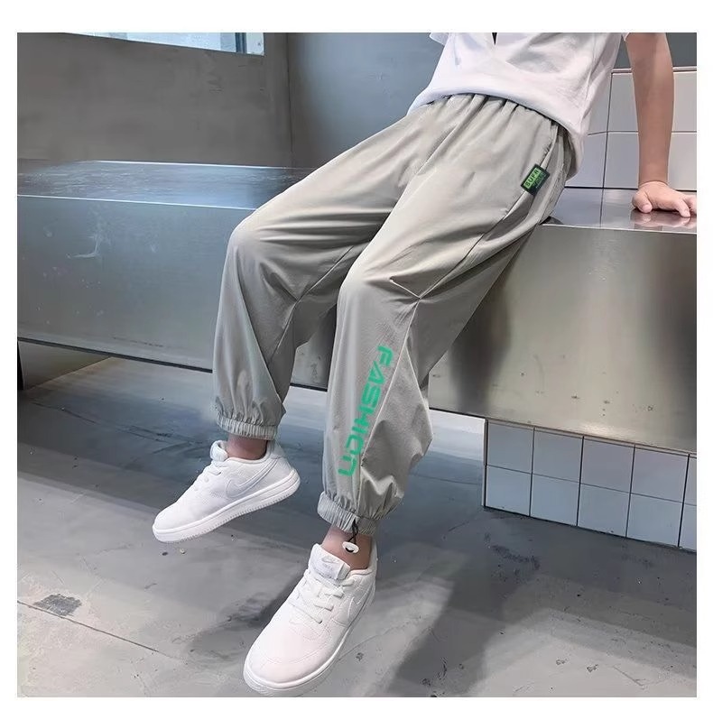남아용 아이스 실크 팬츠, 여름용 얇은 속건 팬츠, 중대형 아동 캐주얼 스포츠 모기 방지 바지, 남아용 스웨트팬츠, 트렌디스토어 가기